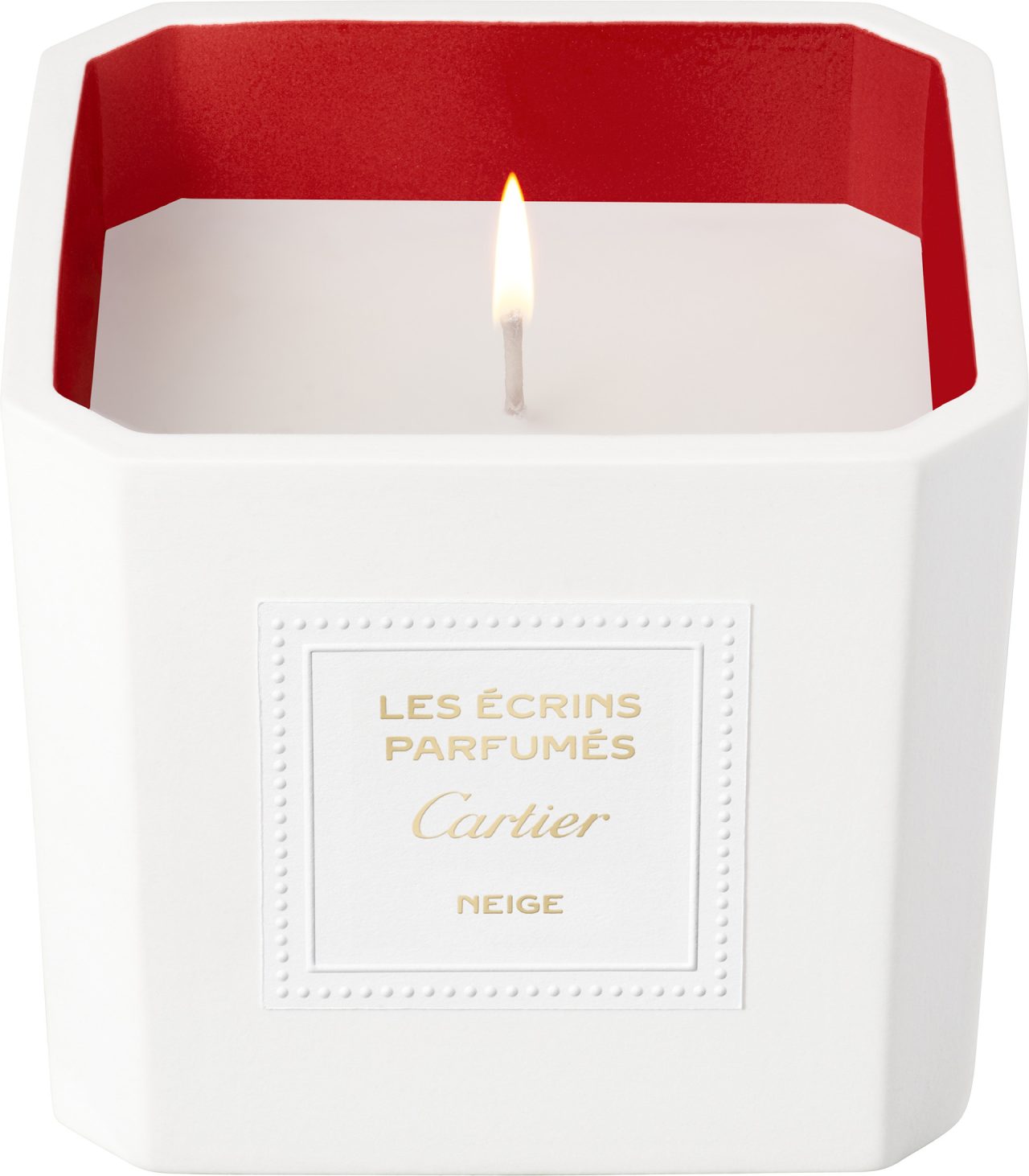 「レ ゼクラン パルフュメ カルティエ」フレグランスキャンドル 220g ネージュ ¥27,060 (Amélie Garreau © Cartier)