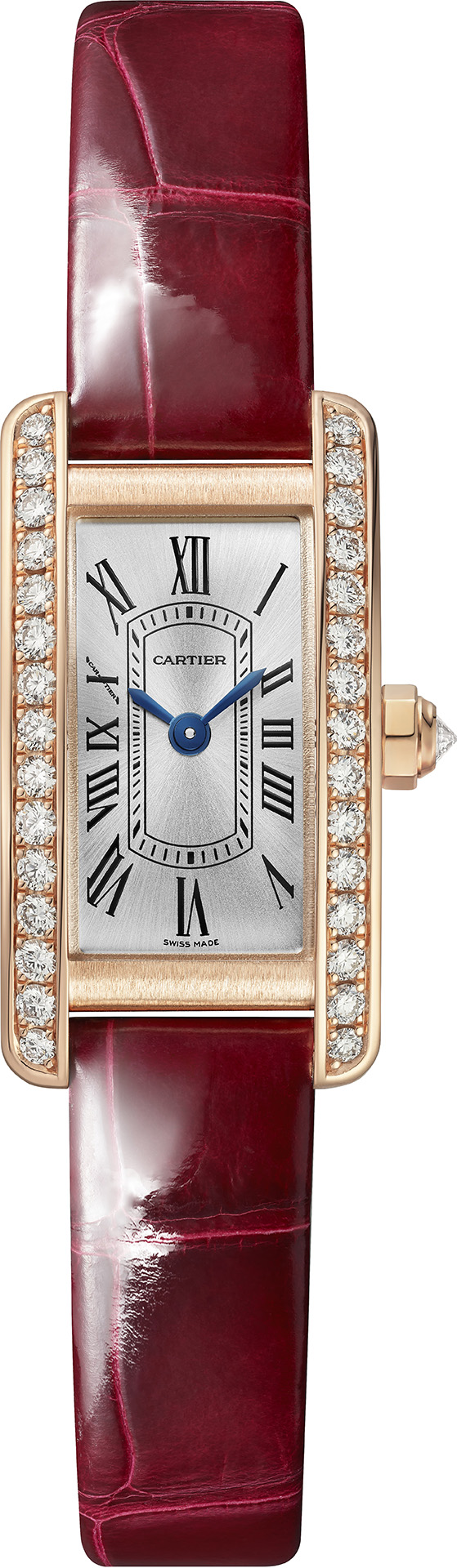 「タンク アメリカン」ウォッチ PG × Diamond、アリゲーターストラップ、クォーツ 28 × 15.2 mm ¥2,283,600 (Antoine Pividori © Cartier)