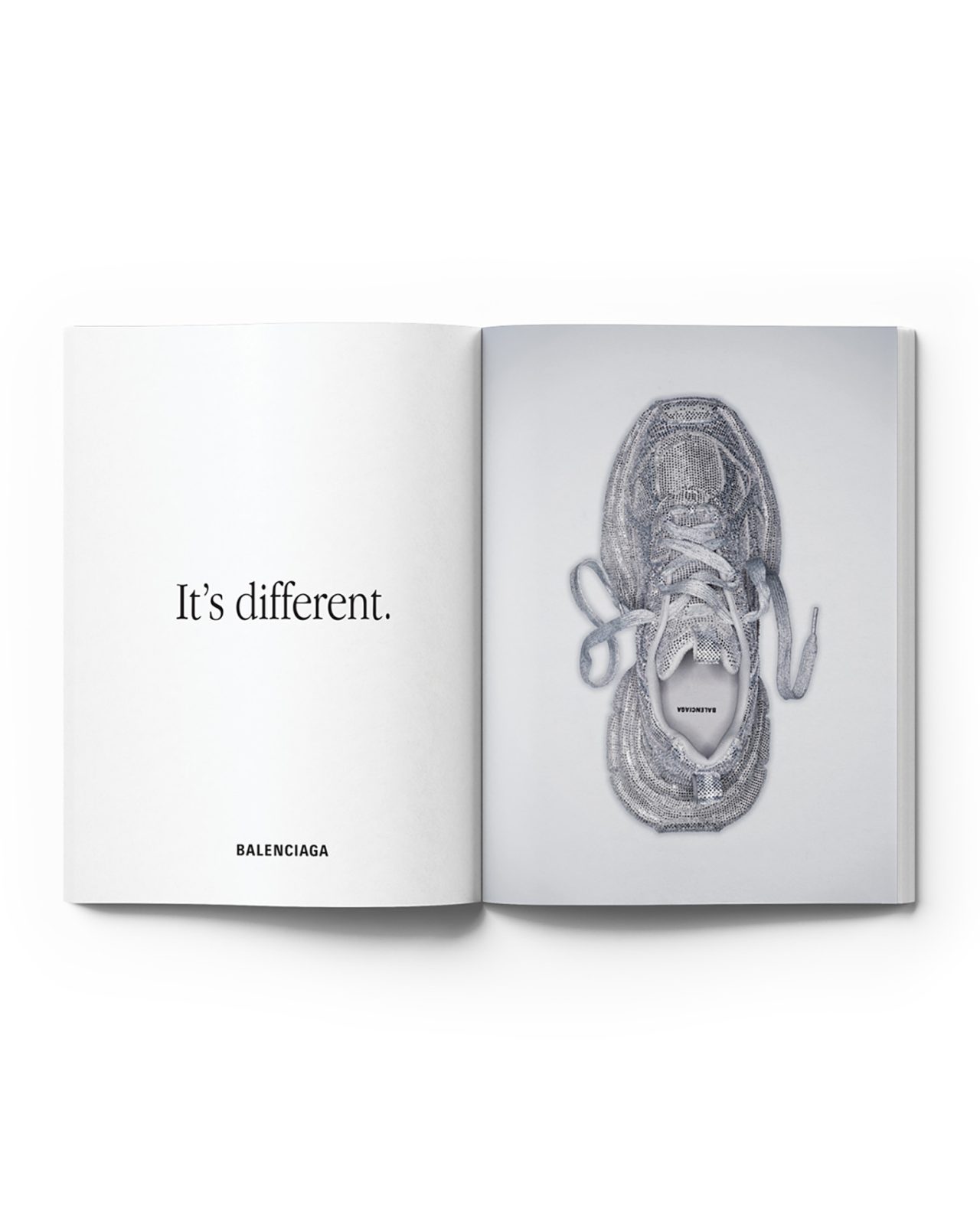 BALENCIAGA からこの度新たにローンチされた、「BALENCIAGA IT’S DIFFERENT」。通常の各シーズンルックとは異なるキャンペーンとなり、モデルや著名人を一切起用せず、クリエイションだけを捉えたシンプルなビジュアルで、流行を翻すような新しいソーシャルメディアアプローチとして作成されたものだ。ビジュアルにはブランドを象徴するアイコニックなシューズやバッグなどのアイテムが収められ、BALENCIAGA らしい誇張されたデザイン、シェイプ、カッティングラインにフォーカス。また、ページの左側には「No, blabla. (大した事ではない)」「Probably not what you’re looking for (おそらくあなたが探しているものではない)」といった皮肉的な言葉が添えられ、メゾンらしい挑発的な姿勢を表現。これらの作品は、BALENCIAGA の公式 HP からキャンペーンビジュアルの全貌をチェックすることができる。