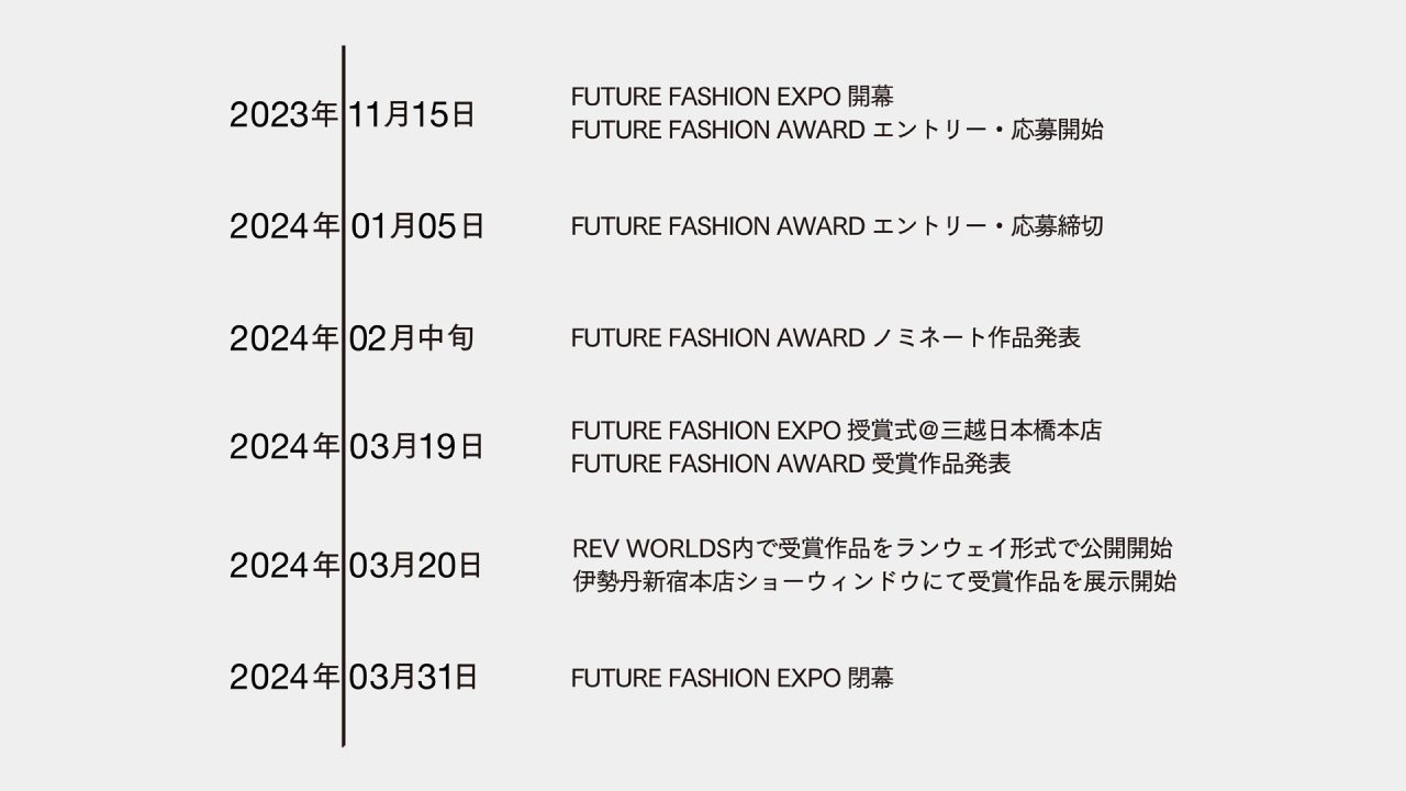 三越伊勢丹にとって初めての取り組みとなる「もしもの未来の暮らしから、ファッションの可能性を考える」リアル×メタバース横断型イベント「FUTURE FASHION EXPO (フューチャー ファッション エキスポ)」が3月31日(日)まで開催している。メイン企画であるファッションデザインコンテスト「FUTURE FASHION AWARD」では、ファッションアイデアを募集中。
