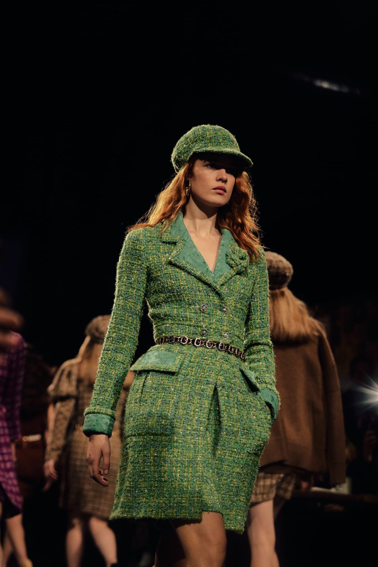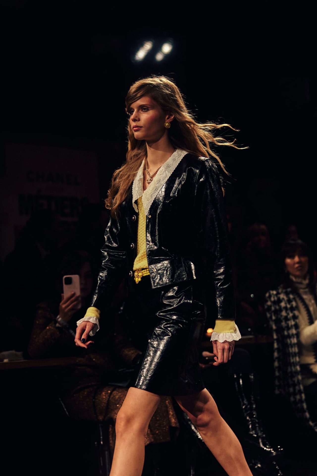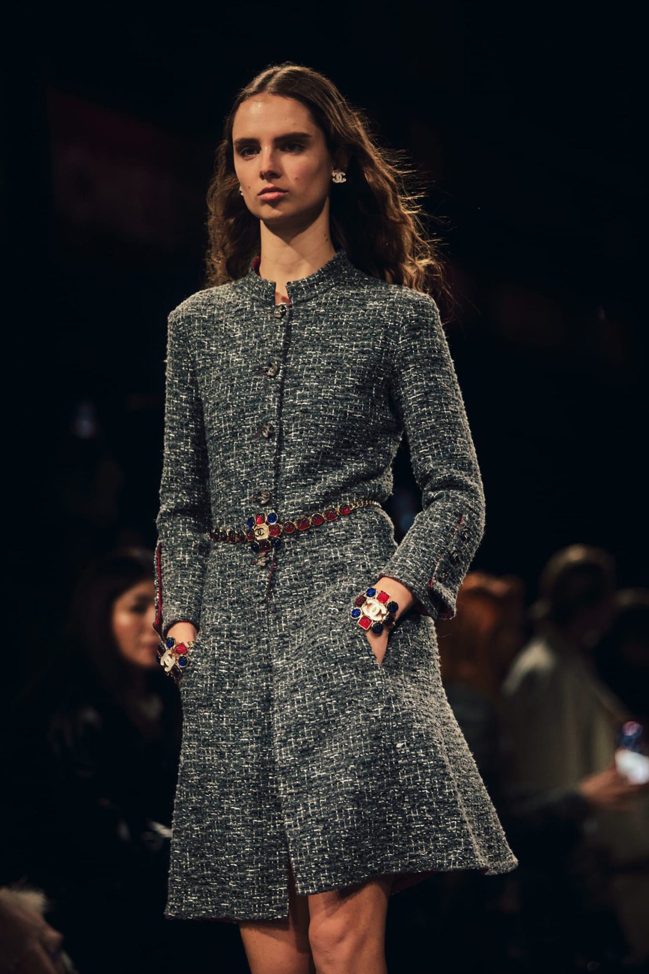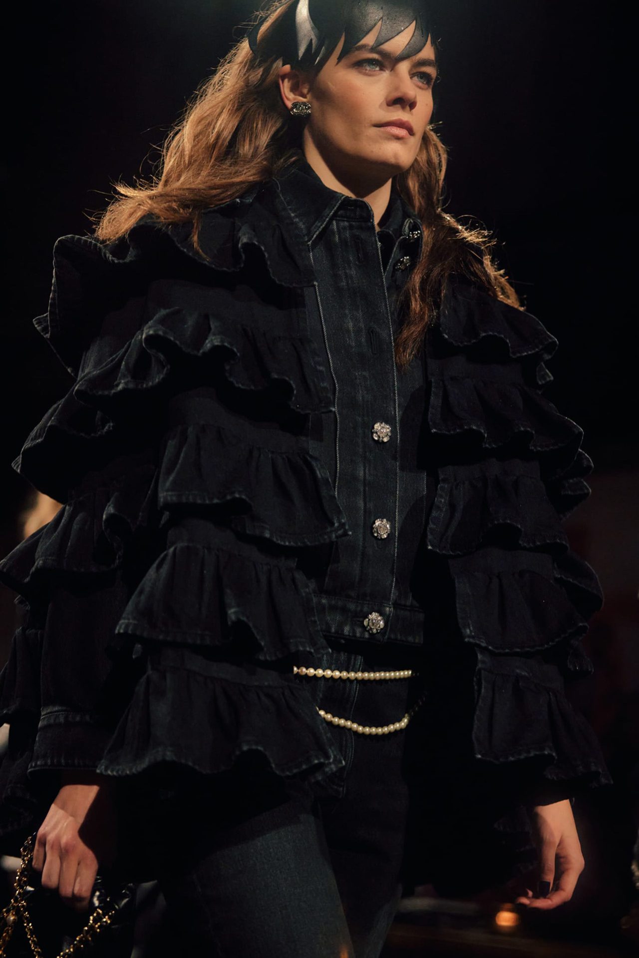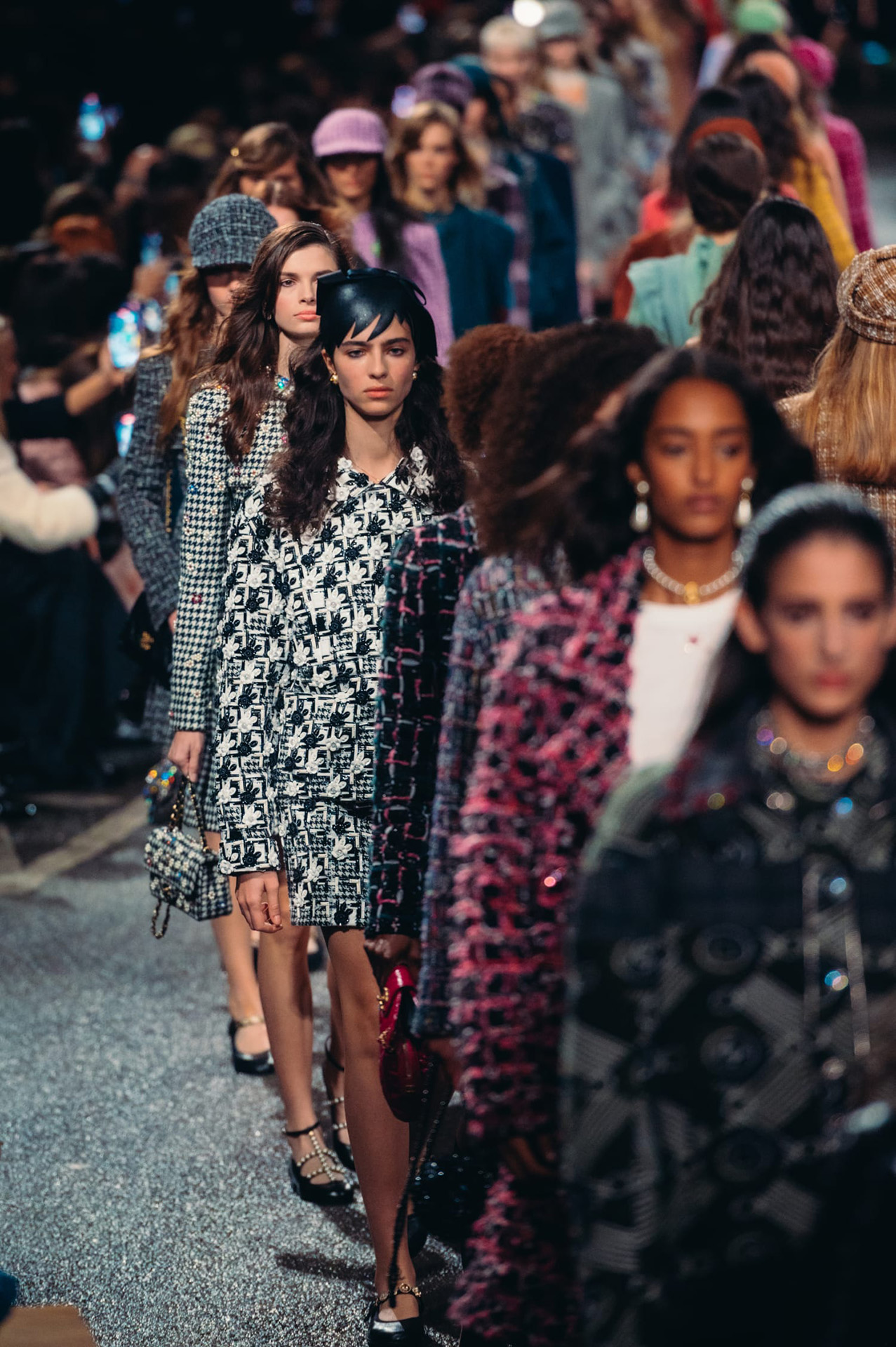 そしてジーンズやレザー、ニットウェア、ベビードールやストラップレスドレスが、サッカー、 マンチェスターのミュージックシーン、英国の田園風景など、さまざまな要素を取り入れたアンサンブルを完成。CHANEL が英国と築いてきた物語を想起させる、活気に溢れたコレクションとなった。