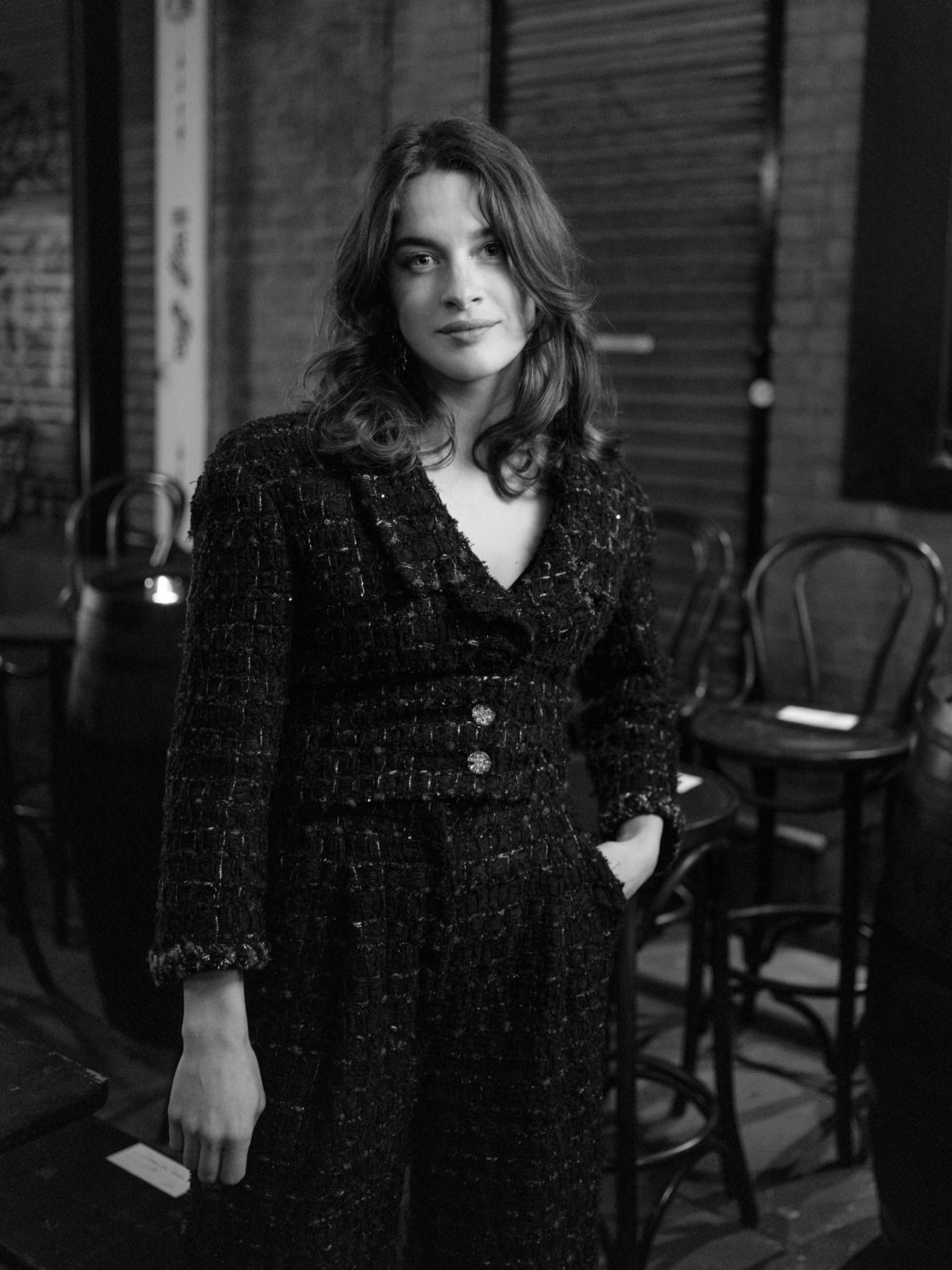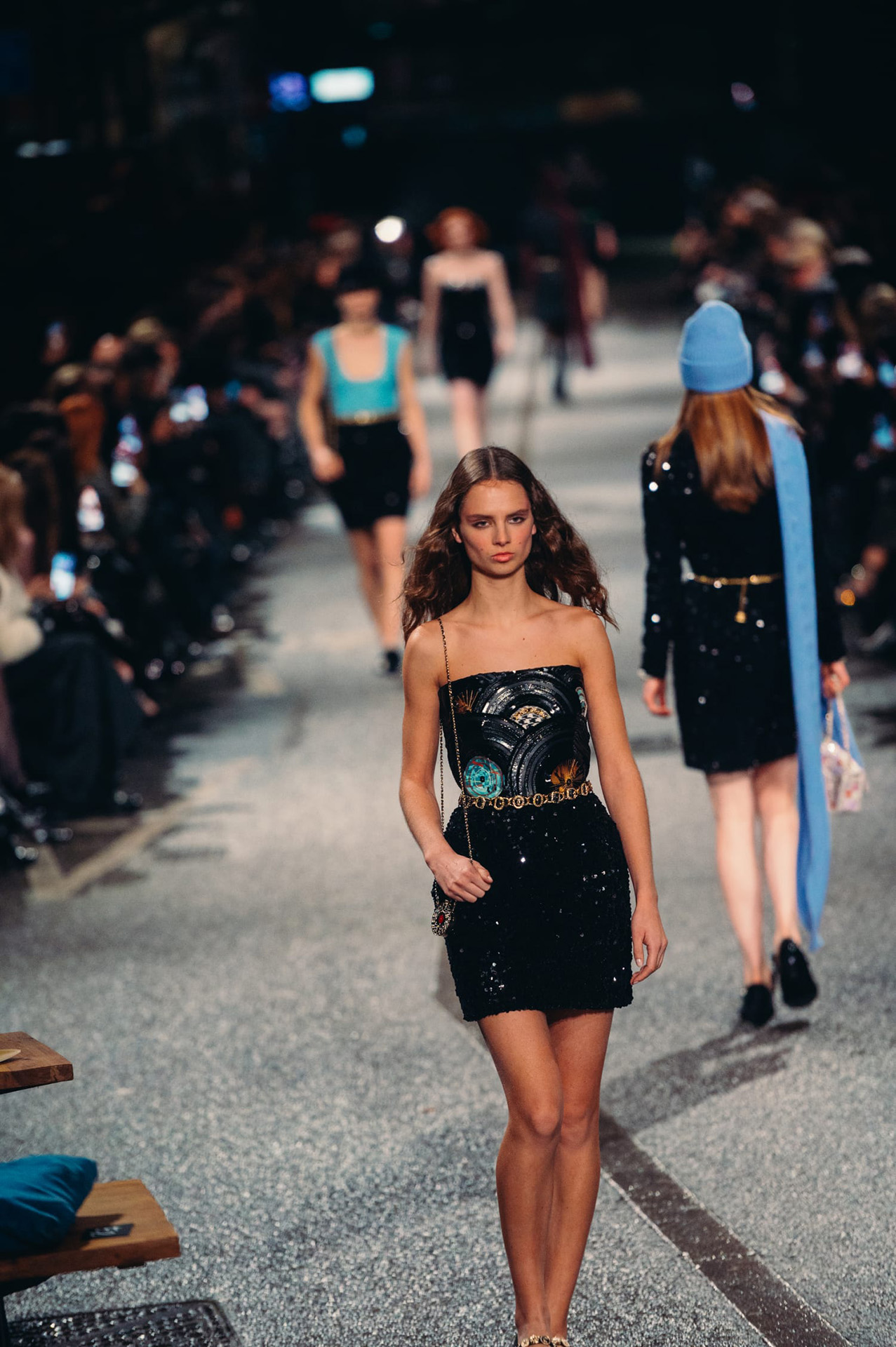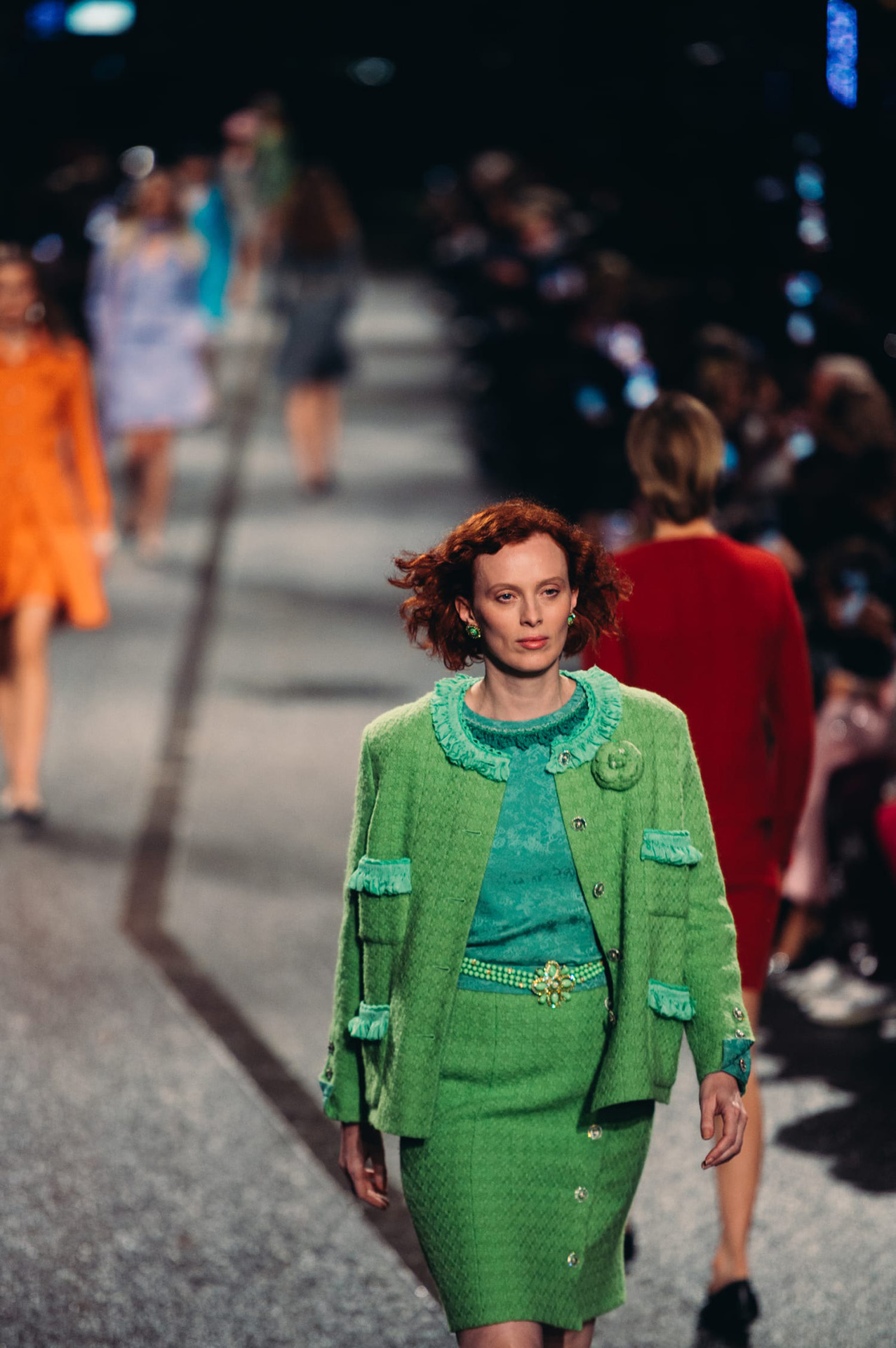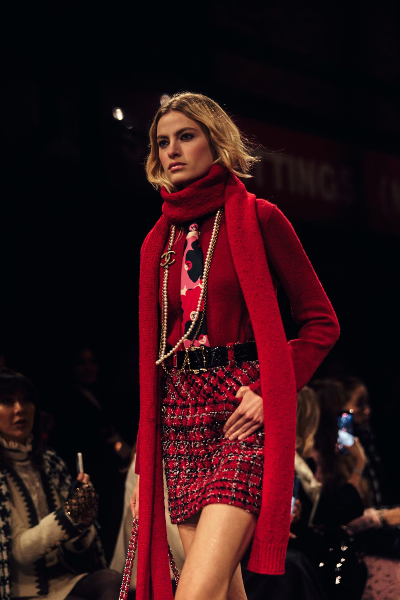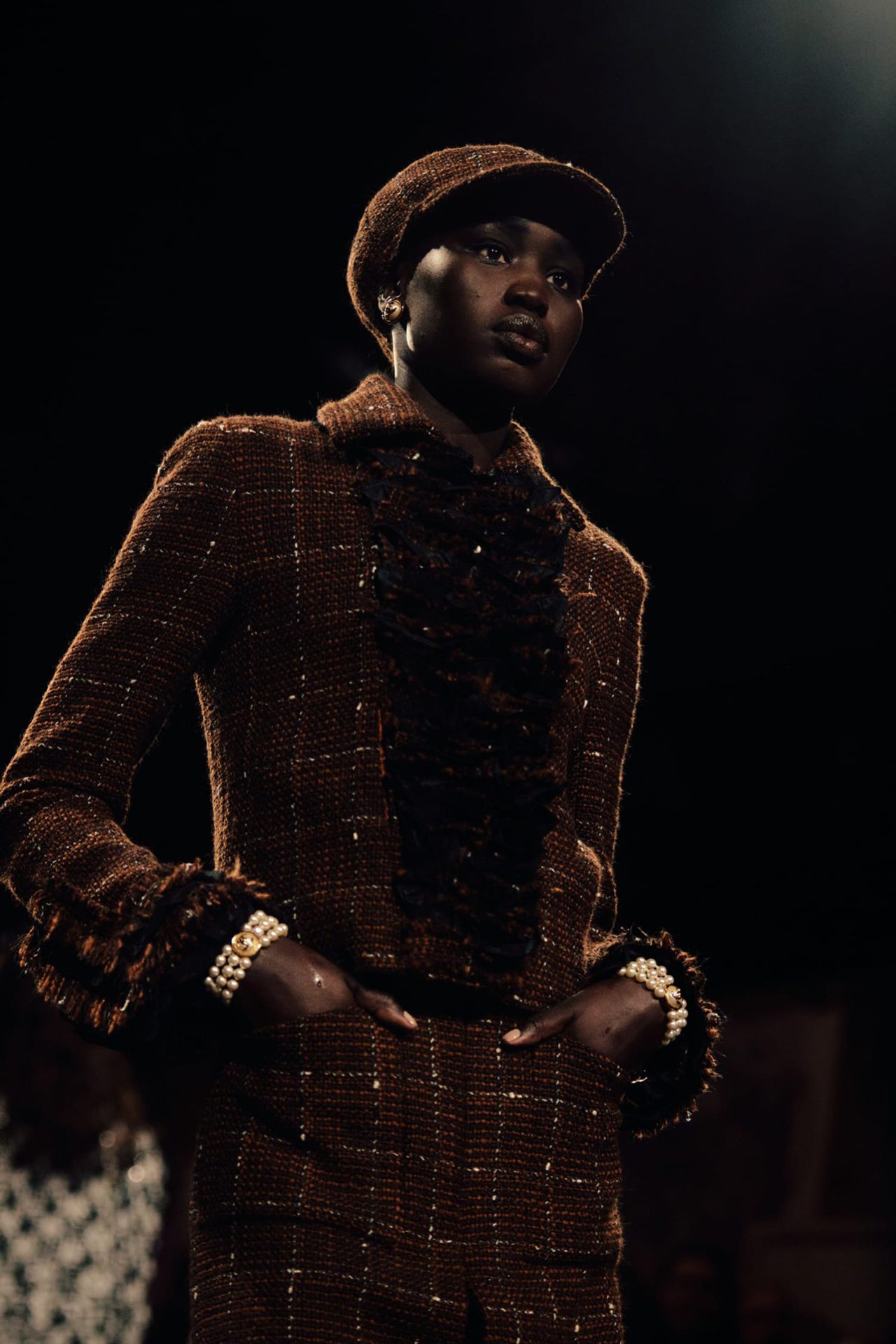 そしてジーンズやレザー、ニットウェア、ベビードールやストラップレスドレスが、サッカー、 マンチェスターのミュージックシーン、英国の田園風景など、さまざまな要素を取り入れたアンサンブルを完成。CHANEL が英国と築いてきた物語を想起させる、活気に溢れたコレクションとなった。