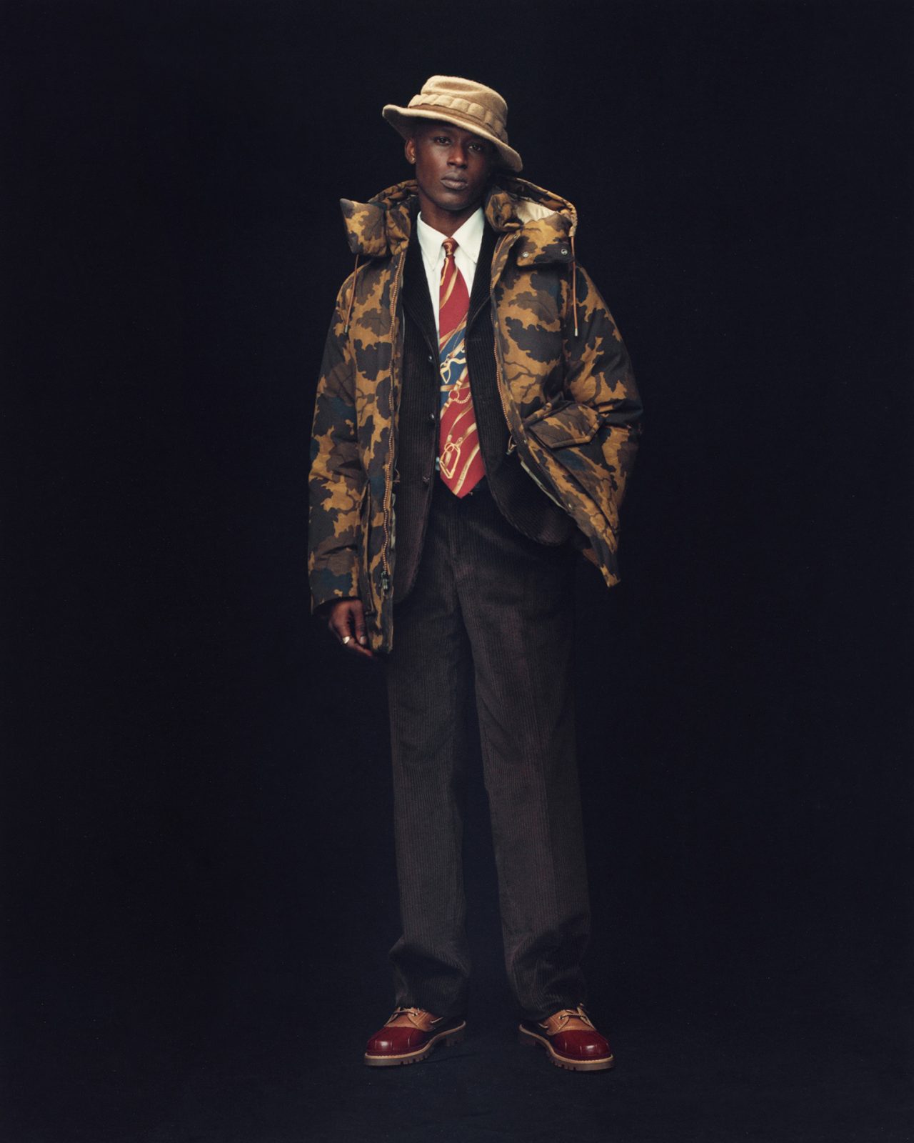 店内は、WOOLRICH のアーカイブデザインと機能を見つめ直し、現代の技術と感性でアップデートした WOOLRICH OUTDOOR LABEL のアイテムを中心にラインナップ。Aimé Leon Dore とのコラボアイテムは、ダウンパーカとパンツがブラウン・ブラックの2色展開で登場する。加えて、シーズンに合わせた写真やアートピースも随時展示される。
