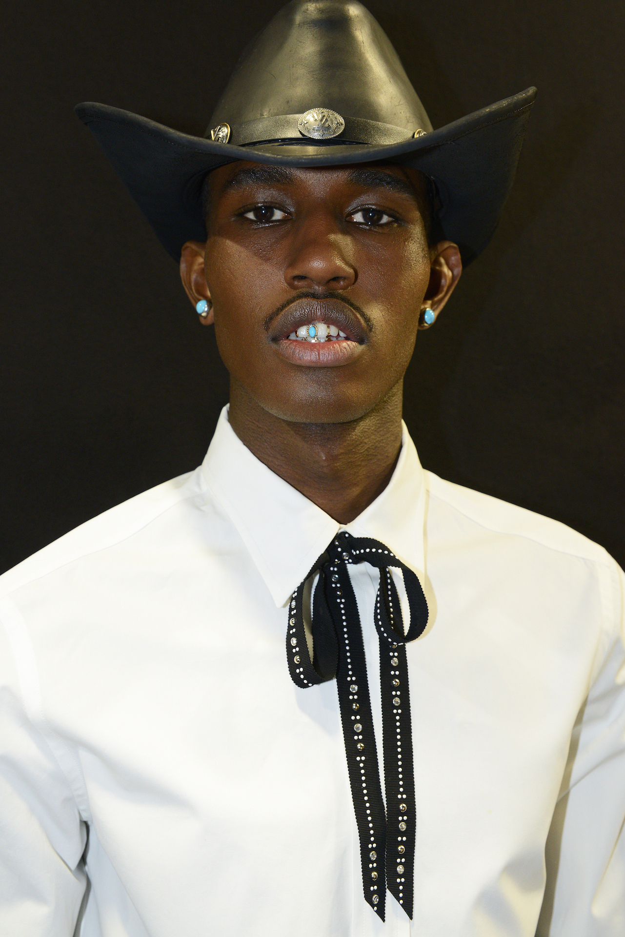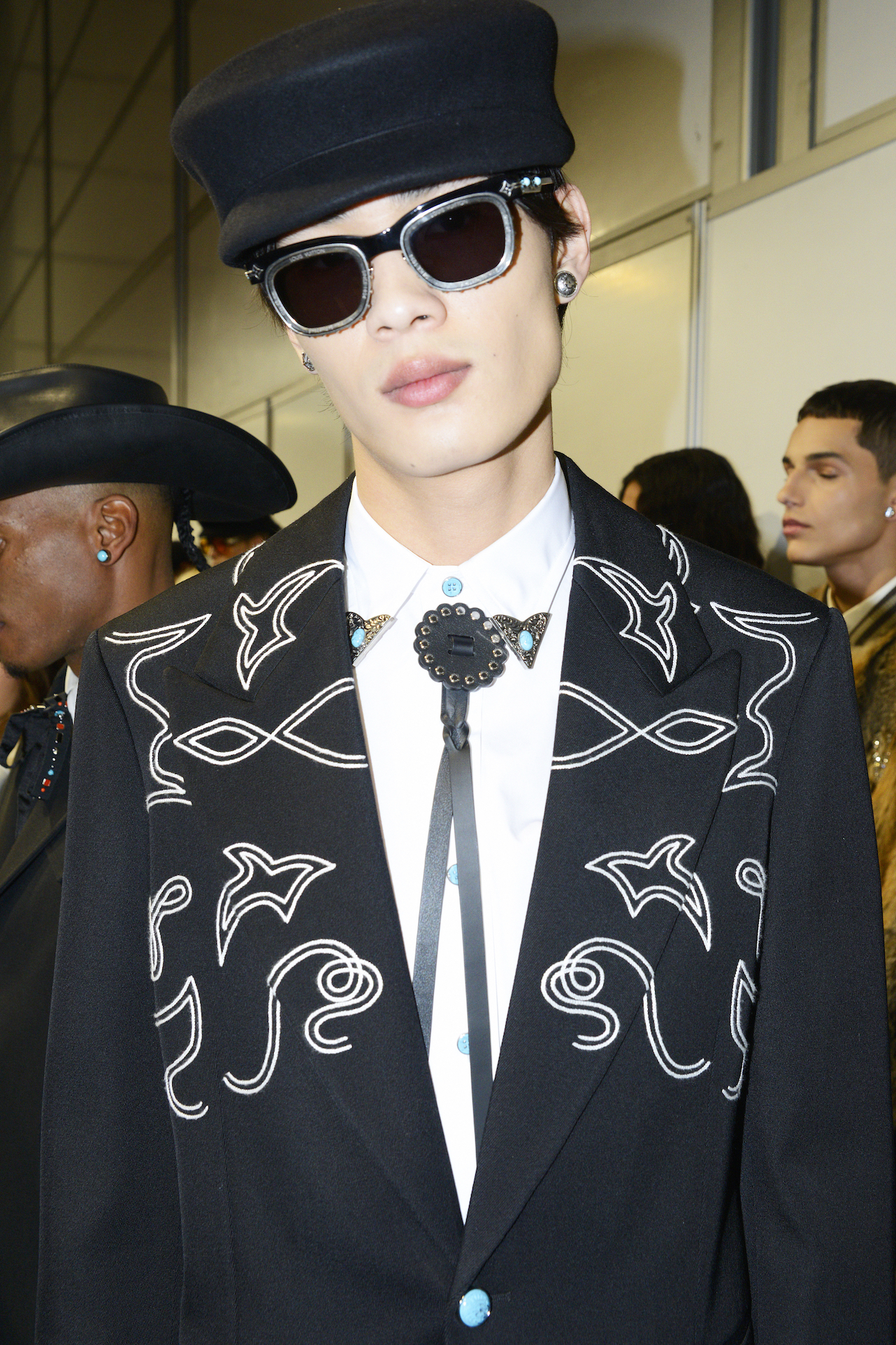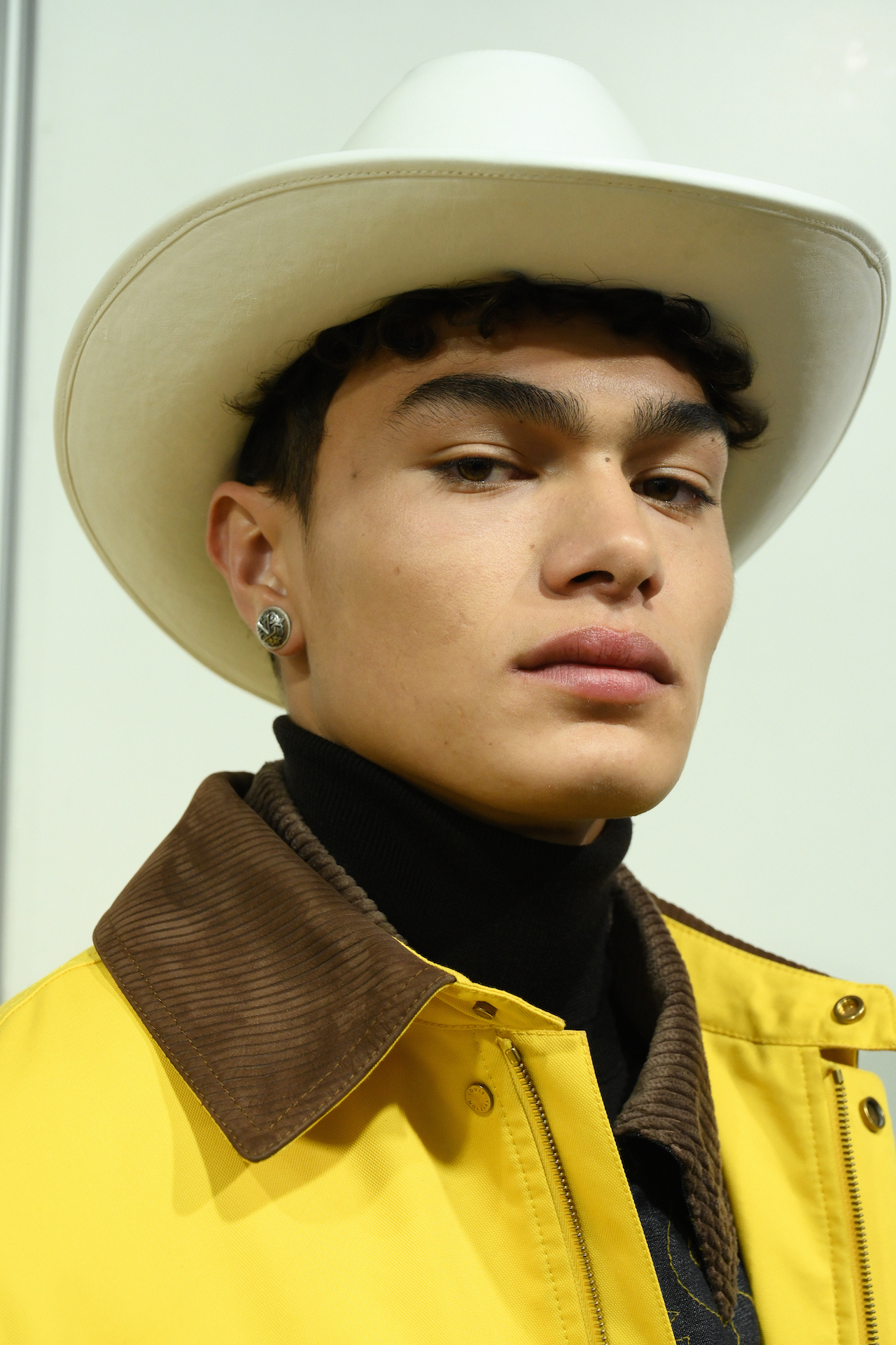 カウボーイハットからカウボーイブーツ、インディアンジュエリーにボロタイと、まさに頭からつま先までウェスタンづくし。フリンジやアップリケもふんだんにあしらわれ、Pharrell らしい遊び心が満載のアイコニックなコレクションに仕上げられた。