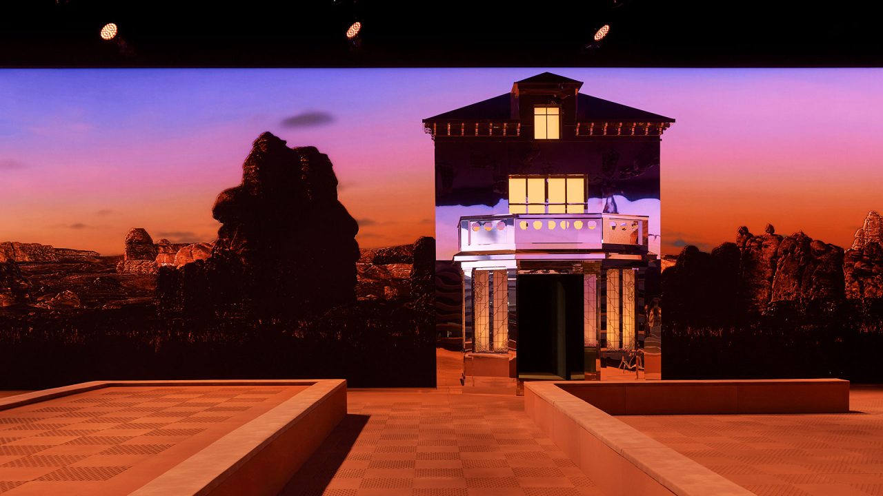 ショー会場は、パリ16区のブローニュの森の設置された特設テント。コレクションを象徴するかのように、会場にはまるで西部劇の世界に入り込んだと錯覚してしまうセットがお目見えした。