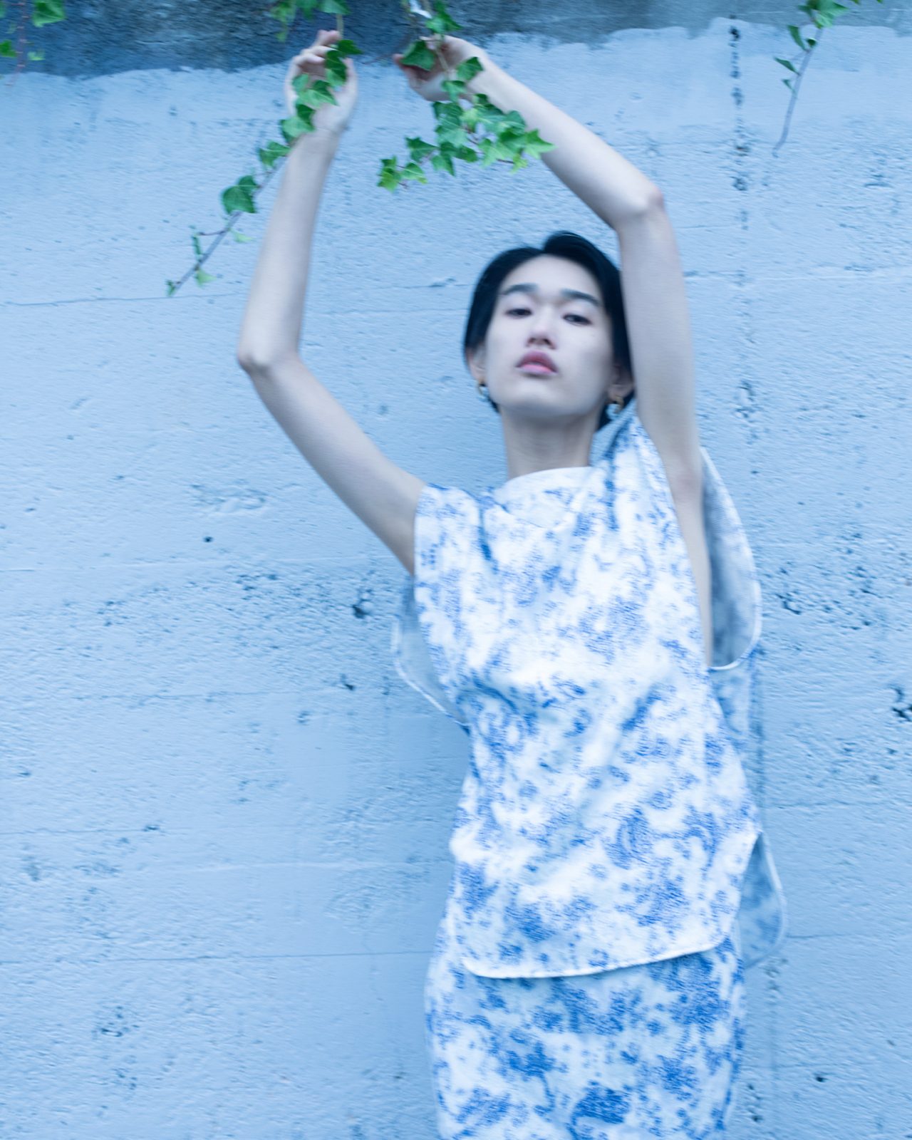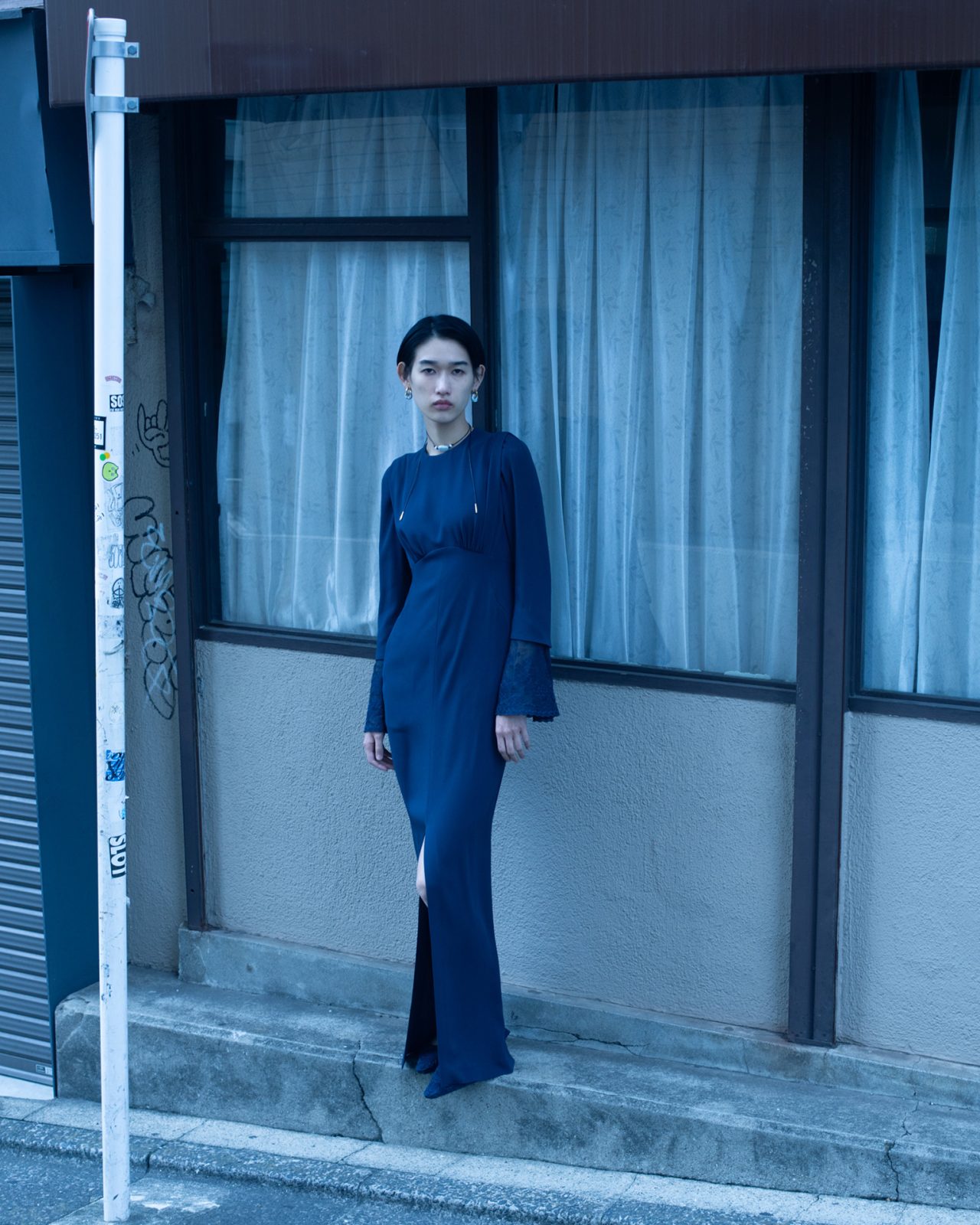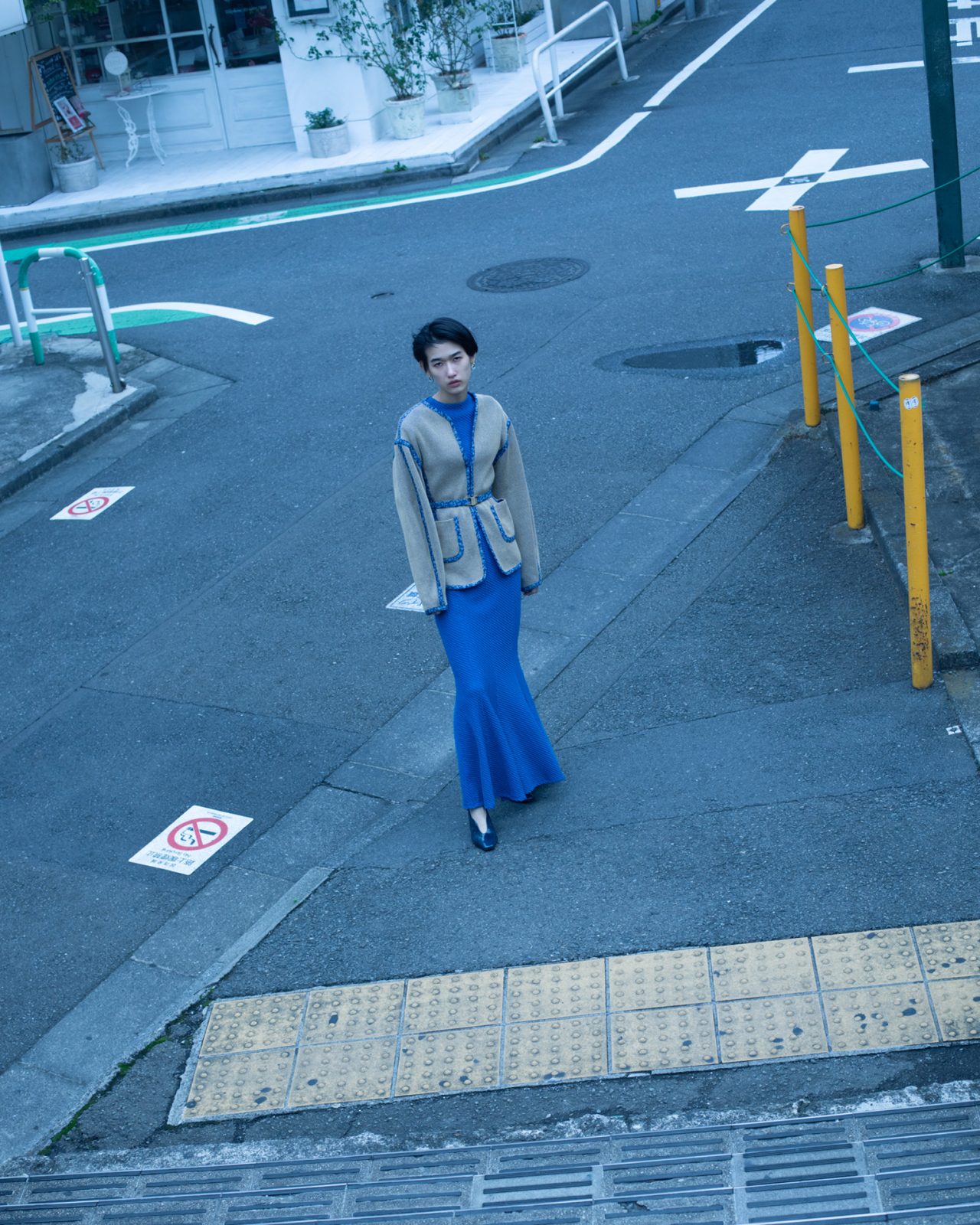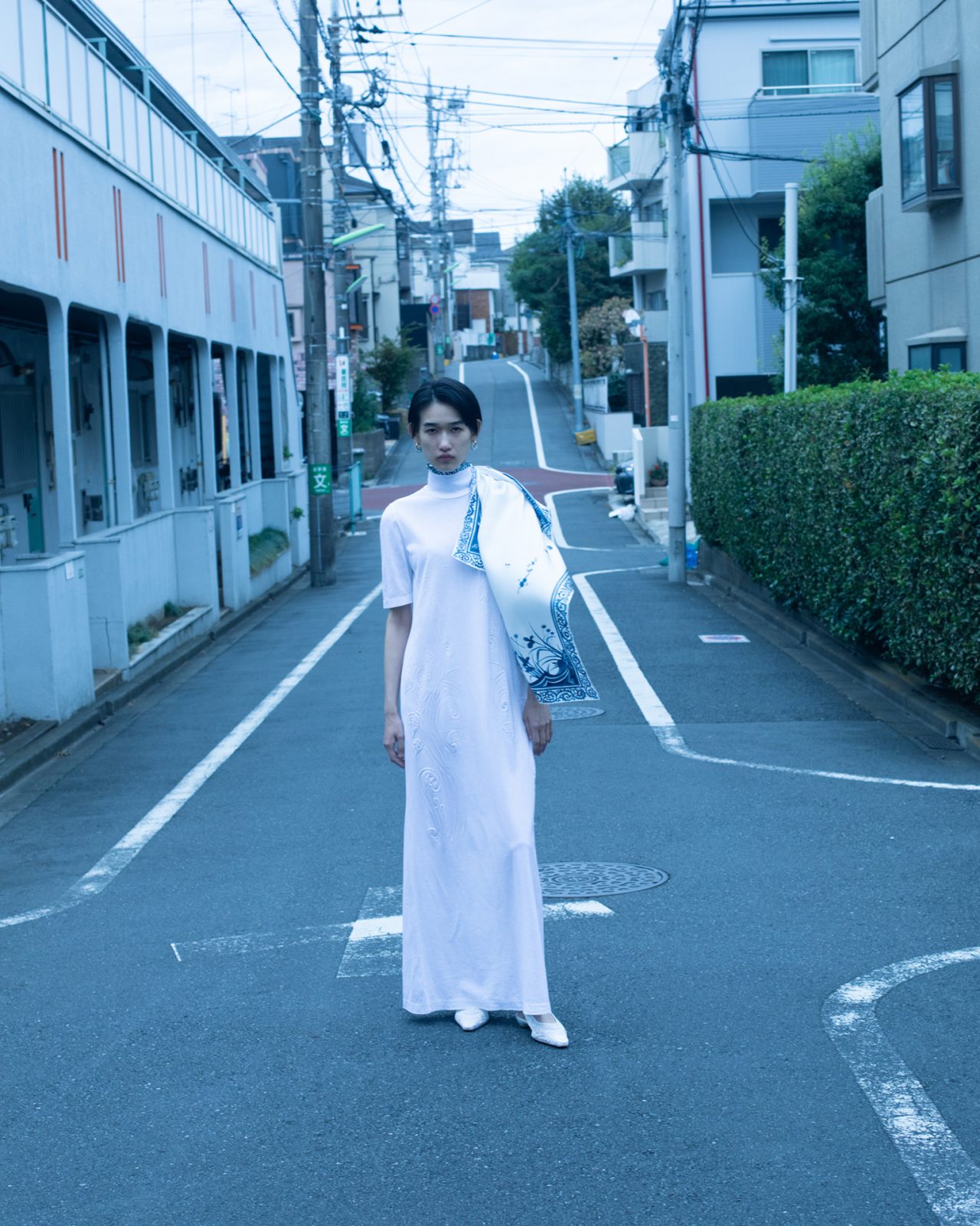 撮影を手がけたのは、国内外で精力的に活動を続けるフォトグラファーの細倉真弓で、ブランドの2023年ホリデーコレクションのキービジュアルも担当。彼女の作品を象徴するブルーを纏い、非日常性・非現実性を帯びた浮遊感のあるビジュアルを制作した。撮影場所には、ブランドとゆかりのある地をピックアップ。有田町と羽根木という異なる場所・時間の「日常」を混和させ、⿊河内真⾐子の記憶をトリップするような世界観をイメージしている。