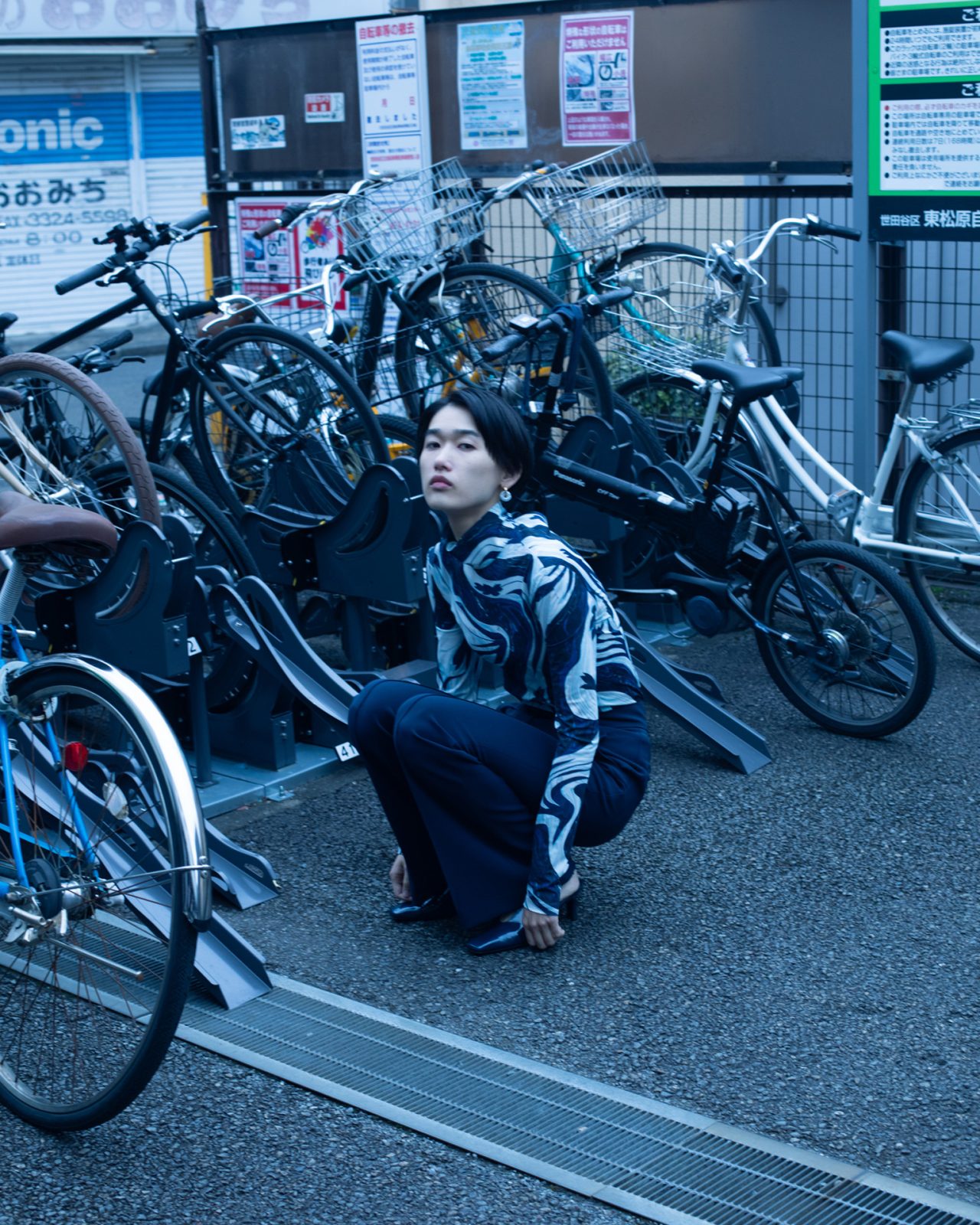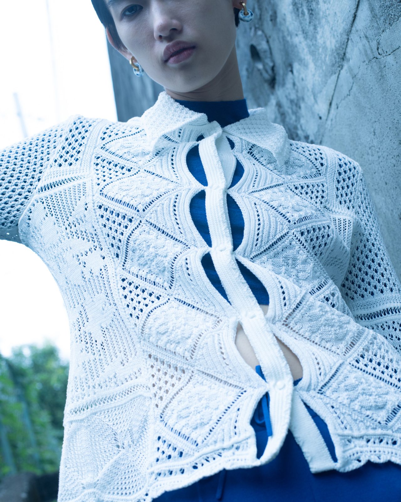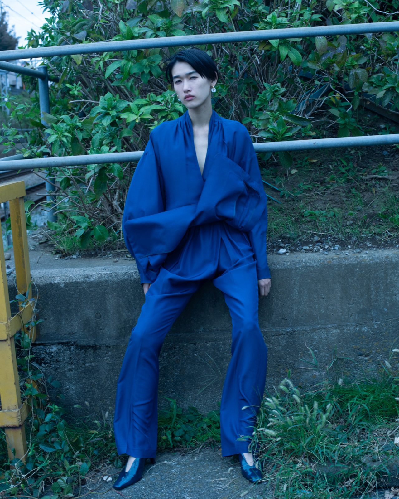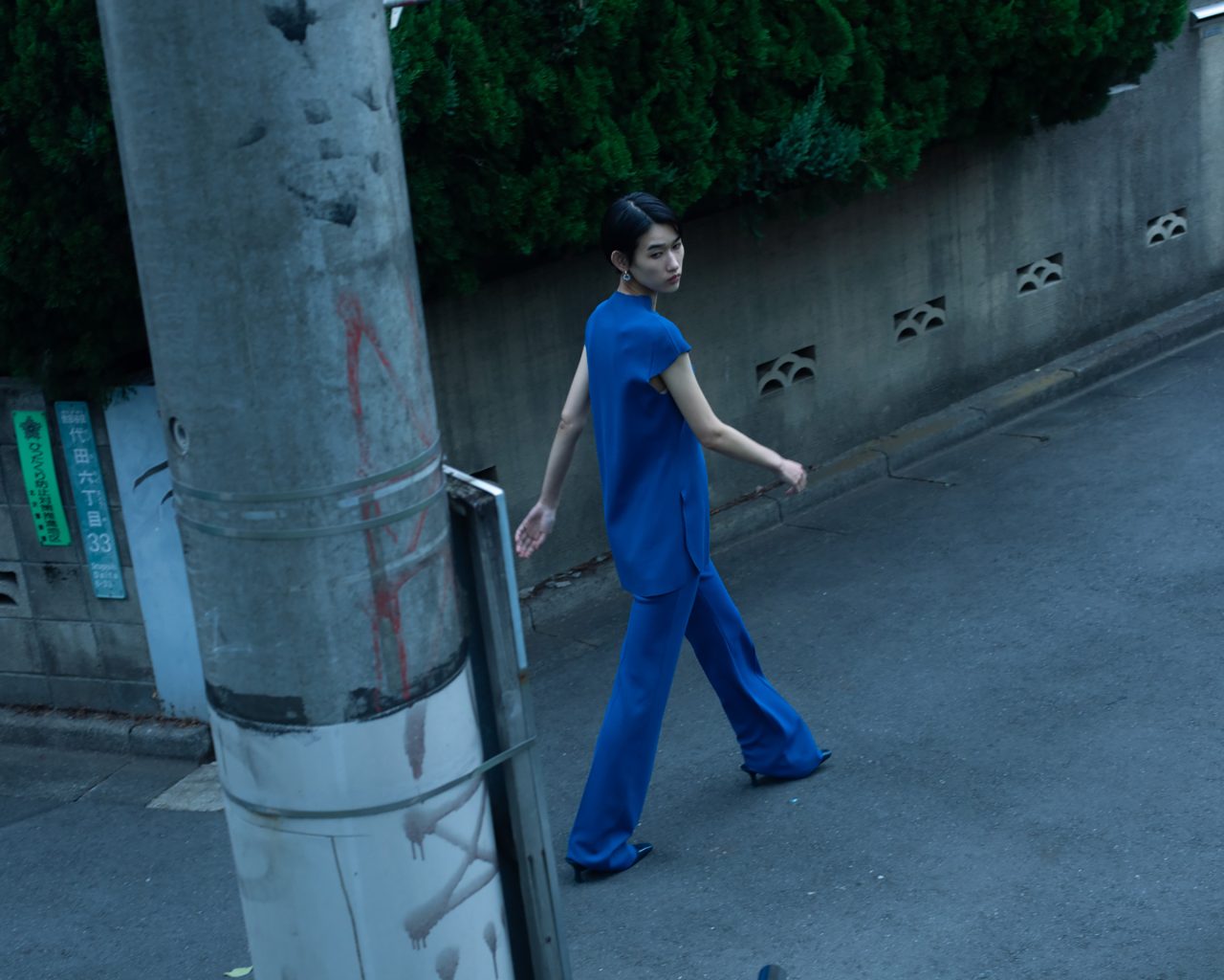 撮影を手がけたのは、国内外で精力的に活動を続けるフォトグラファーの細倉真弓で、ブランドの2023年ホリデーコレクションのキービジュアルも担当。彼女の作品を象徴するブルーを纏い、非日常性・非現実性を帯びた浮遊感のあるビジュアルを制作した。撮影場所には、ブランドとゆかりのある地をピックアップ。有田町と羽根木という異なる場所・時間の「日常」を混和させ、⿊河内真⾐子の記憶をトリップするような世界観をイメージしている。