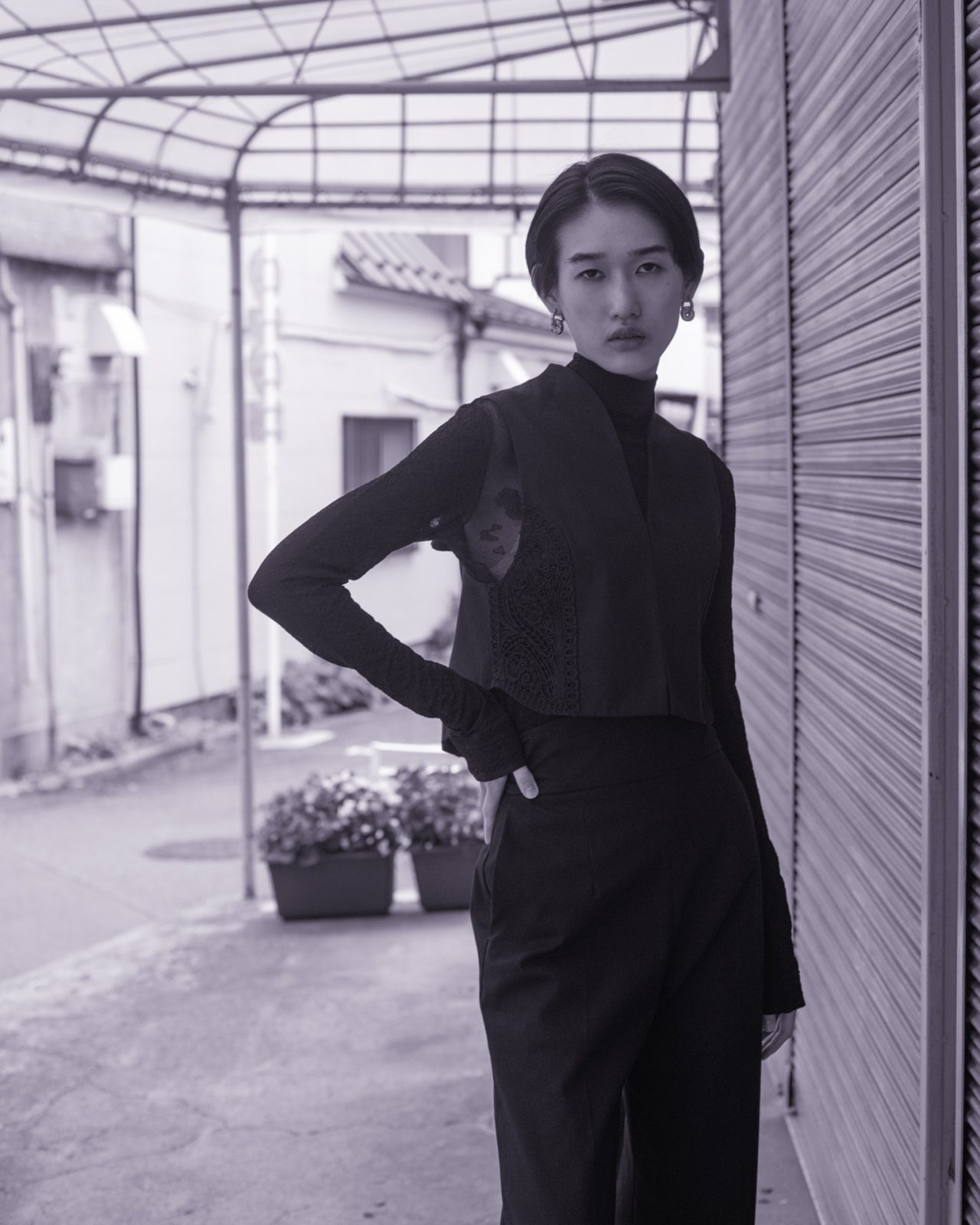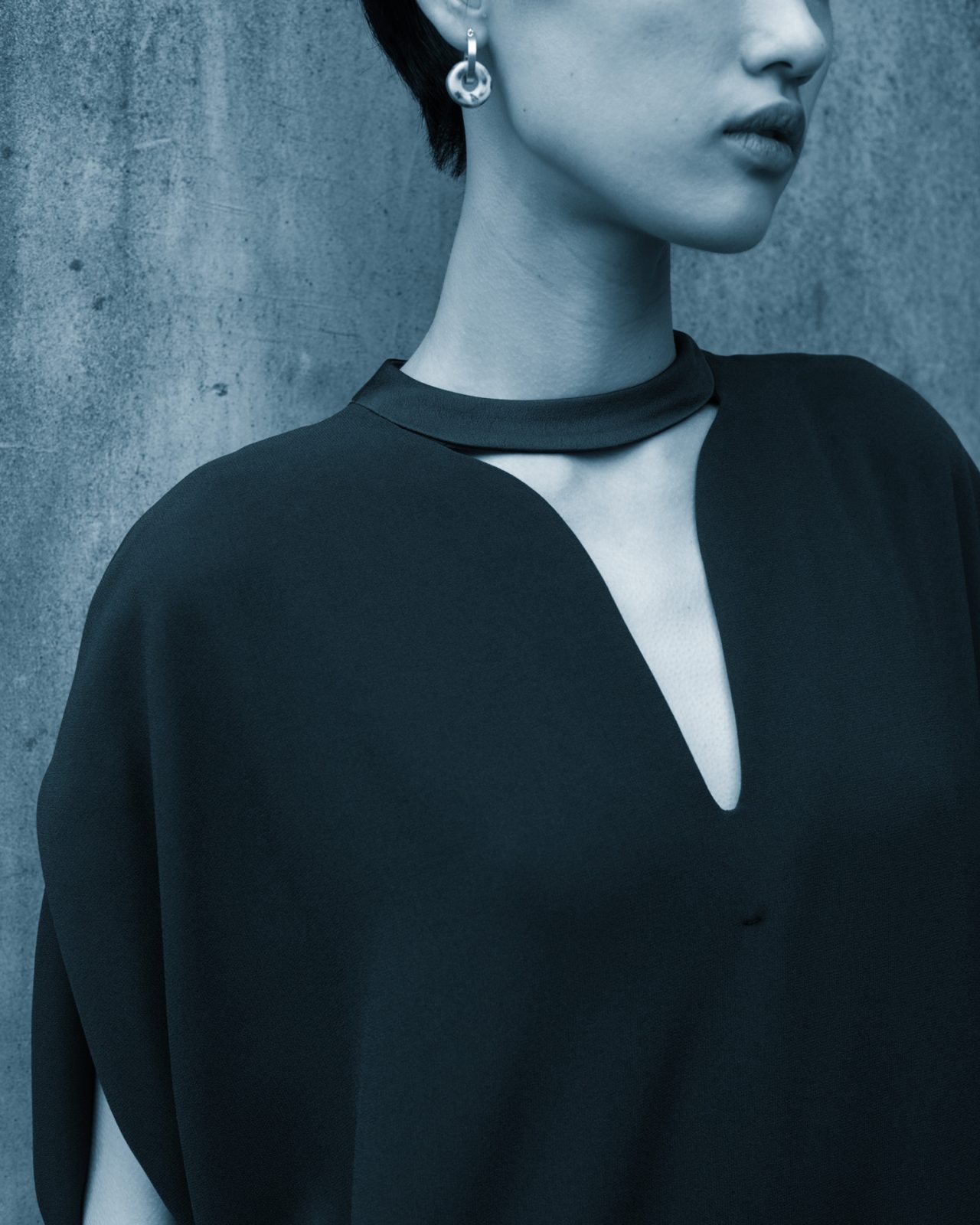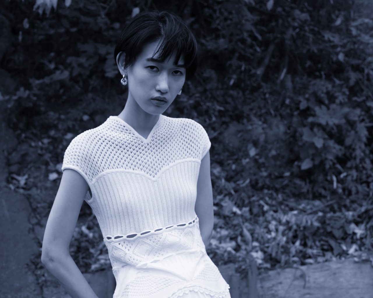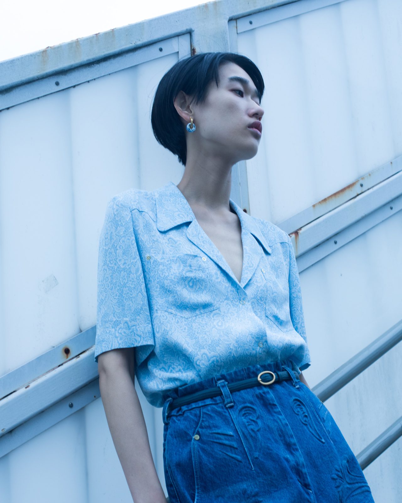 撮影を手がけたのは、国内外で精力的に活動を続けるフォトグラファーの細倉真弓で、ブランドの2023年ホリデーコレクションのキービジュアルも担当。彼女の作品を象徴するブルーを纏い、非日常性・非現実性を帯びた浮遊感のあるビジュアルを制作した。撮影場所には、ブランドとゆかりのある地をピックアップ。有田町と羽根木という異なる場所・時間の「日常」を混和させ、⿊河内真⾐子の記憶をトリップするような世界観をイメージしている。