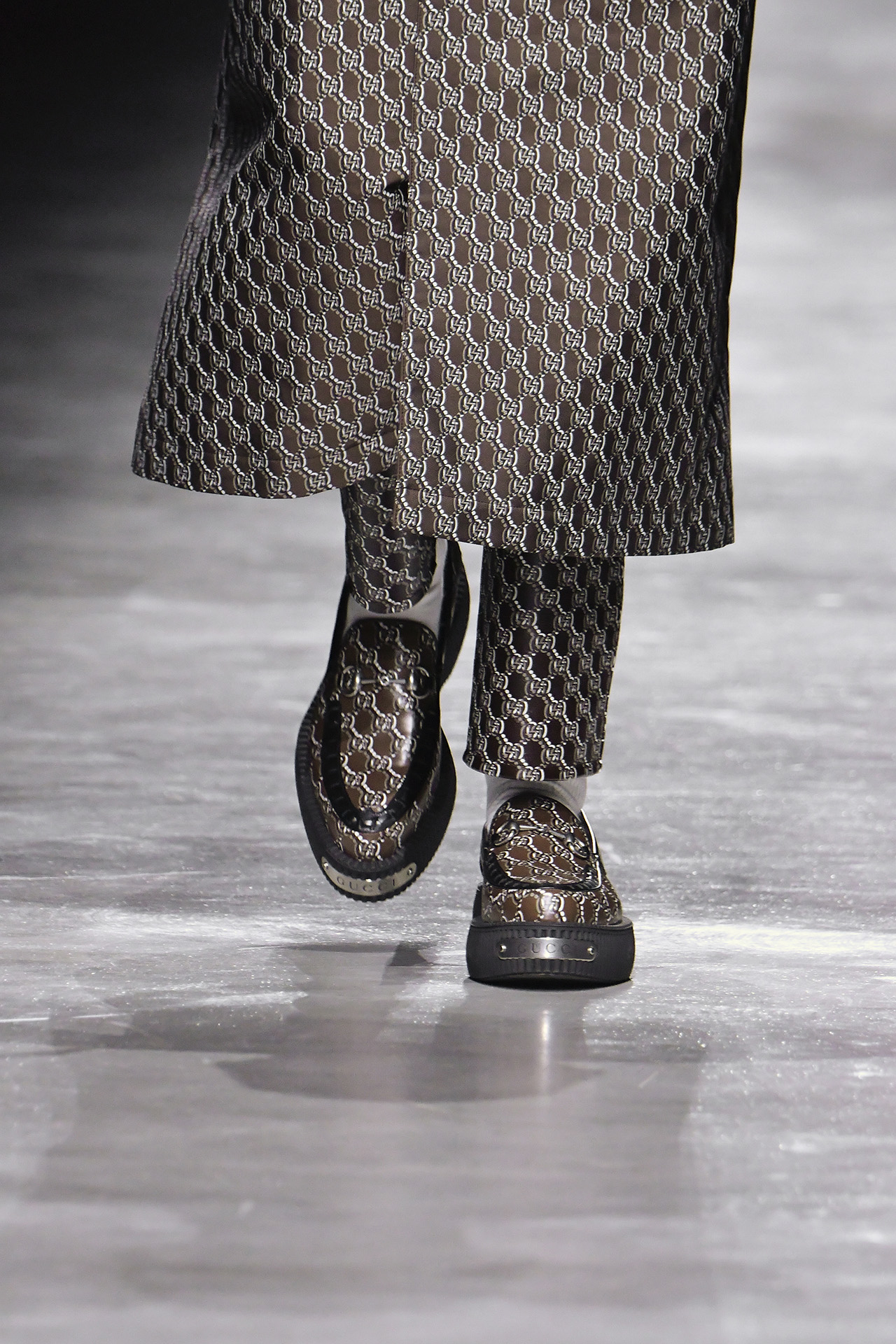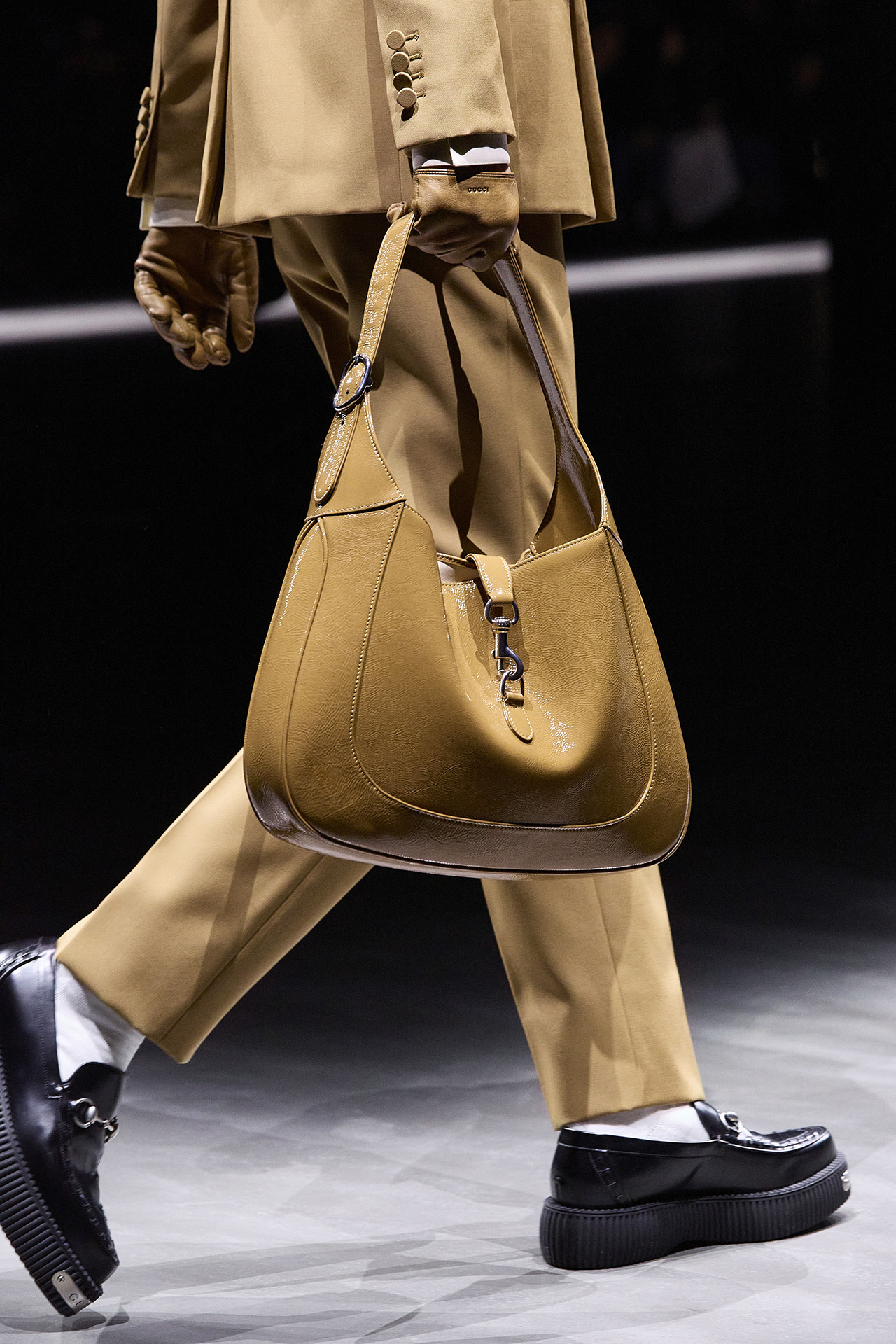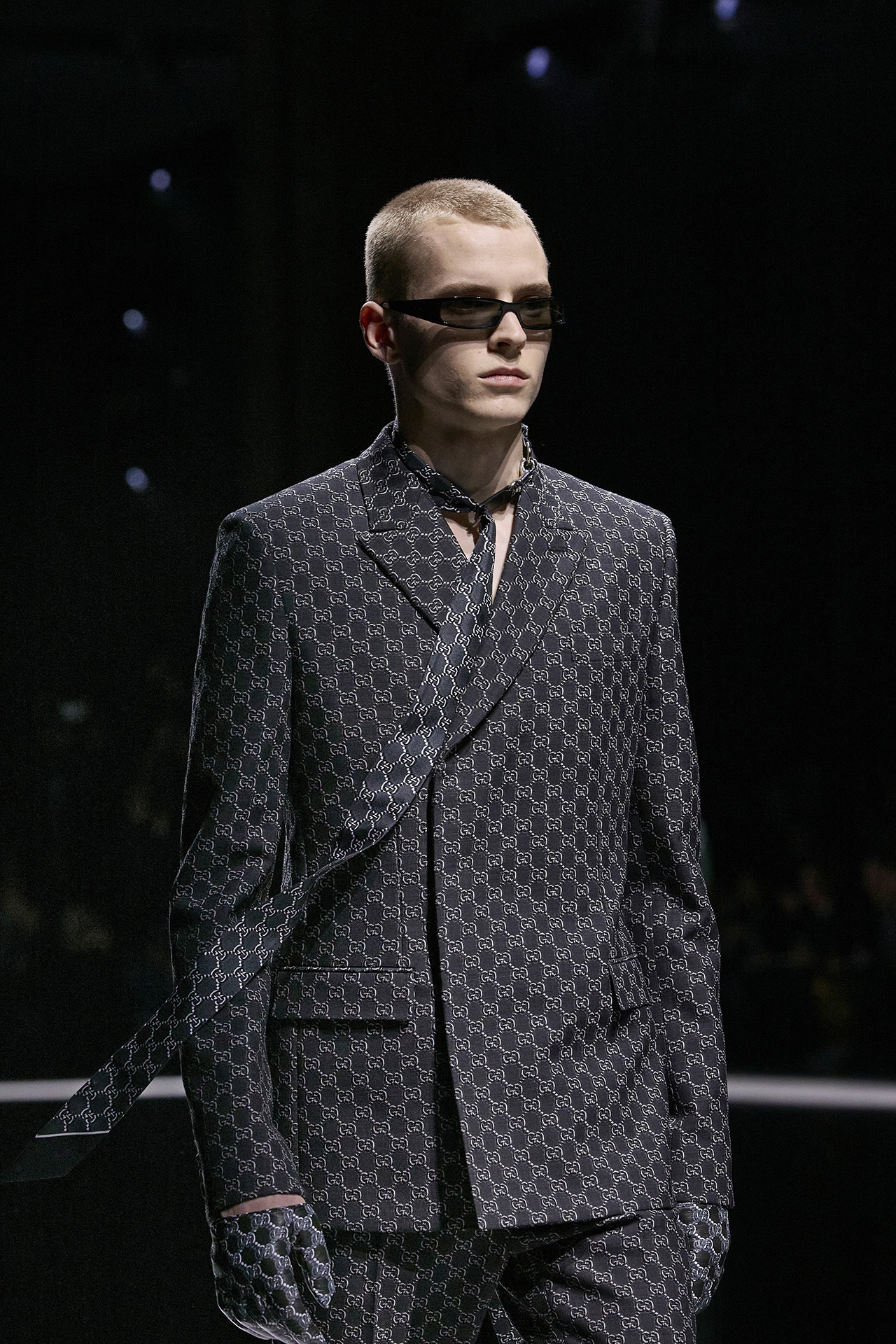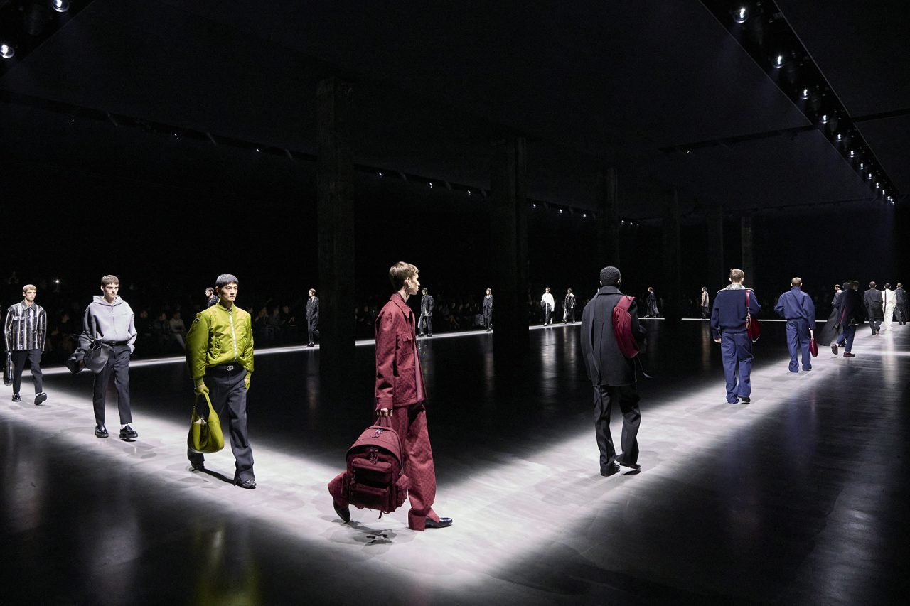 前回のウィメンズコレクションで注目を浴びた、厚みのあるプラットフォームが特徴のローファーを、今回はラバー製のソールにリアレンジ。また、ブランドを象徴する GG パターンがさらにアイコニックなデザインで登場。ドロップシャドウが立体感を与える新しい GG モチーフは、レザー、ウール、コットンなどのさまざまな素材にあしらわれた。ランウェイには、日本人俳優からは志尊淳、鈴木亮平、韓国の歌姫として知られる IU、アメリカのグラミー賞受賞歴のあるイギリス出身アーティスト Mark Ronson (マーク・ロンソン) など、世界中のセレブリティが参加。グローバル・アンバサダーである志尊淳は「100年以上続く GUCCI の歴史に、サバトがこれから新しい歴史を紡いでいく。そのスタートの場に立ち会えたことを、本当に幸せに思います。」とコメントを述べた。