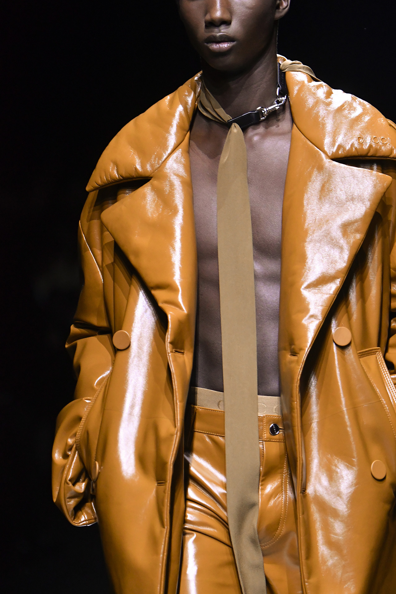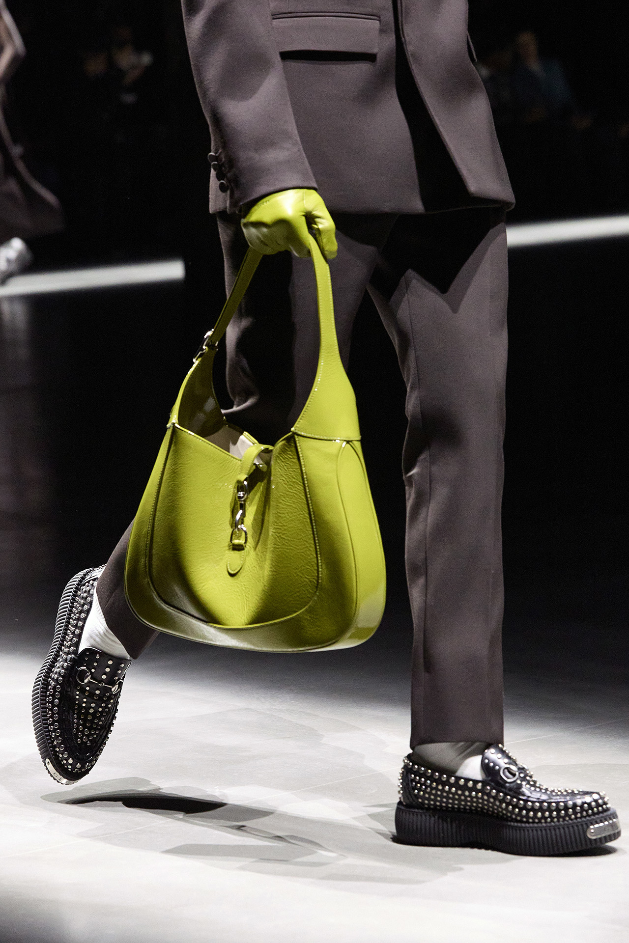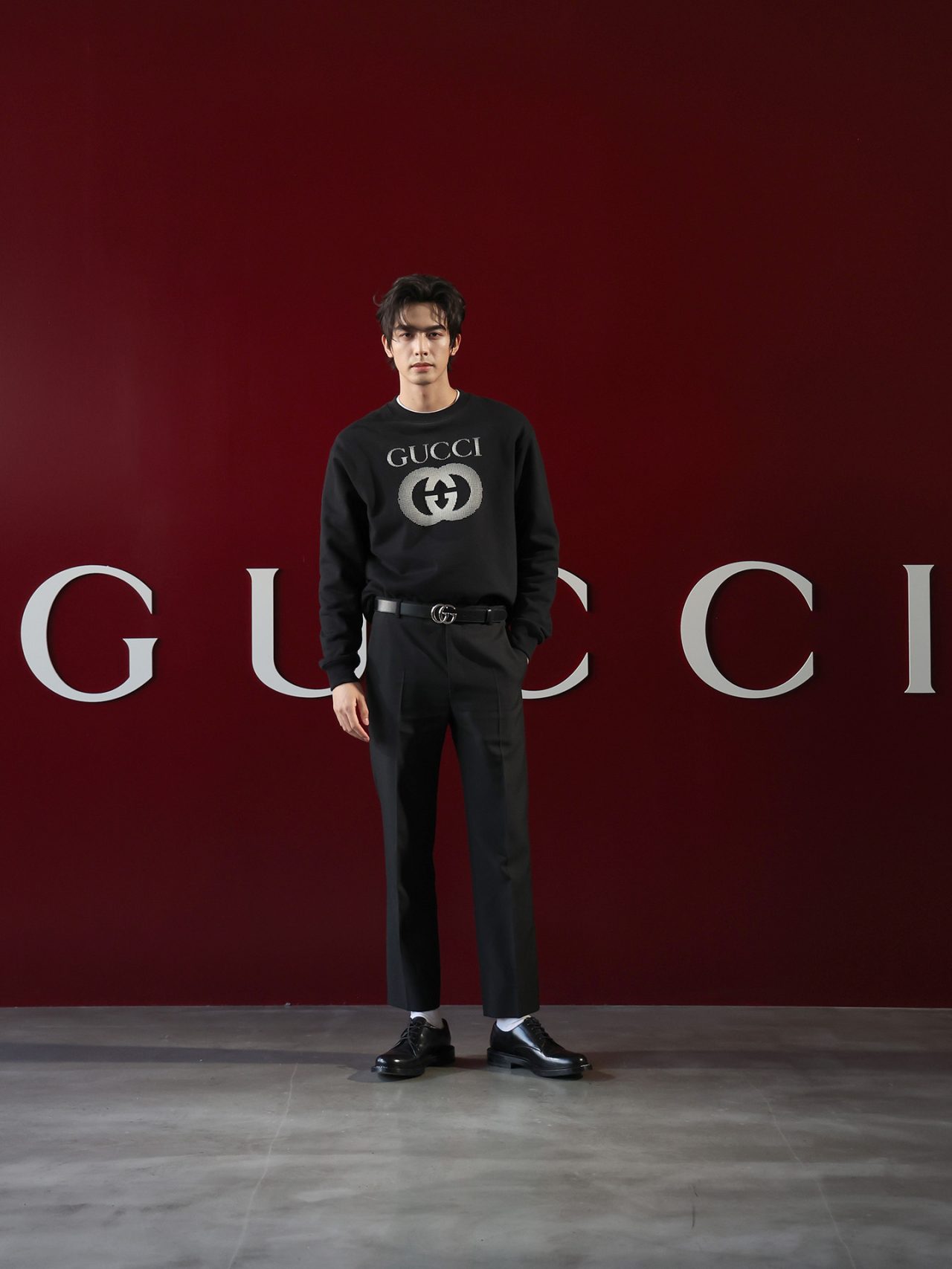 前回のウィメンズコレクションで注目を浴びた、厚みのあるプラットフォームが特徴のローファーを、今回はラバー製のソールにリアレンジ。また、ブランドを象徴する GG パターンがさらにアイコニックなデザインで登場。ドロップシャドウが立体感を与える新しい GG モチーフは、レザー、ウール、コットンなどのさまざまな素材にあしらわれた。ランウェイには、日本人俳優からは志尊淳、鈴木亮平、韓国の歌姫として知られる IU、アメリカのグラミー賞受賞歴のあるイギリス出身アーティスト Mark Ronson (マーク・ロンソン) など、世界中のセレブリティが参加。グローバル・アンバサダーである志尊淳は「100年以上続く GUCCI の歴史に、サバトがこれから新しい歴史を紡いでいく。そのスタートの場に立ち会えたことを、本当に幸せに思います。」とコメントを述べた。