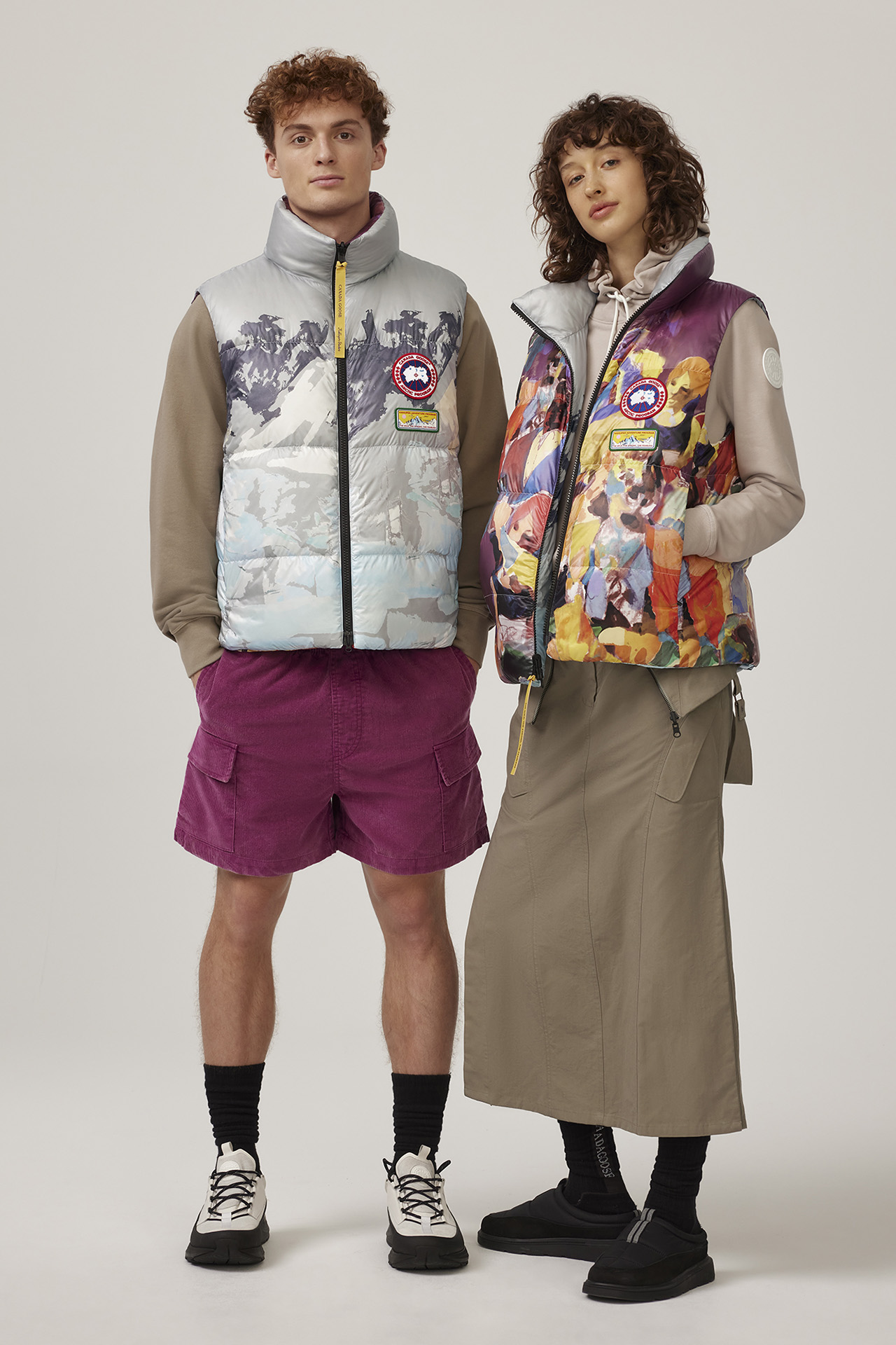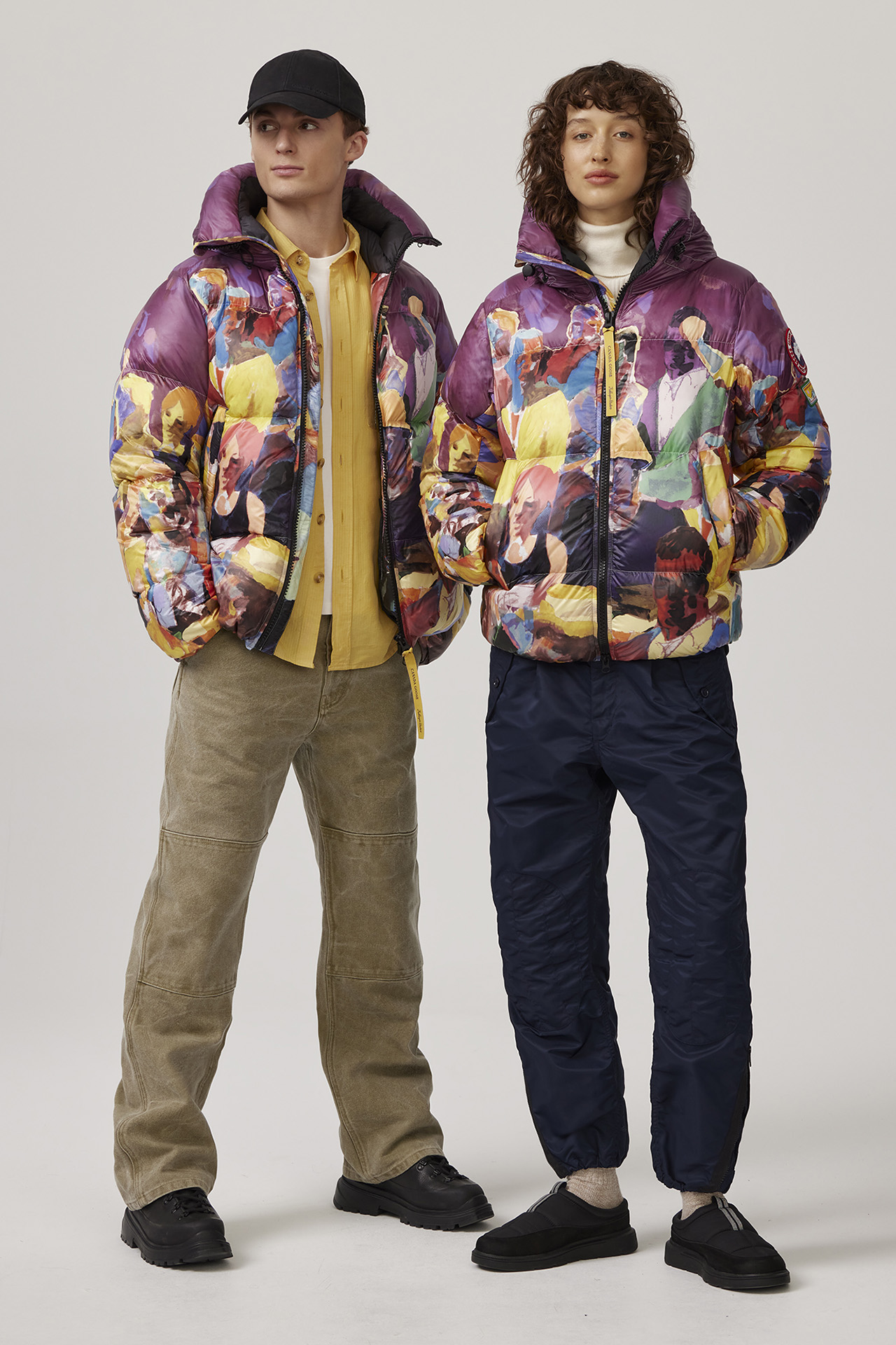 NBA との長年にわたるパートナーシップの一環として、CANADA GOOSE とストリートウェアブランド KidSuper がタッグを組み、コラボコレクションを制作。今回は、冒険がインスピレーション源であるほか、KidSuper の創設者 Colm Dillane (コルム・ディレイン) のオリジナルのアートワークが軸となっている。スポーツを通じた人と人との繋がりを称え、スタジアムで熱狂するファンの姿を描いた「Purple Crowd (パープル クラウド)」と 、雪に覆われた山頂と凍りついた水面が描かれ、「Live in the Open (オープンに生きる)」という CANADA GOOSE の理念を表現した「Landscape (ランドスケープ)」の2つのプリントが特徴。軽量で耐久性に優れたベストやダウンジャケット、リサイクルジャージーを使用したフリースジャケット、メリノウールを採用したニット帽などを展開する。