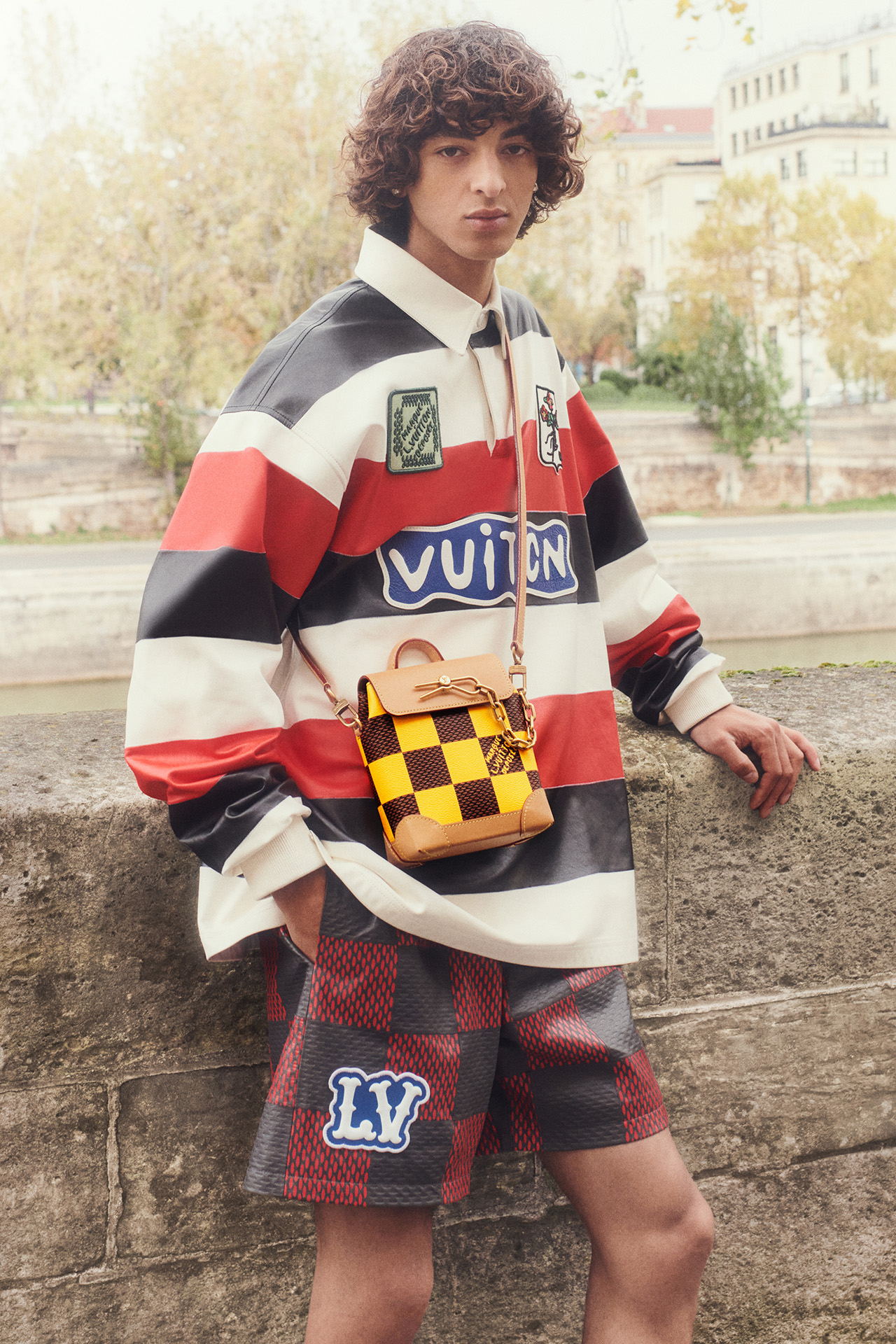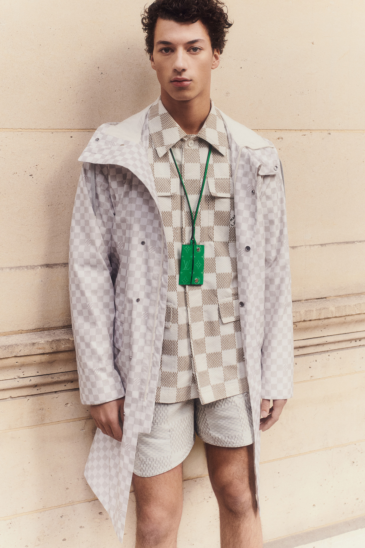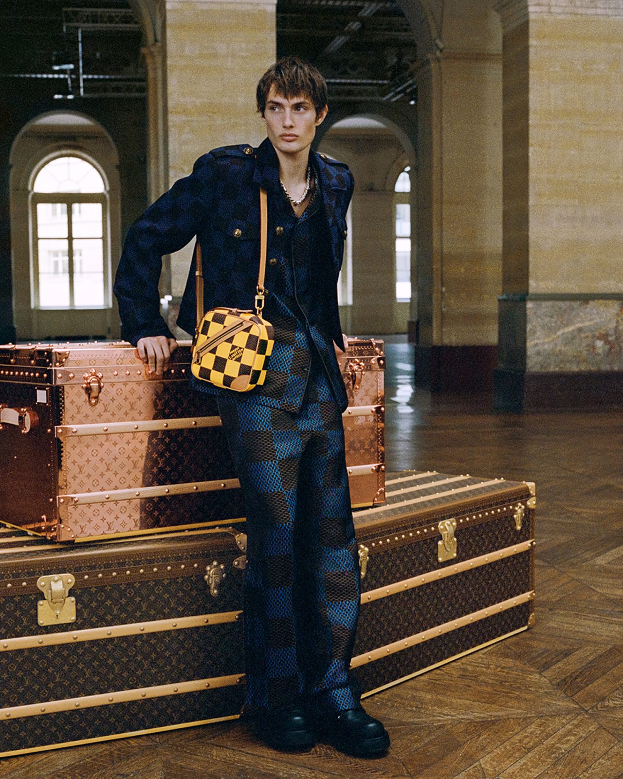 Pharrell Williams のデビューコレクションとなった2024年春夏メンズ・コレクションは、パリにある最古の橋、ポンヌフにて発表された。本コレクションのインスピレーション源となっているのは、太陽。光線を表すグラフィック、温かみのあるカラーパレット、ウェアやアクセサリーに煌めきを与える輝く装飾などで表現している。そして、今回のコレクションにおいて最大のポイントは、LOUIS VUITTON の伝統的なダミエ・パターンとカモフラージュ柄を融合させ、3色で描かれたダモフラージュ。アクセサリーやバッグ、トランクをはじめ、ワークウェア、デニム、パジャマ、ニットウェアのファー、テーラーリングのジャカードにあしらわれている。今回は、Pharrell Williams らしさ満載で、ダモフラージュや色彩豊かなアイテムが際立つビジュアルに仕上がった。