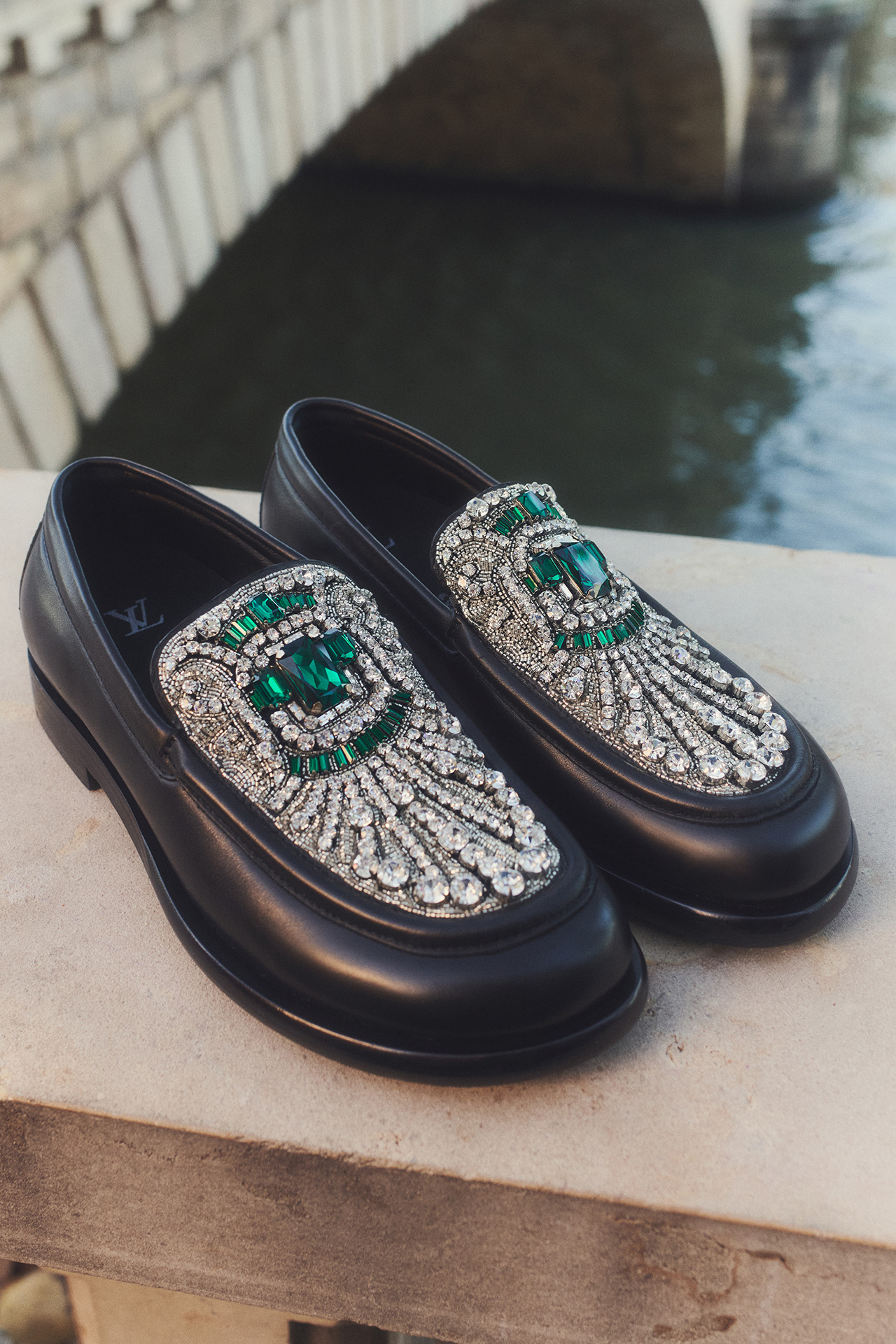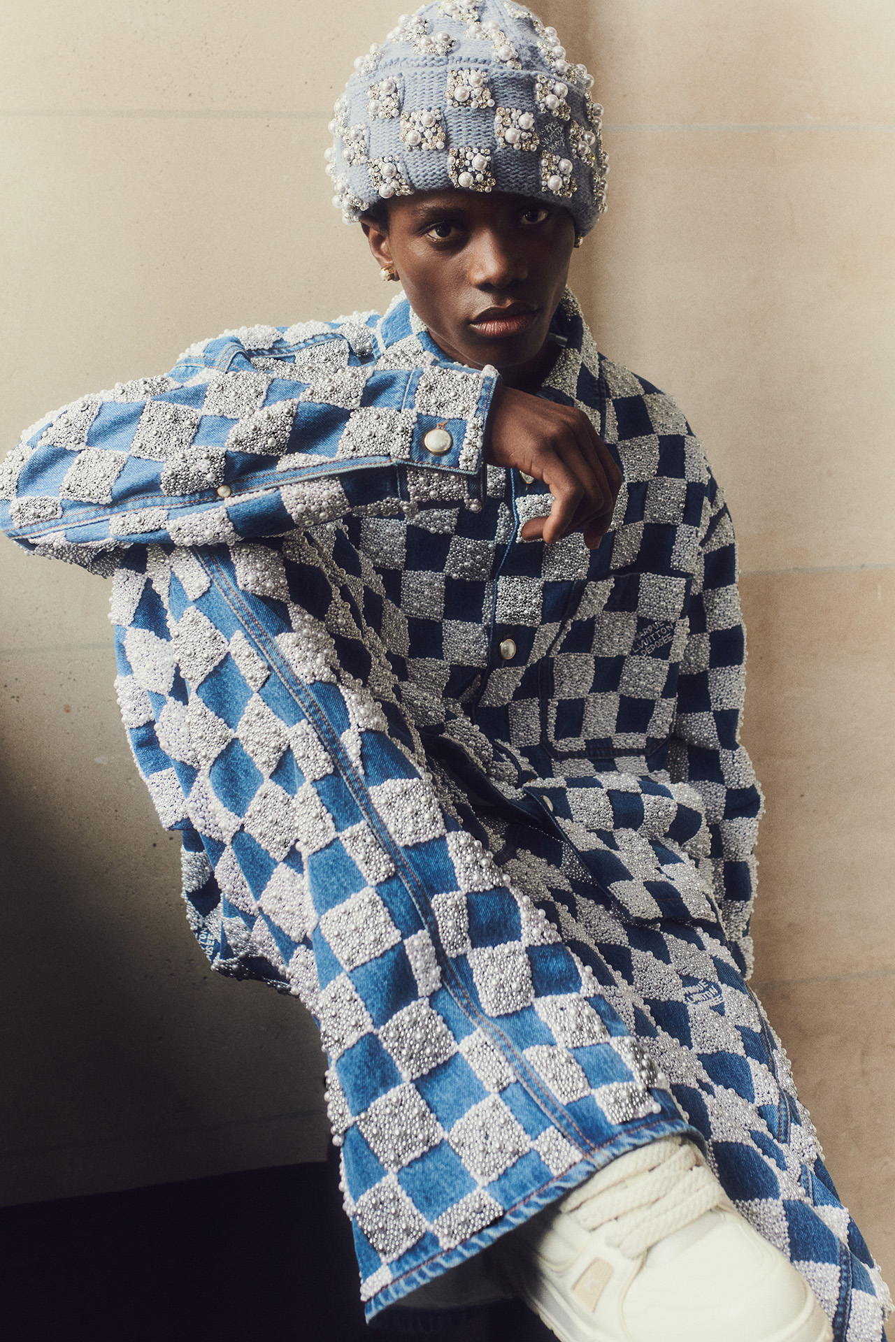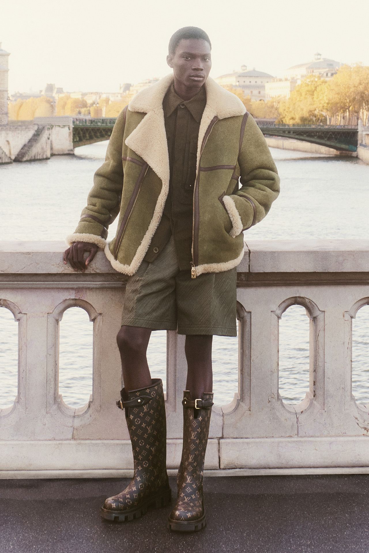 Pharrell Williams のデビューコレクションとなった2024年春夏メンズ・コレクションは、パリにある最古の橋、ポンヌフにて発表された。本コレクションのインスピレーション源となっているのは、太陽。光線を表すグラフィック、温かみのあるカラーパレット、ウェアやアクセサリーに煌めきを与える輝く装飾などで表現している。そして、今回のコレクションにおいて最大のポイントは、LOUIS VUITTON の伝統的なダミエ・パターンとカモフラージュ柄を融合させ、3色で描かれたダモフラージュ。アクセサリーやバッグ、トランクをはじめ、ワークウェア、デニム、パジャマ、ニットウェアのファー、テーラーリングのジャカードにあしらわれている。今回は、Pharrell Williams らしさ満載で、ダモフラージュや色彩豊かなアイテムが際立つビジュアルに仕上がった。
