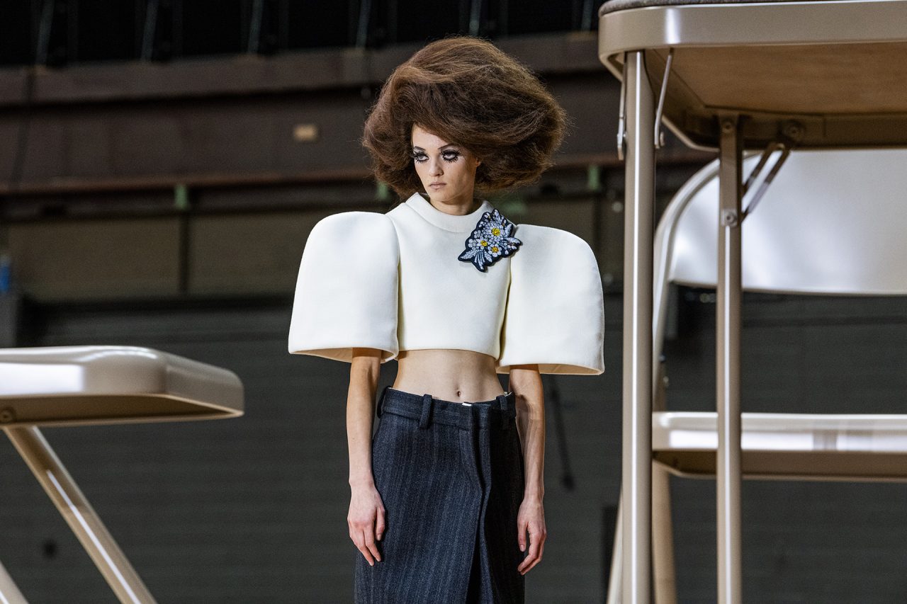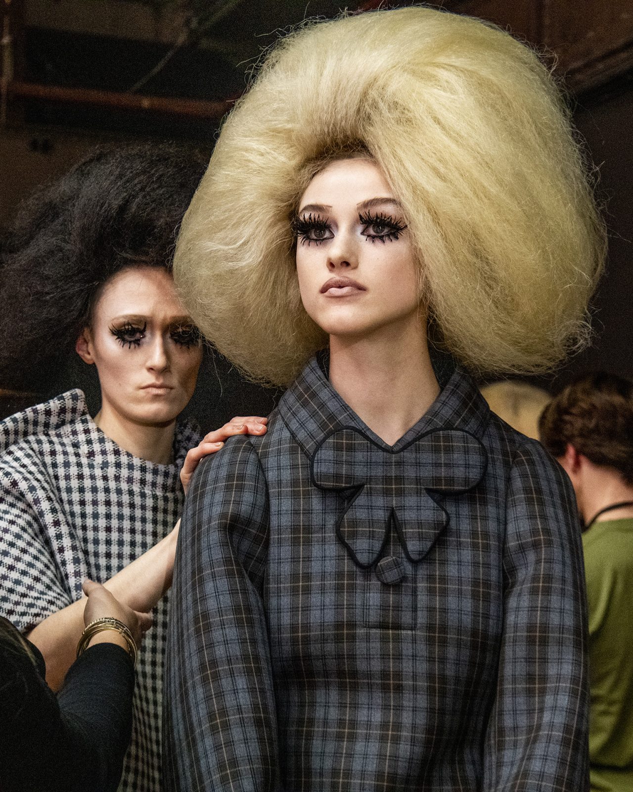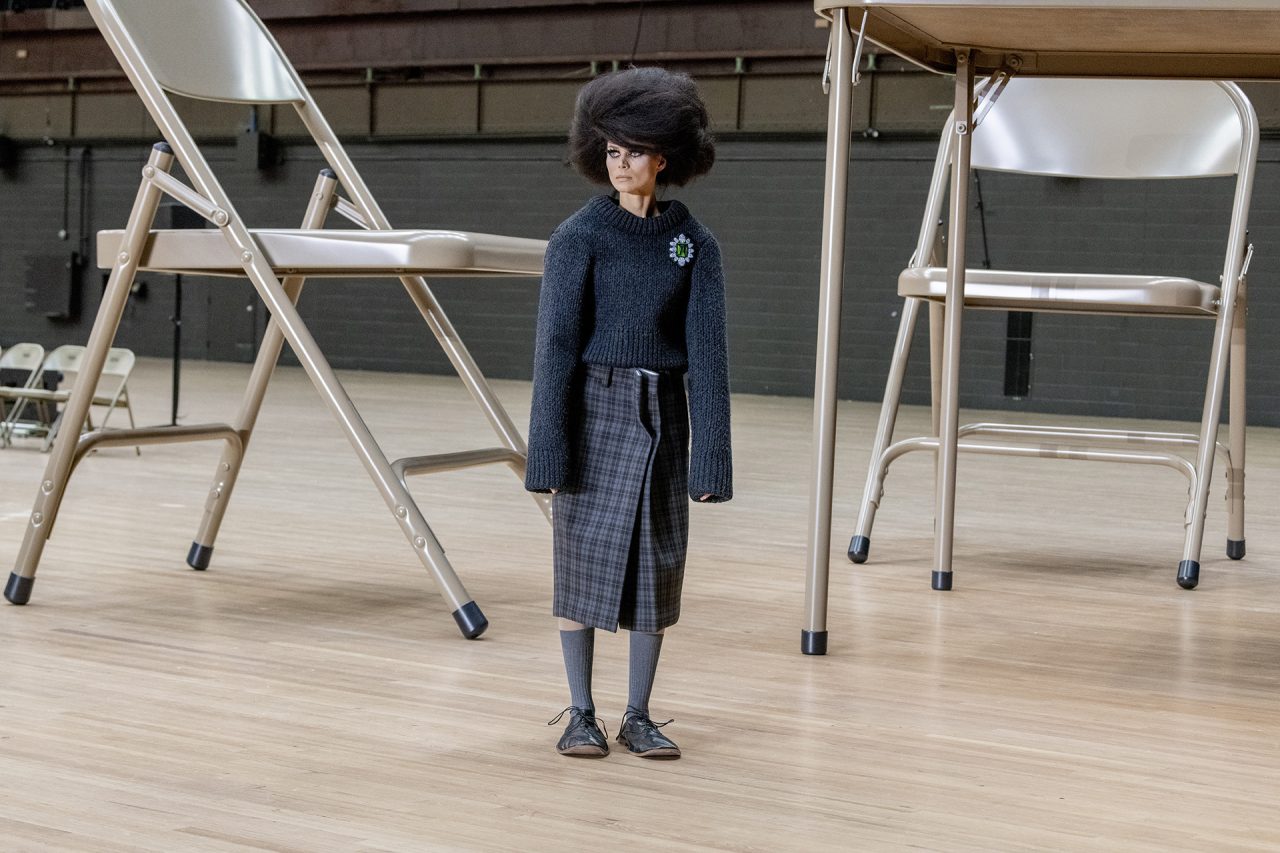ニューヨーク・ファッションウィークのスタートに先駆け、2024年春夏コレクションを発表した MARC JACOBS。会場は、一年前の2023年春夏コレクションと同じ場所であるパーク・アベニュー・アモリーで行われた。ニューヨークで高い人気を誇るアーティスト Robert Therrien (ロバート・テリアン) の作品である巨大な椅子や机をくぐり抜けるようにしてモデルが登場。ボリュームのあるヘアと人形のようなメイクに、平面図にも見える独特の雰囲気を放つウェアがマッチし、おとぎの世界にトリップするかのような感覚を助長させる。