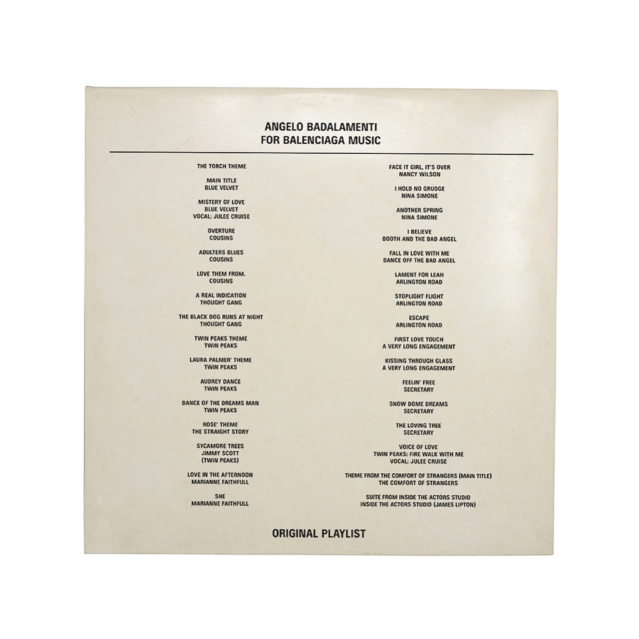 Balenciaga は、Demna (デムナ) によって選ばれたアーティストがオリジナルのプレイリストを作成する Balenciaga Music (バレンシアガ ミュージック) の一環として、映画音楽への貢献で知られるアメリカの作曲家 故 Angelo Badalamenti とのコラボレーションを発表した。プロジェクトは Badalamenti 氏が逝去する前の2020年からスタートしたもので、今回の正式ローンチに伴い同氏が自らの作品から選曲したプレイリストをストリーミングもしくはダウンロードできる。また、Badalamenti の手書きスコアをプリントしたリミテッドエディションのTシャツ、スウェットシャツも一部のストアとbalenciaga.com にて発売。