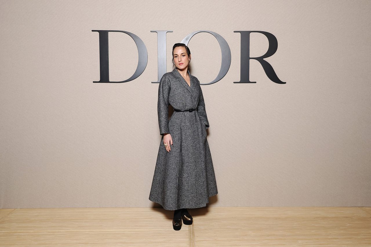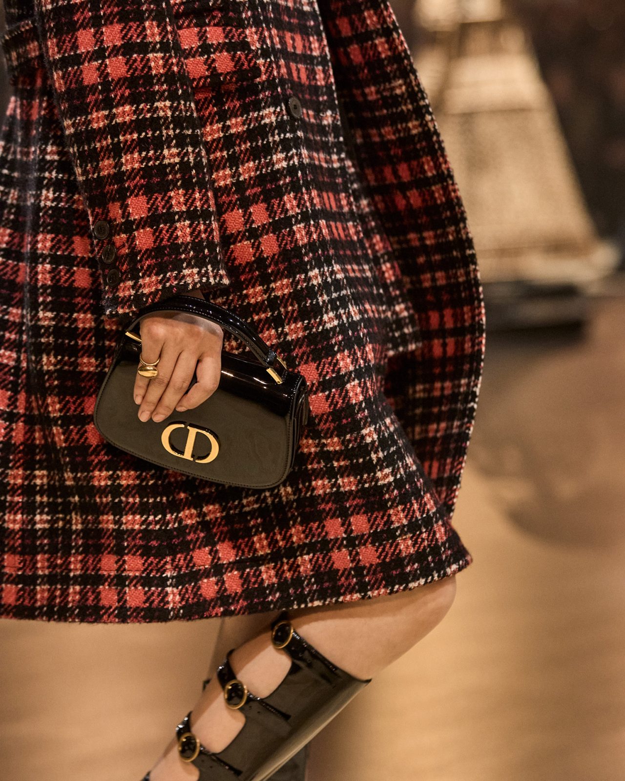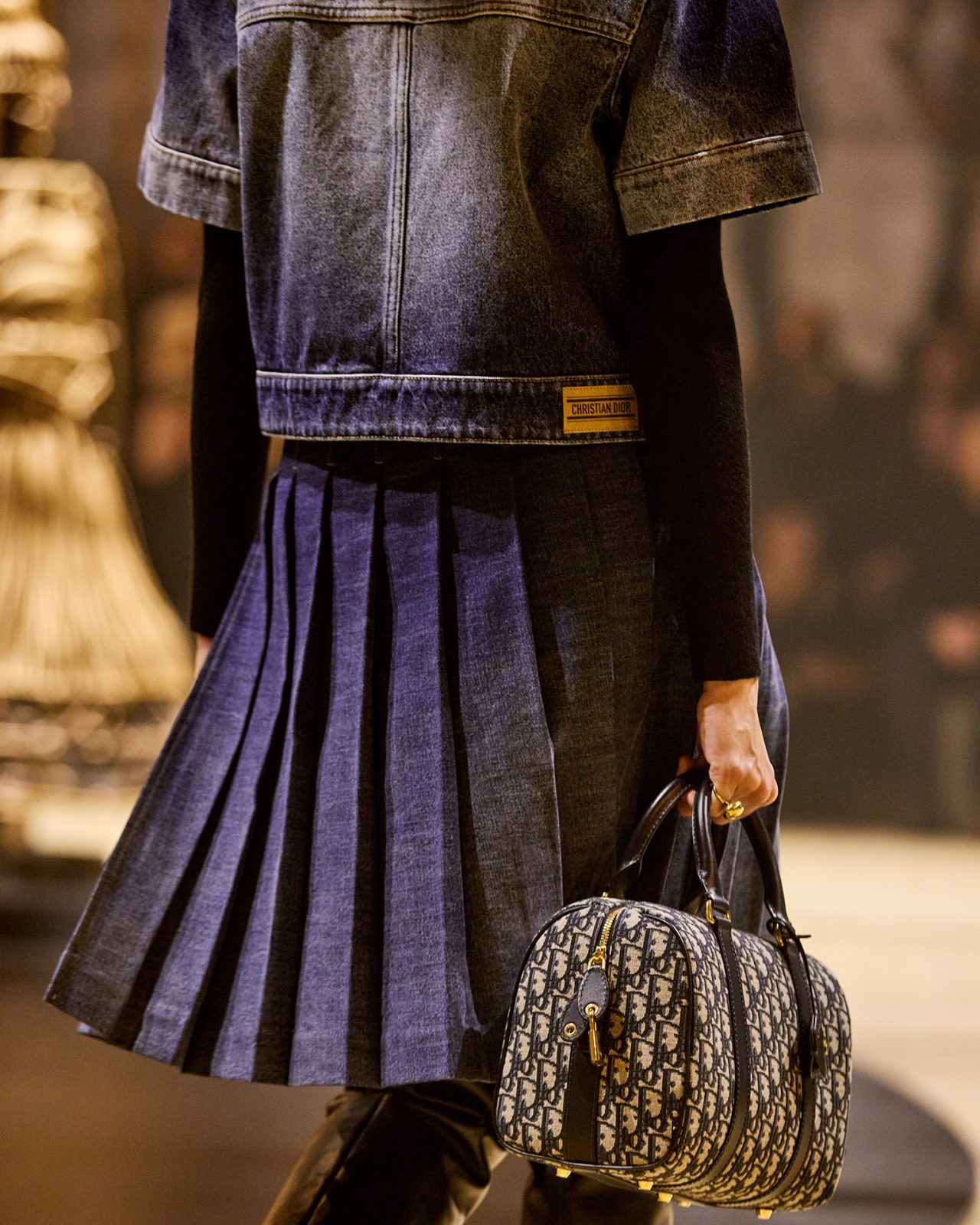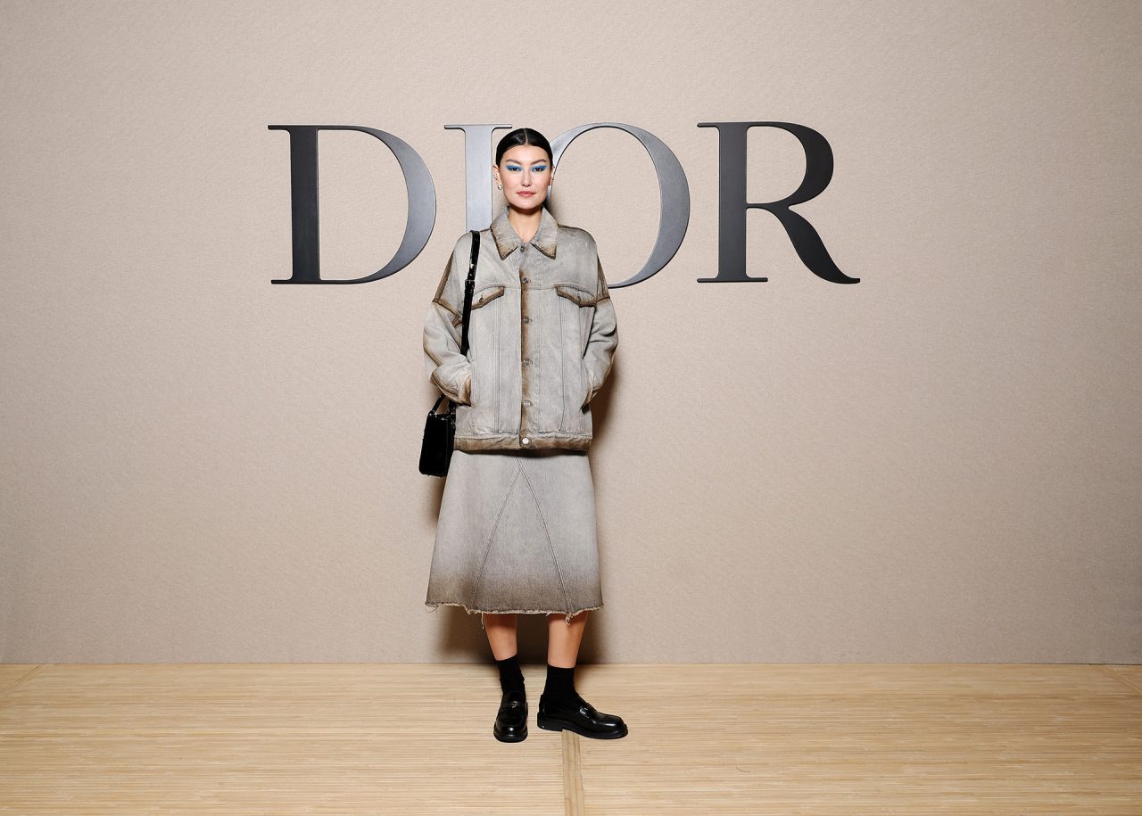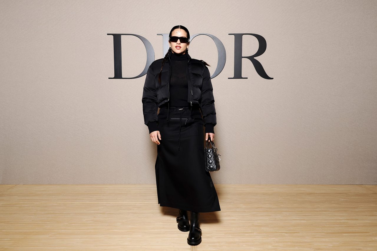 闘志をかき立てるように響き渡る打楽器の音色とともにショーは幕を開けた。冒頭にはベージュのギャバジン素材のトレンチコートやパンツスーツなどが登場。マスキュリンなアイテムを、流れるような質感とゆったりとしたシルエットでモダンに再解釈した。さらに本コレクションでひときわアイコニックだったのは、大胆な Miss Dior ロゴが入ったアイテム。手書き調の大きなロゴは街中のグラフィティペイントを思わせ、どこか挑戦的な雰囲気を放っている。