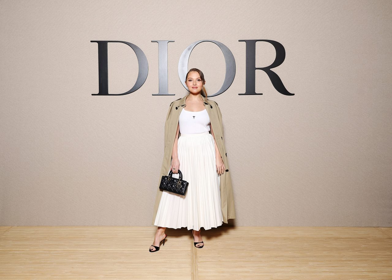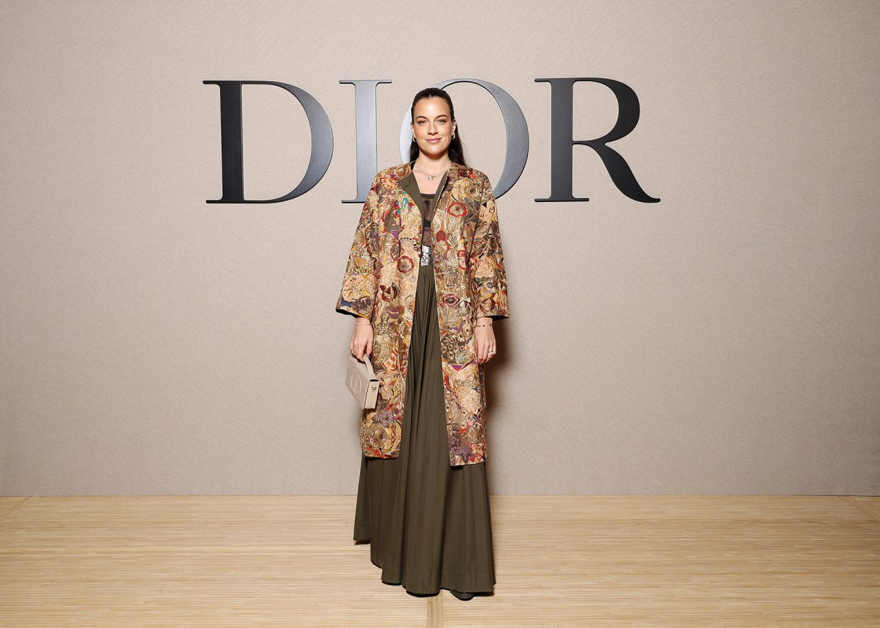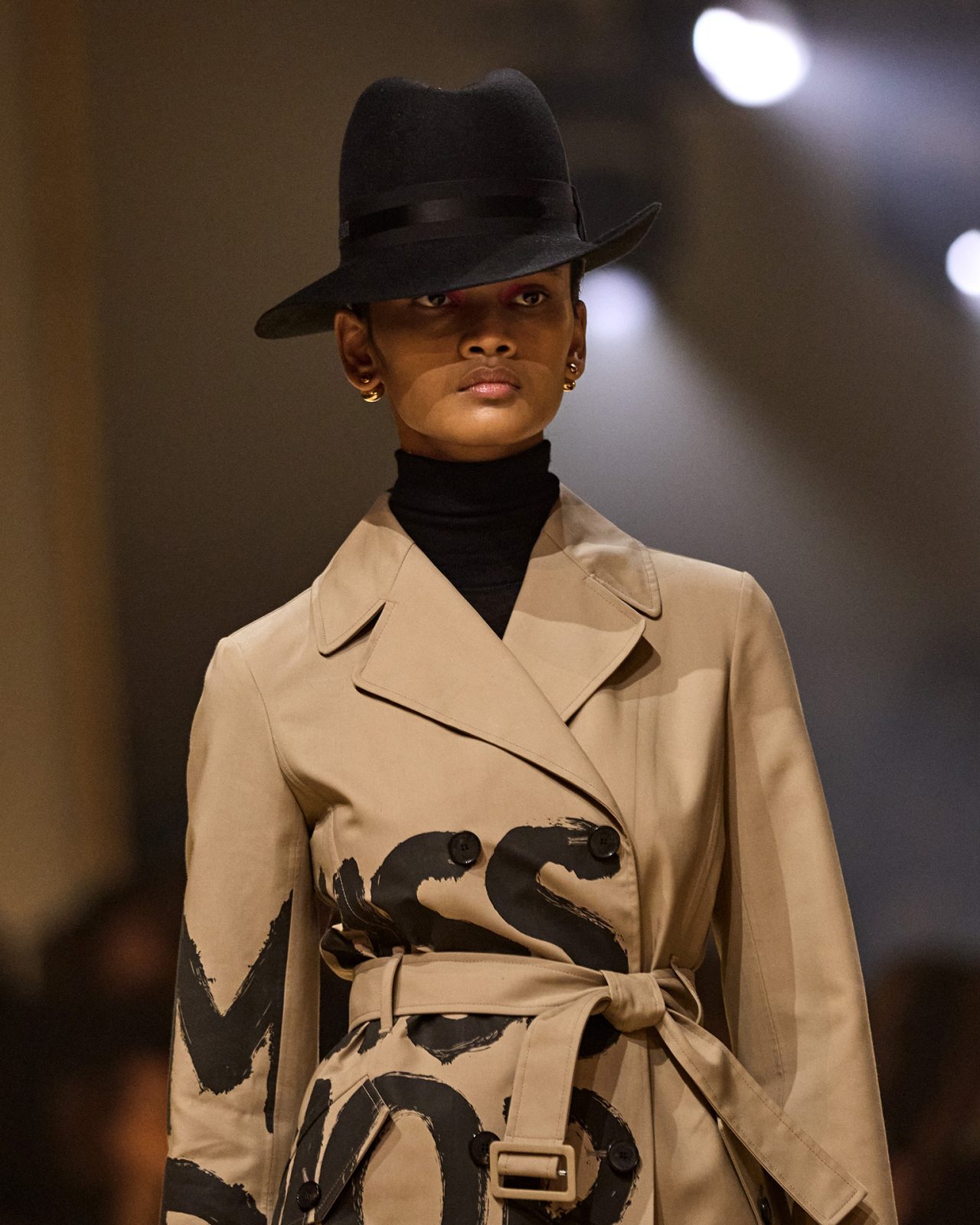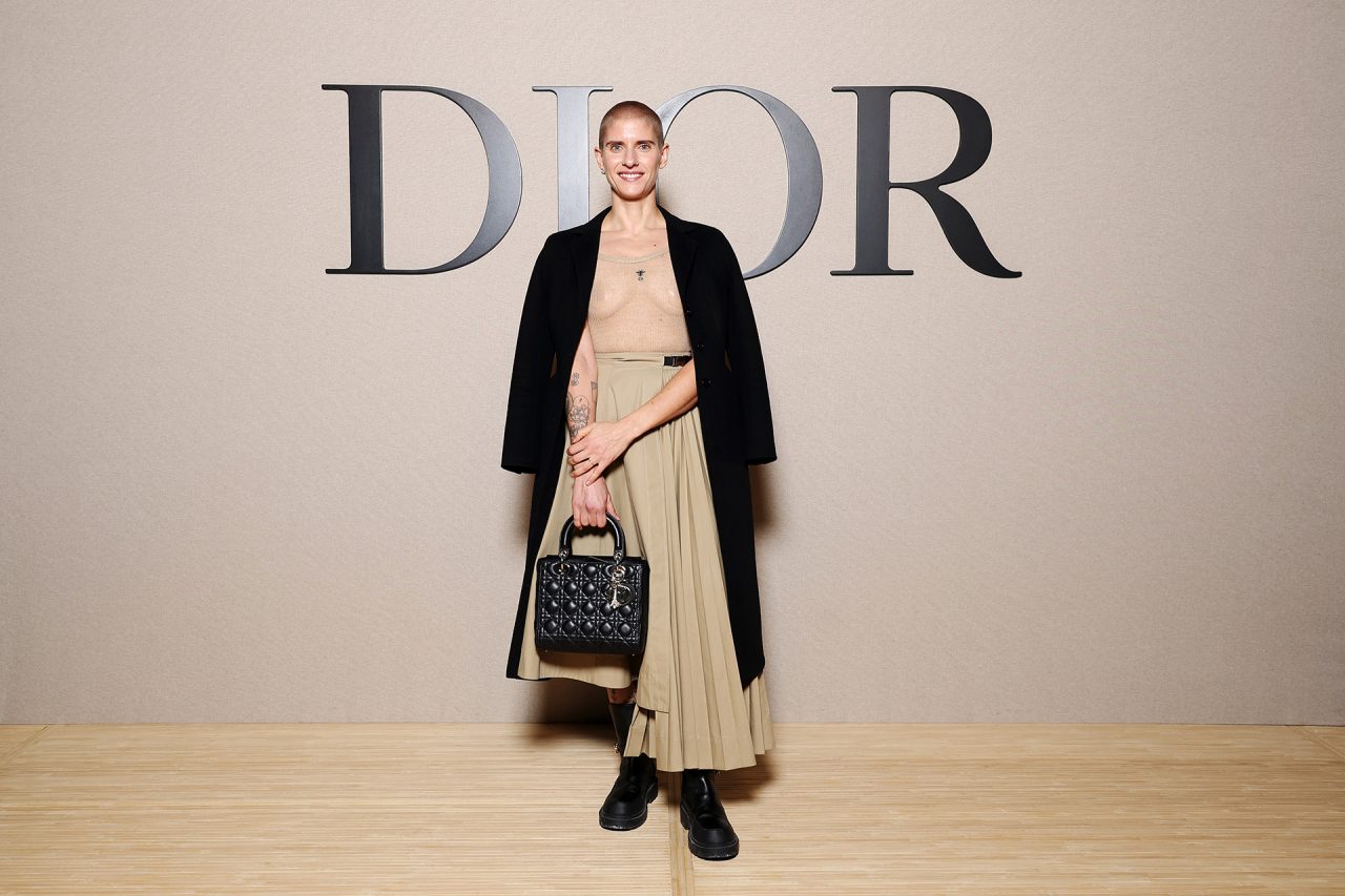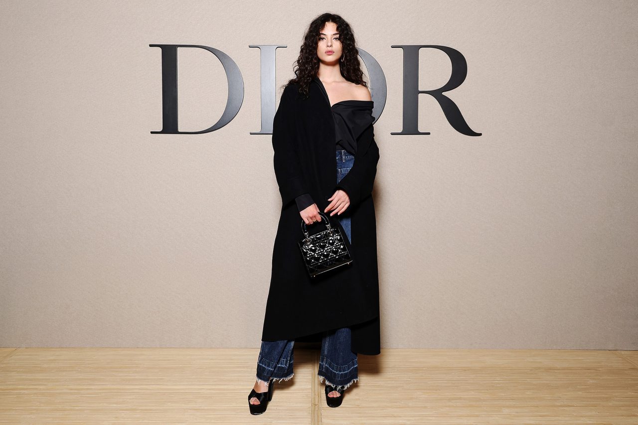 闘志をかき立てるように響き渡る打楽器の音色とともにショーは幕を開けた。冒頭にはベージュのギャバジン素材のトレンチコートやパンツスーツなどが登場。マスキュリンなアイテムを、流れるような質感とゆったりとしたシルエットでモダンに再解釈した。さらに本コレクションでひときわアイコニックだったのは、大胆な Miss Dior ロゴが入ったアイテム。手書き調の大きなロゴは街中のグラフィティペイントを思わせ、どこか挑戦的な雰囲気を放っている。