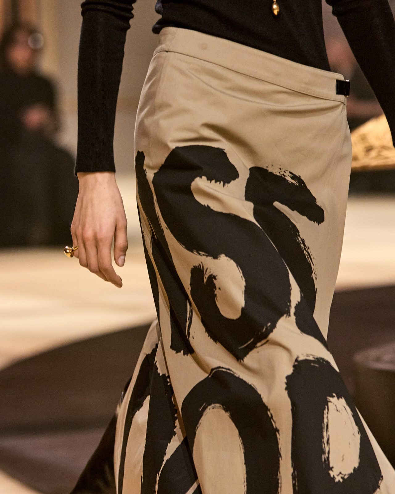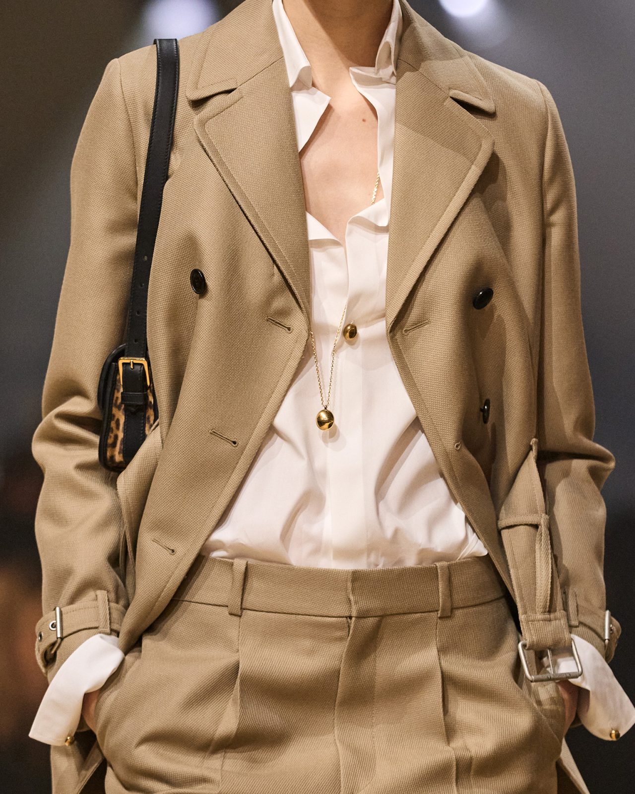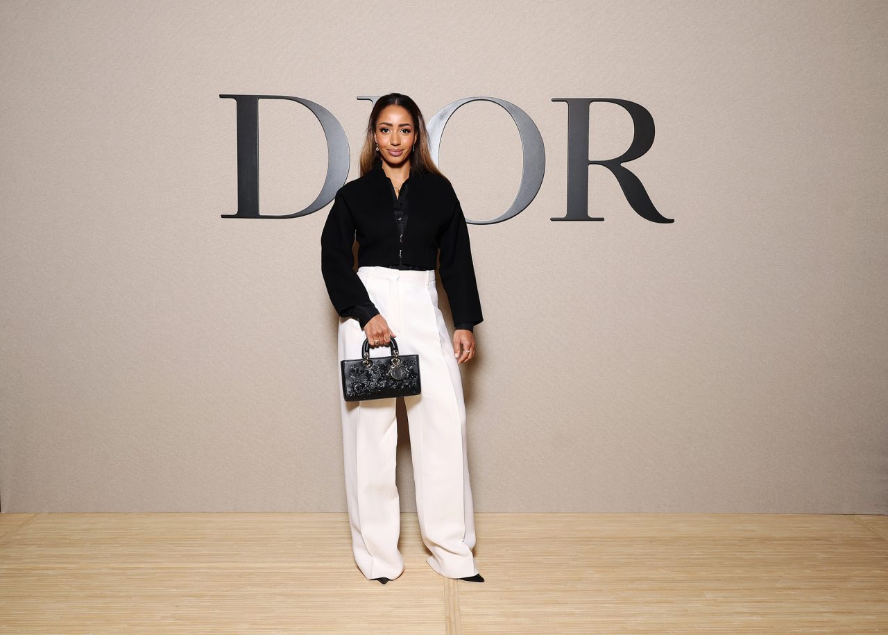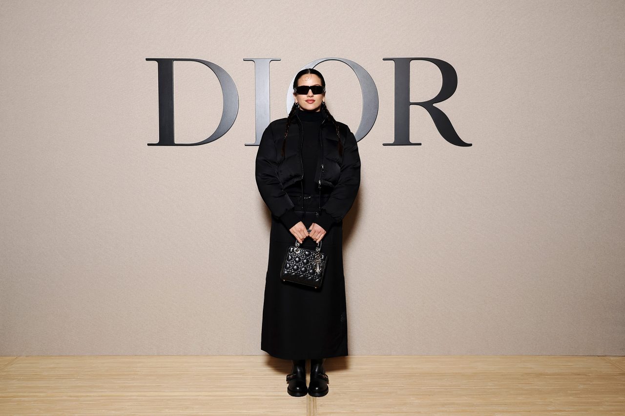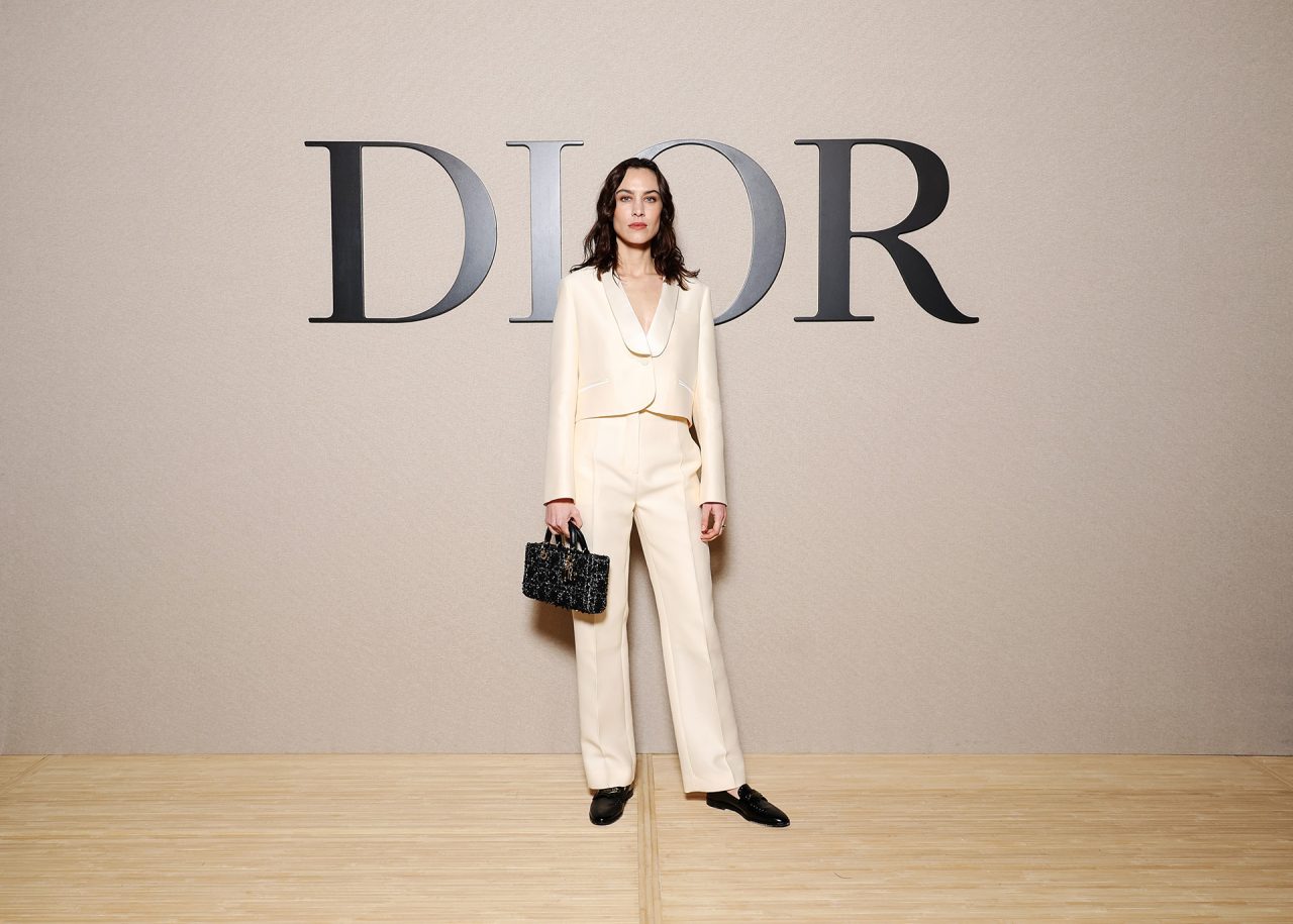 闘志をかき立てるように響き渡る打楽器の音色とともにショーは幕を開けた。冒頭にはベージュのギャバジン素材のトレンチコートやパンツスーツなどが登場。マスキュリンなアイテムを、流れるような質感とゆったりとしたシルエットでモダンに再解釈した。さらに本コレクションでひときわアイコニックだったのは、大胆な Miss Dior ロゴが入ったアイテム。手書き調の大きなロゴは街中のグラフィティペイントを思わせ、どこか挑戦的な雰囲気を放っている。