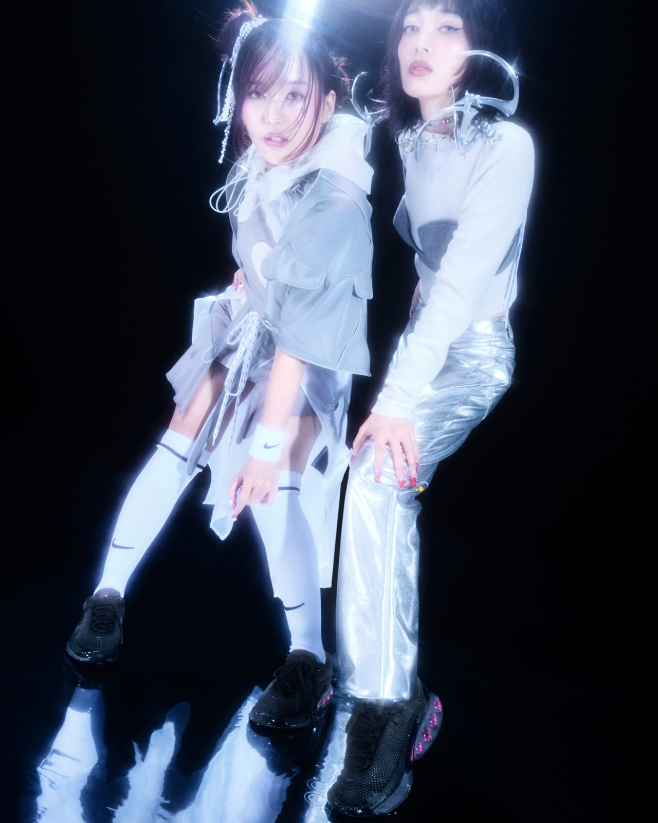 3月26日 (火) の発売を目前に、今回この新モデルをグローバルガールズグループ XG が着用したビジュアルが公開された。メンバーたちが履いているのはブラックのボディにピンクのエアチューブが映える 「オールナイト」 カラー。シルバーを基調としたフューチャリスティックなスタイリングが、 XG のユニークな世界観、そしてエア マックス Dn の異次元の履き心地とマッチしたビジュアルとなっている。