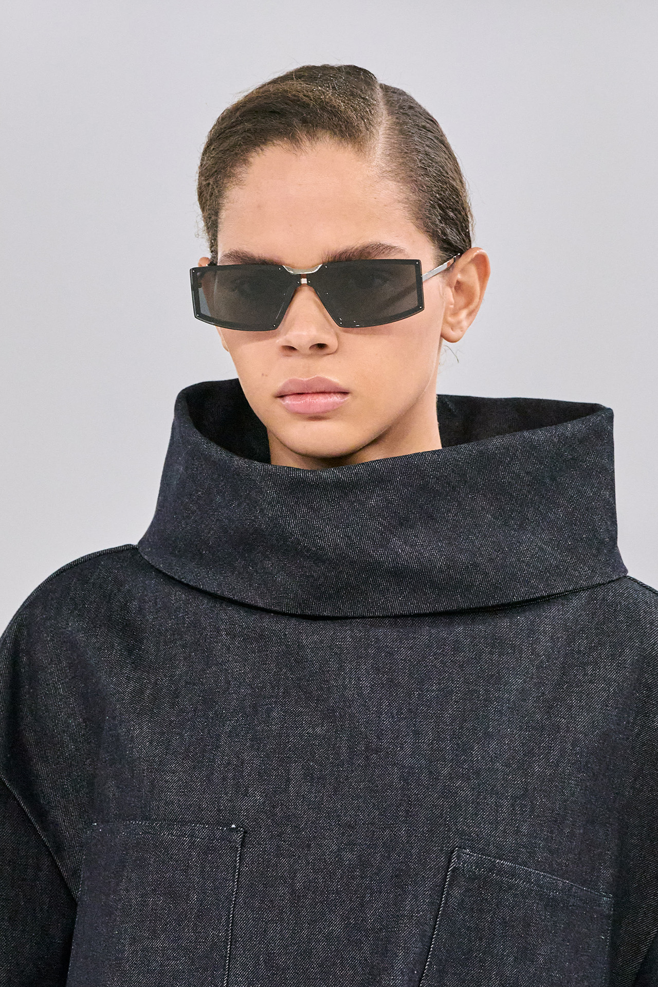 Max Mara が2024年秋冬コレクションで描いたのは、小説家 Colette をインスピレーション源とした、人生を自らコントロールできる完璧な女性像。唇のふくらみ、首のくびれ、まつげといった Colette の作品に多く含まれる官能的な要素と、女性ならではの美しさ、そし彼女が好んで着ていたとされる男性のような格好を取り入れ、洗練されたクラシックスタイルを確立した。カラーパレットは、「ワインの鑑定家がいるように、ブルーの鑑定家もいるの」という彼女の発言を引用し、深みのあるネイビー、漆黒、スモーキーグレーに統一。動くと柔らかくなびくドレープや布に生まれる陰影が、Colette のディテールにこだわった感情表現を体現している。