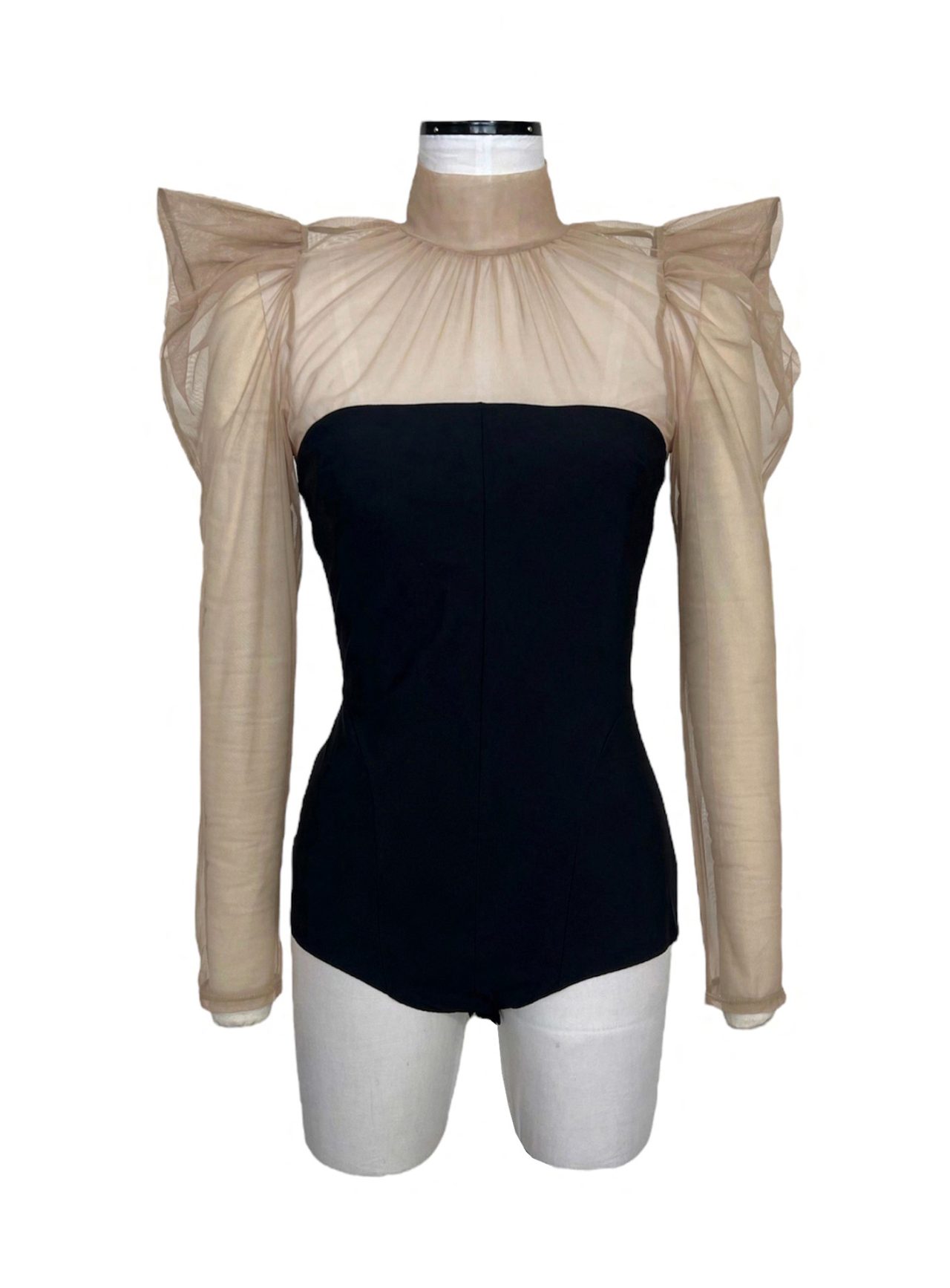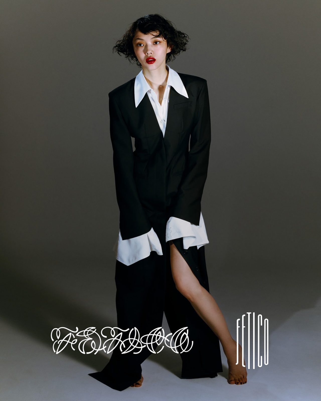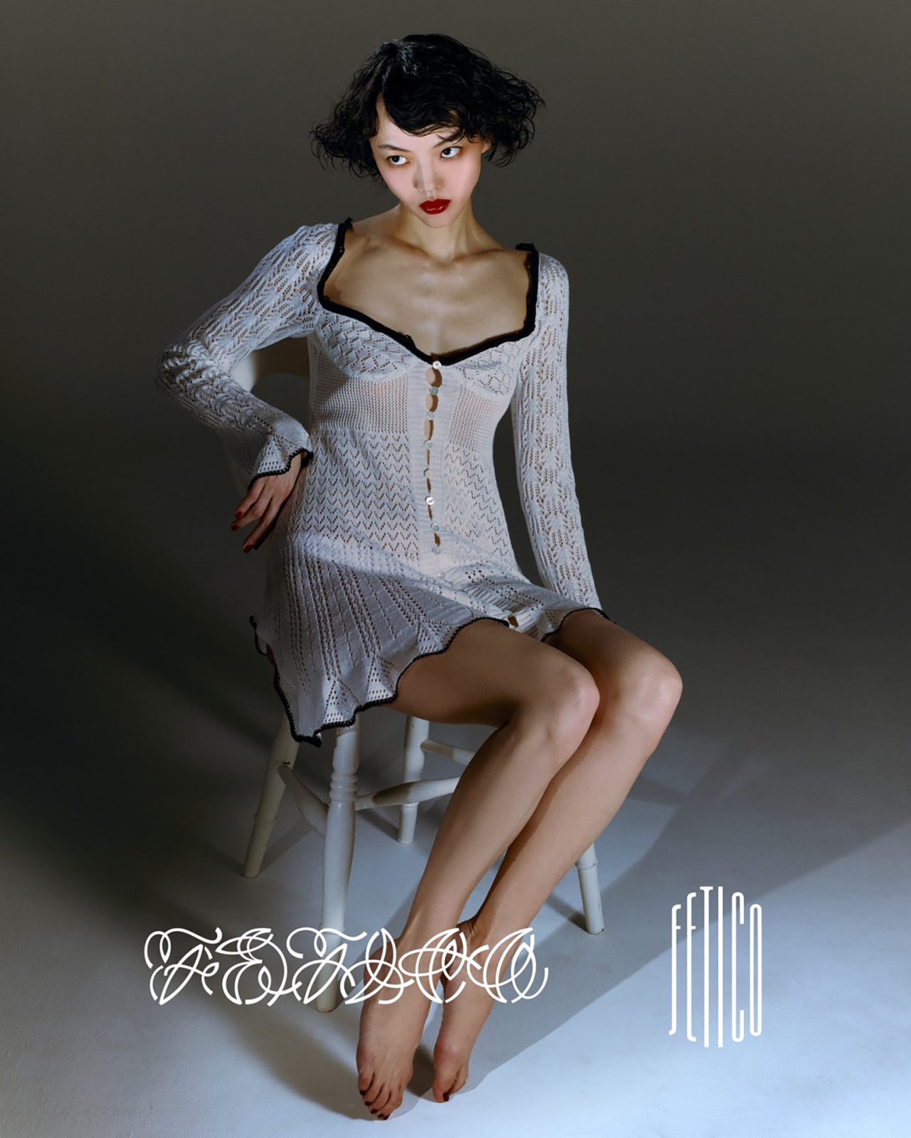 さらに、ブランドのアイコニックなボディースーツの新作2型も発売される。TULLE GATHERED BODYSUIT はシアー感の美しい繊細なチュールを使用しており、胸元のギャザーと立体的なパフスリーブがアクセント。カラーは、ブラックとブラック × ベージュの2色を展開する。MESH COMBINED VELOUR BODYSUIT はチュール、ベロア、メッシュという3種の異素材の組み合わせで構成されており、インナーとしても着用可能だ。どちらの型も日本国内の繊維産地や職人と協働する FETICO のこだわりが表れたボディースーツとなっている。