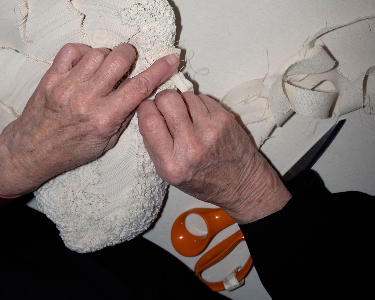 パリでは、スペイン出身アーティスト Luz Moreno Pinart (ルス・モレノ・ピナート) とフランスのテキスタイル彫刻家 Simone Pheulpin (シモーヌ・フェルパン) が互いのスタジオへ。ともに糸や布を使用した作品を作ることの多い両者だが、その技法は大きく異なる。実際に制作を行う過程を見学しあい、相手の技術に感嘆の声を漏らした。