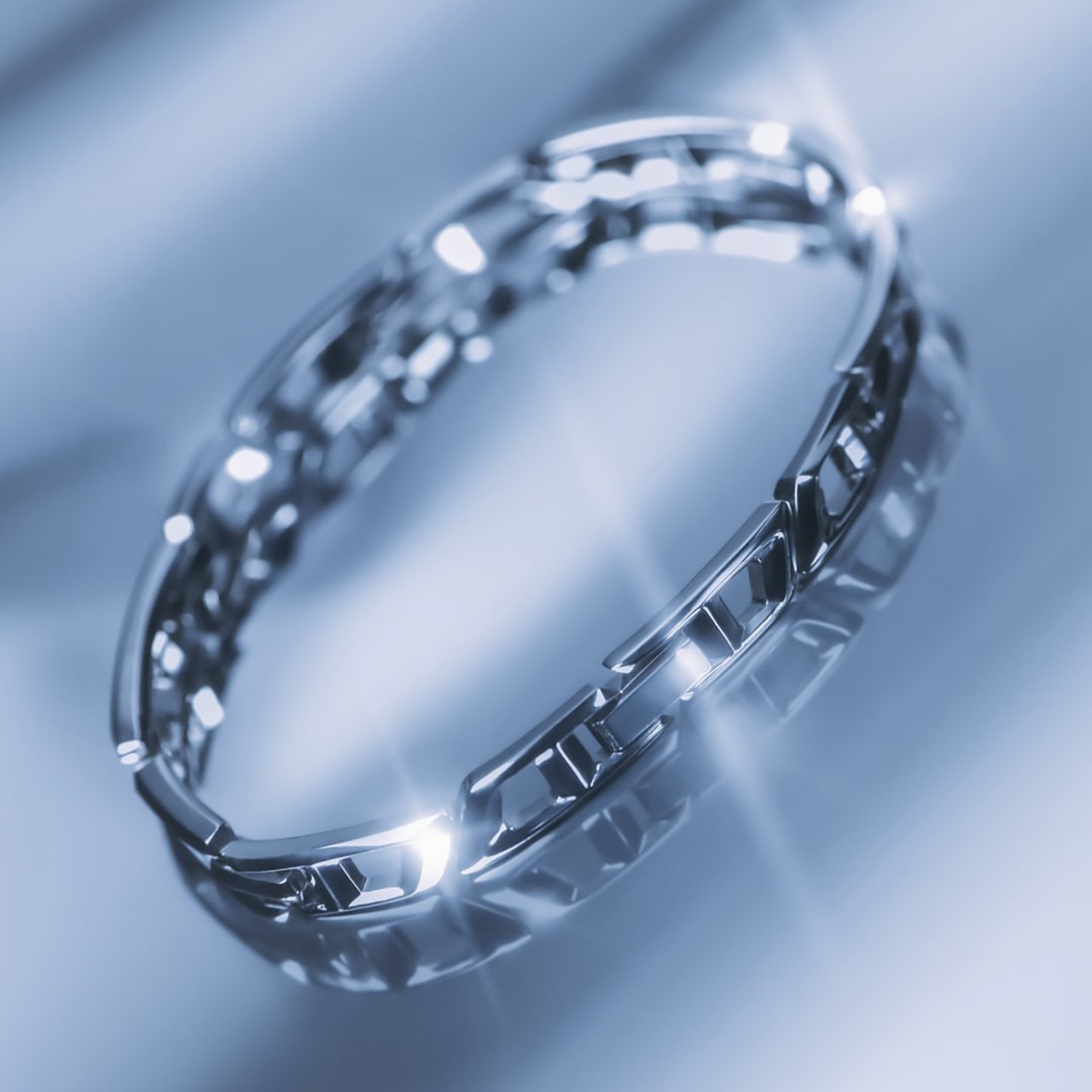 今回 DIESEL から発売されたのは、ユニセックスのスターリングシルバーコレクションだ。スターリングシルバーとは、銀の含有率が92.5%で、残りの7.5%を銅が占める合金のこと。「sterling = 価値のある、本物の」という形容詞が示すように、純銀に近い白く明るい輝きが特徴である。