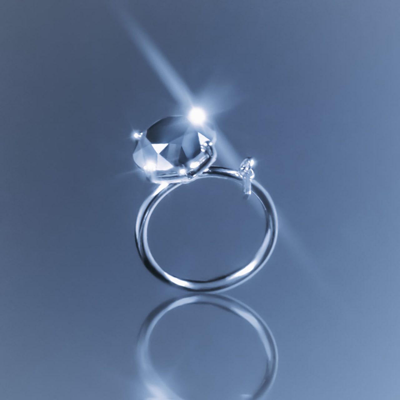 「DIAMOND」は、スターリングシルバーにブリリアントカットを施すことでダイヤモンドに見立てた遊び心のあるシリーズ。7つのファセット (研磨面) を持つシルエットはエレガントだが、メタリックな質感がモダンな雰囲気を放つ。リング、ピアス、ネックレス、ブレスレットの4アイテムが展開されており、すべて D ロゴの入ったタグが揺れるデザインとなっている。
