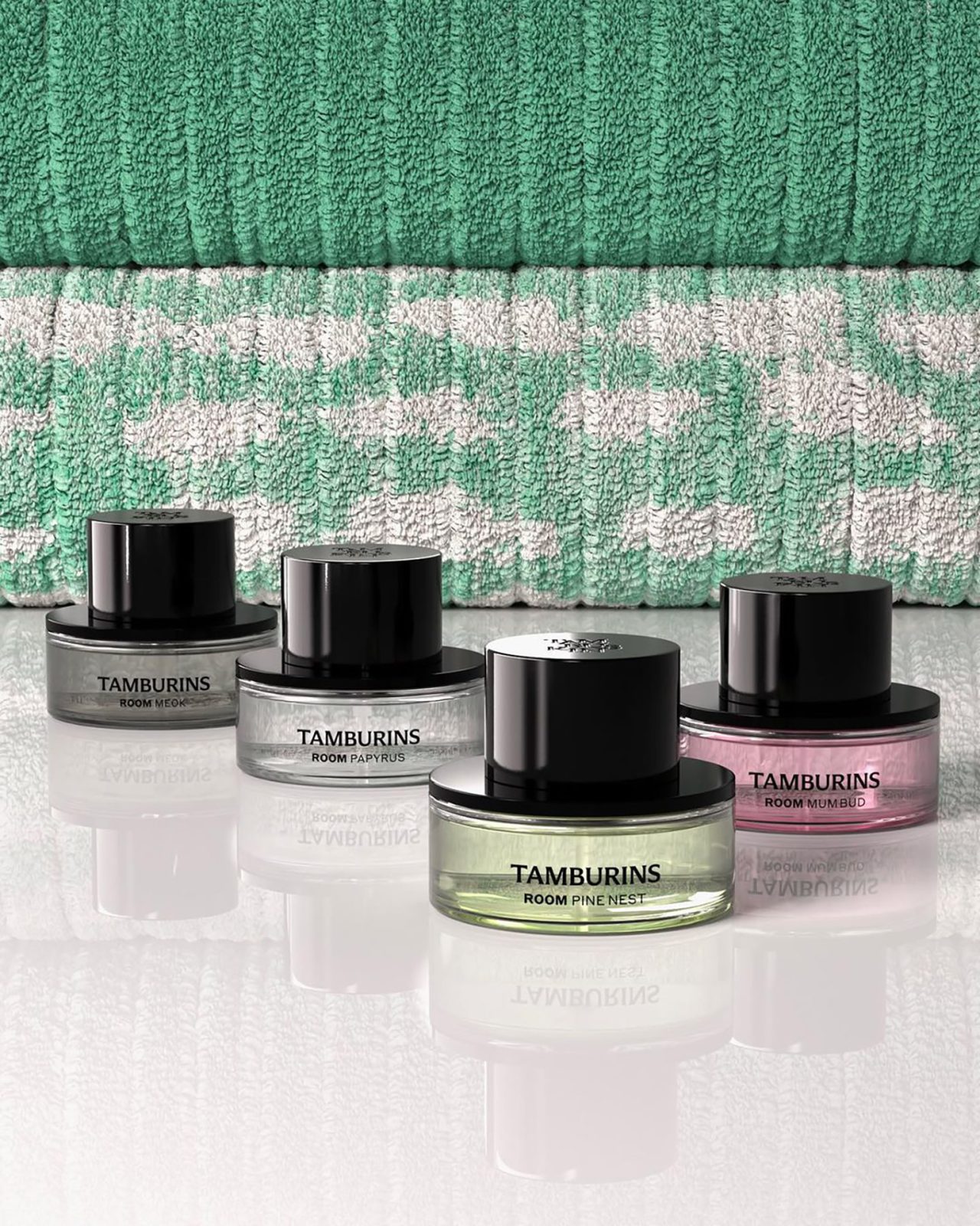 TAMBURINS は、新たにホームフレグランスラインを発表した。今回は、4つの香りのルームスプレーとディフューザーを展開。硯の上でゆっくりと墨を磨るシーンを連想させる「MEOK」、雨上がりの軒先にできるしずくをイメージした「PINE NEST」、柔らかな色合いの白い紙をイメージした「PAPYRUS」と晩秋の寒さの中でたくましく咲く菊を思い描いた「MUM BUD」の香りが登場する。曲線フォルムが美しいディフューザーと、香水ボトルに入ったかのようなルームスプレーは、TAMBURINS 東京青山フラッグシップストアにて2024年4月12日(金) より発売。なお、ルームスプレーは、公式オンラインストアでも発売される。