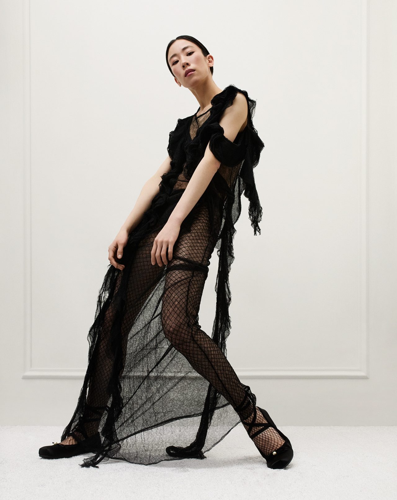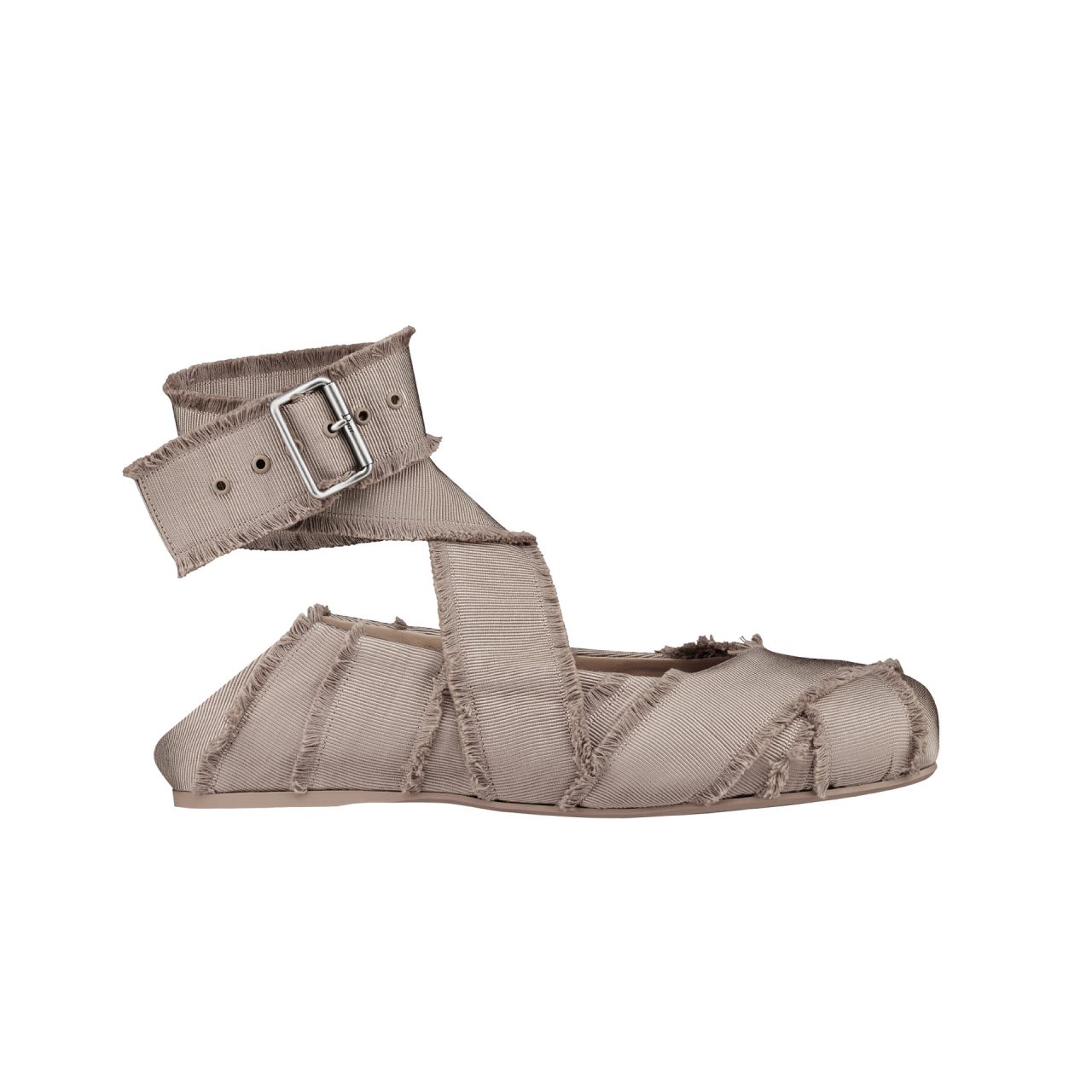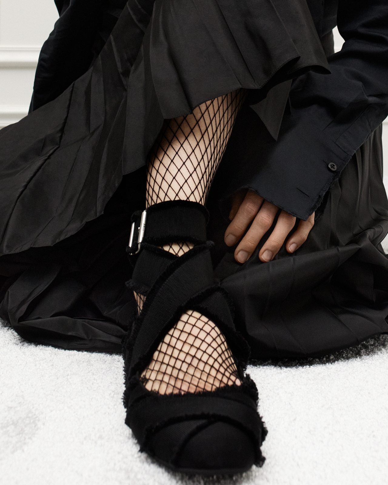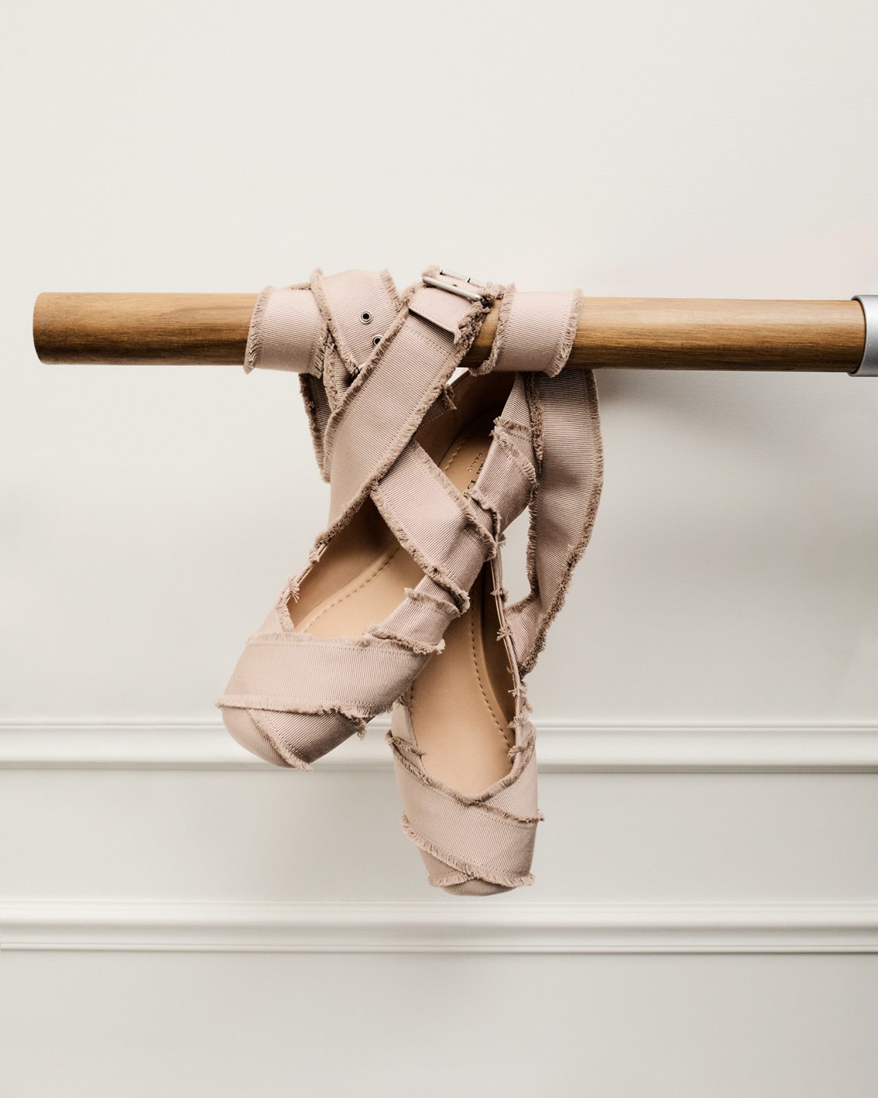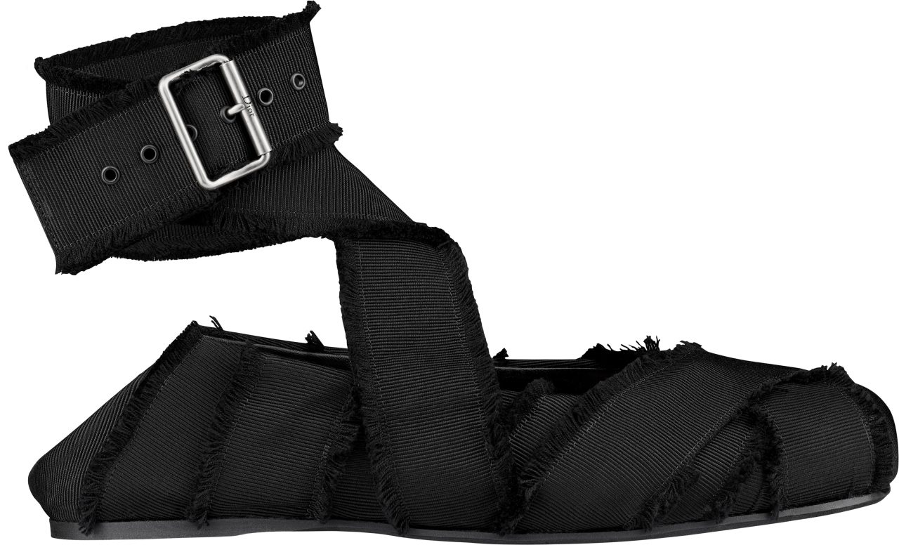 クラシックバレエは Maria Grazia Chiuri (マリア・グラツィア・キウリ)、そして創設者 Chirstian Dior (クリスチャン・ディオール) が情熱を注いできた芸術表現のひとつ。2024年春夏コレクションで発表されたバレリーナシューズ2型は、バレエの多面的な美しさを讃えたものである。サテン素材の「D-ジョイ」にはレジンパールと繊細なリボンが施され、取り外し可能なシューレースに「CD」の文字があしらわれた。「ディオール ソンジュ」はフレイド仕上げのグログランリボンを使用しており、メゾンの卓越した技術とともに、きらびやかなだけではないバレエの美しさが感じられる。
