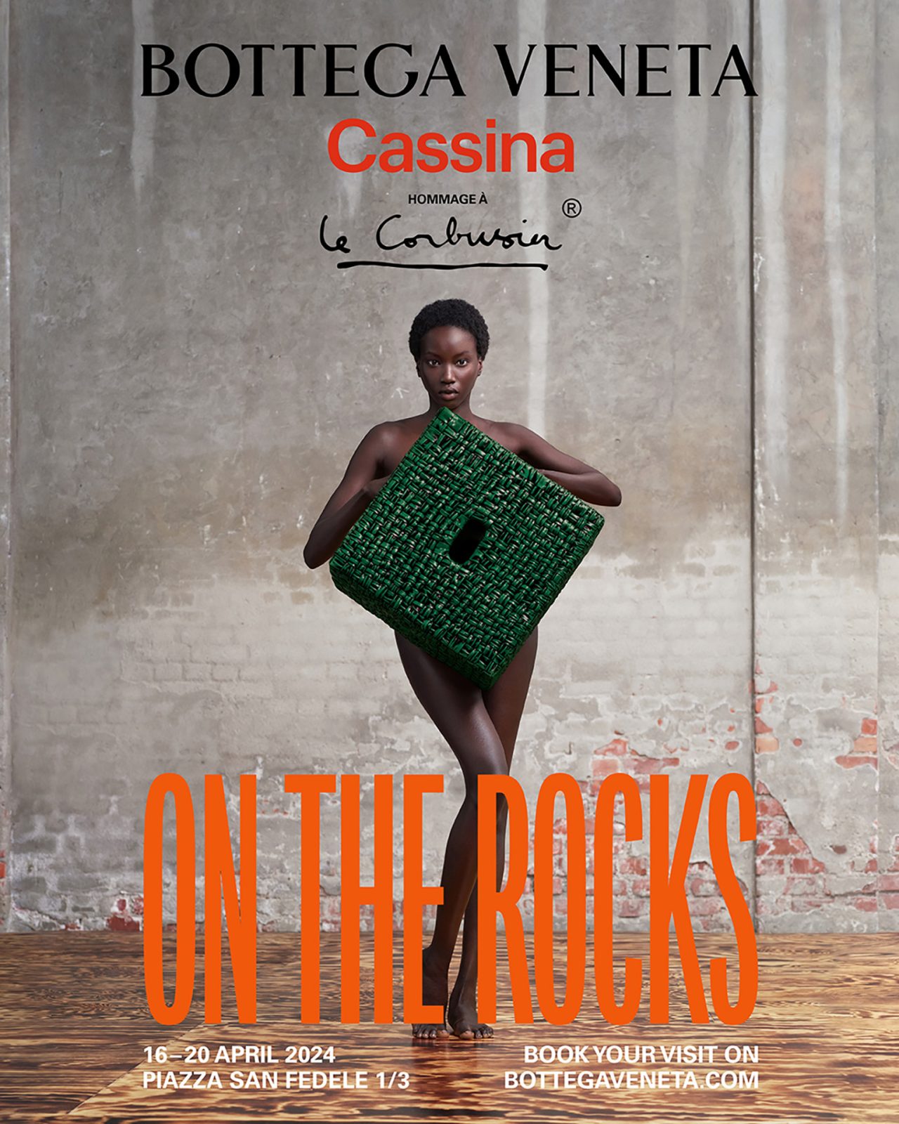 毎年4月にミラノで開催される Milan Design Week (ミラノデザインウィーク) において BOTTEGA VENETA (ボッテガ・ヴェネタ) は、イタリアのモダン家具を代表する企業・カッシーナ社ならびにル・コルビュジエ財団と提携し、インスタレーション「On the Rocks」を発表した。フランスで活躍した建築家 Le Corbusier (ル・コルビュジエ) の代表的なスツールをフィーチャーした展示となっている。