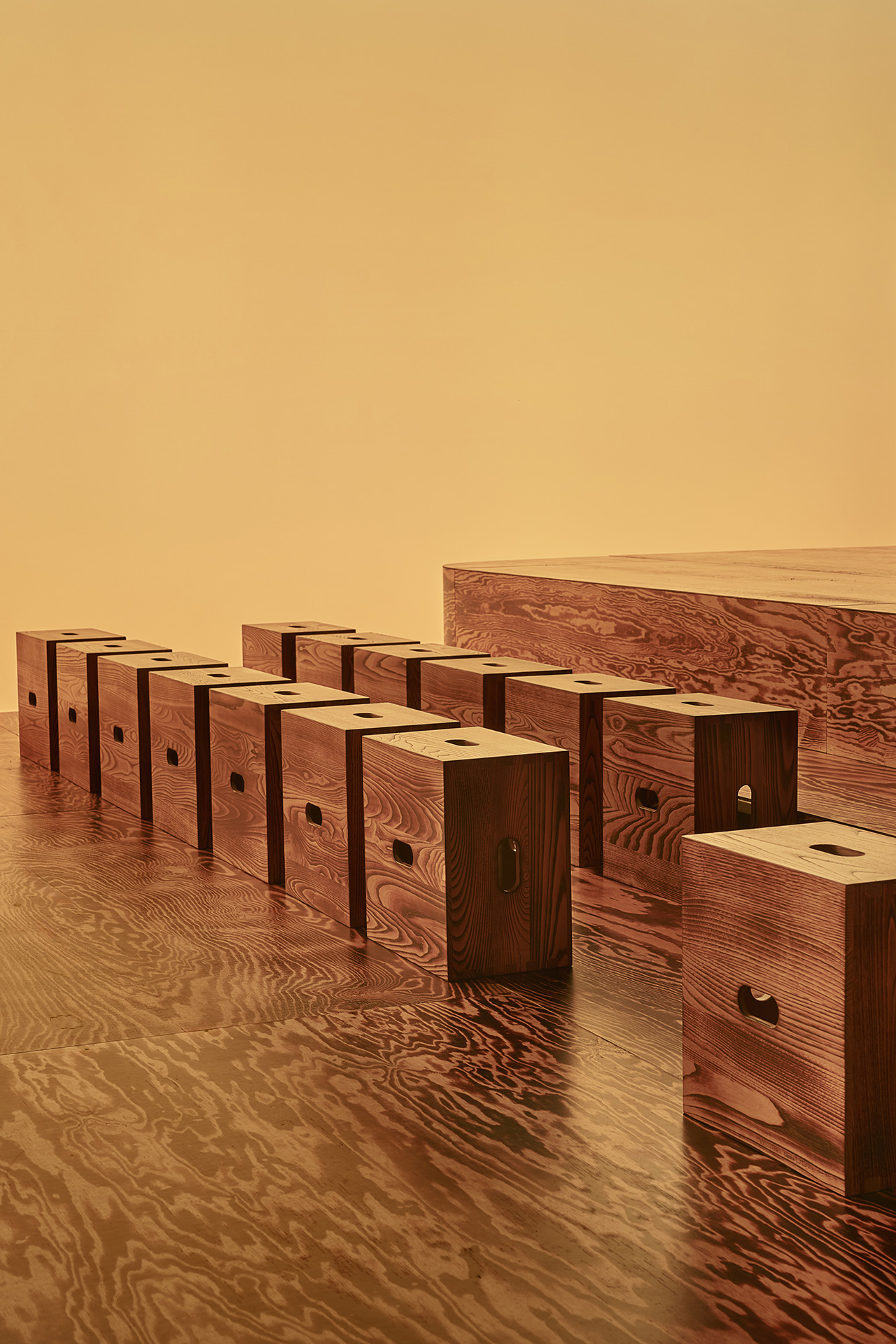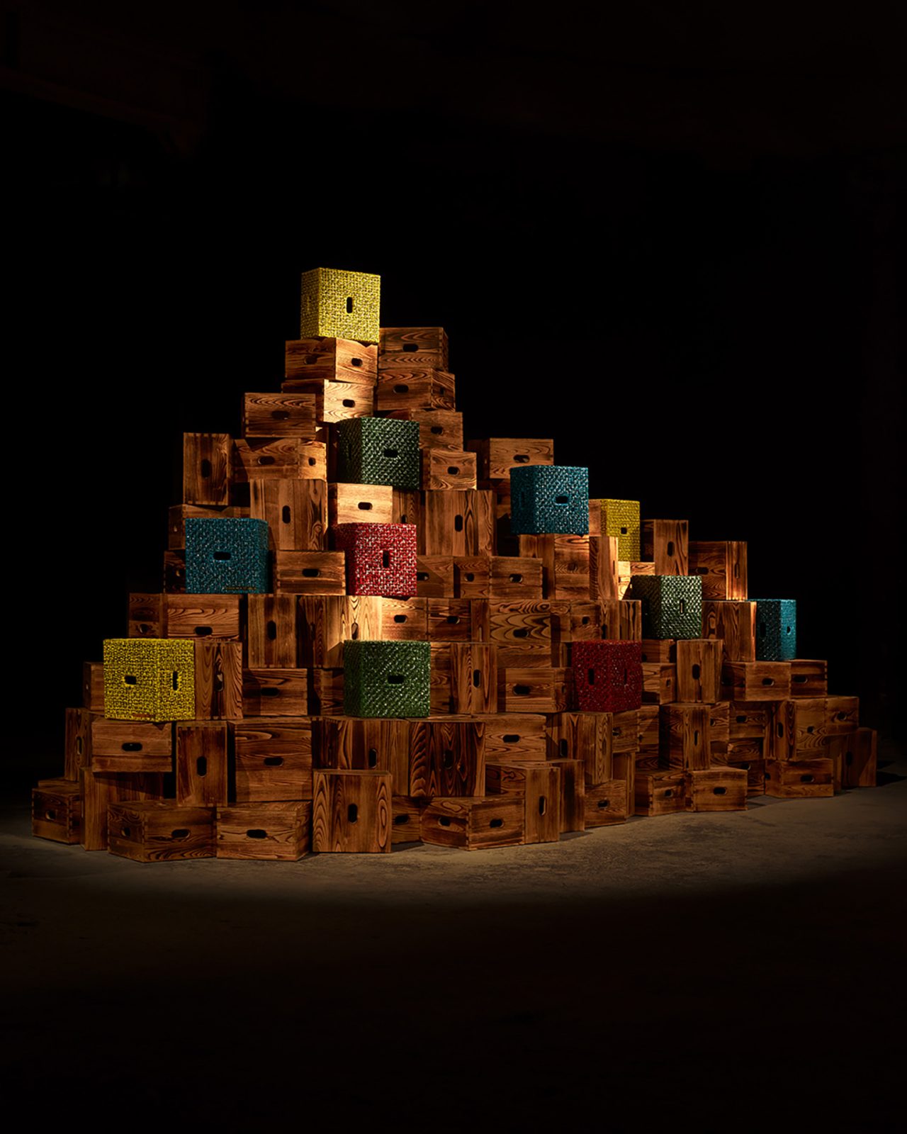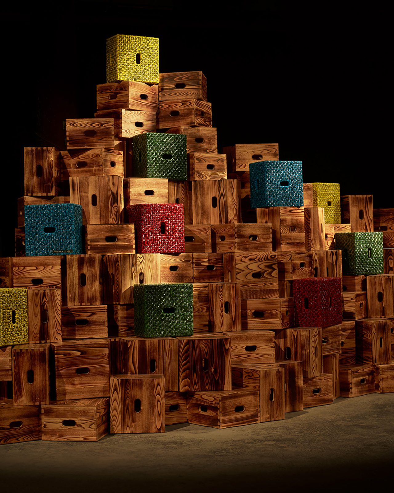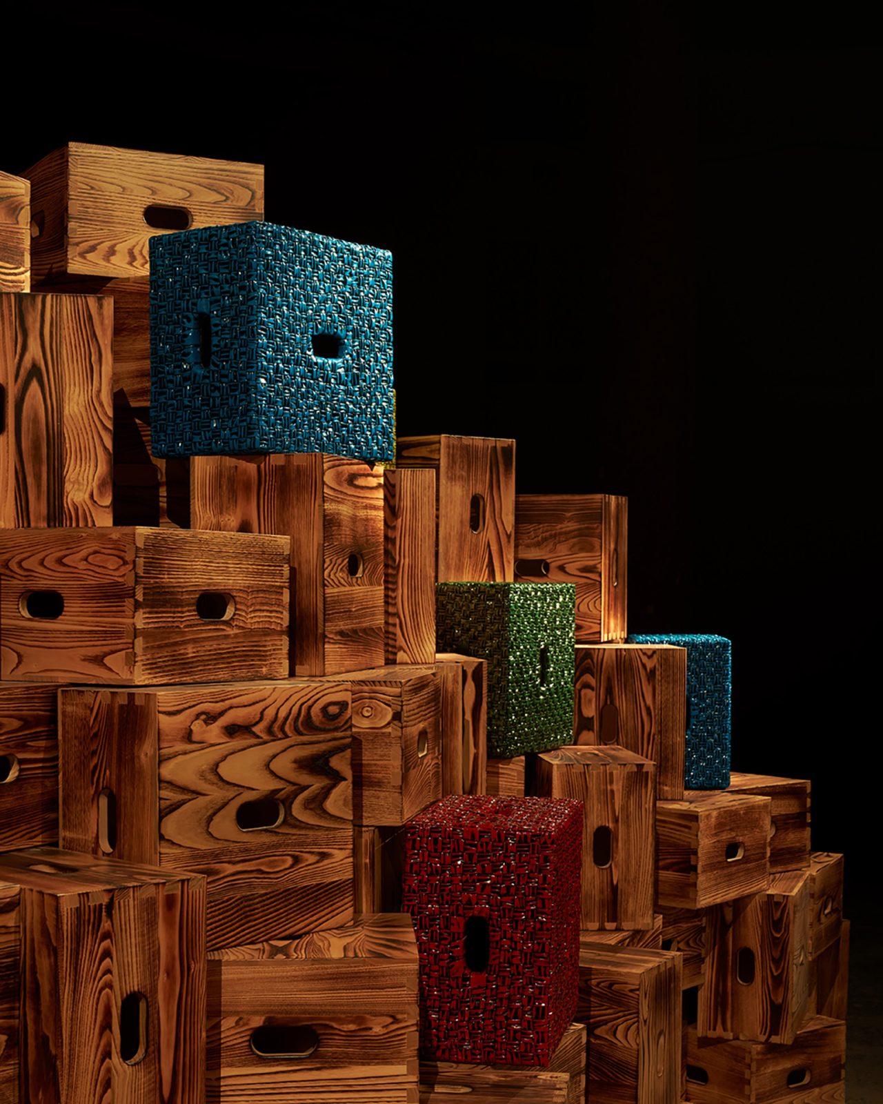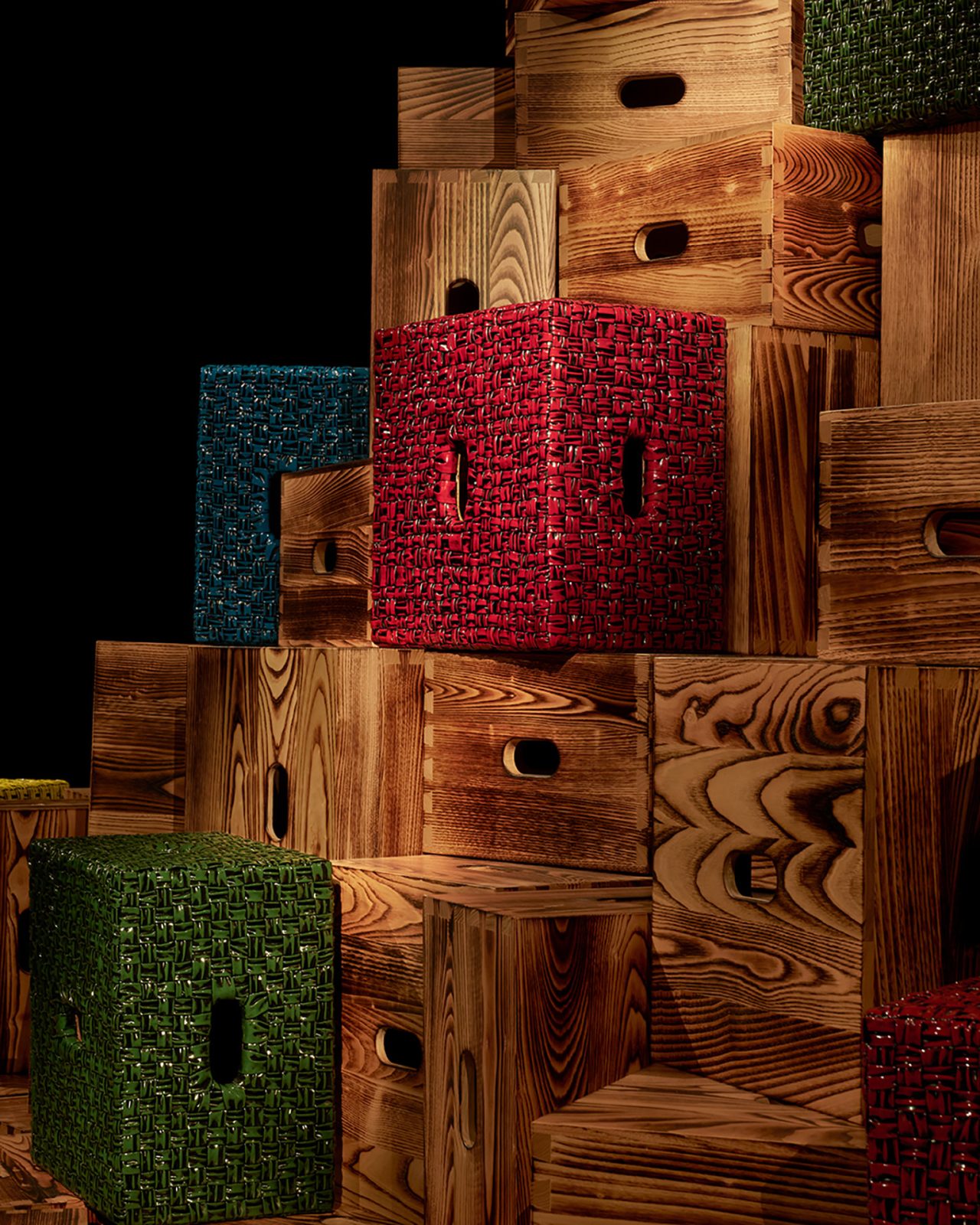 今回 BOTTEGA VENETA が参加したミラノデザインウィークは、世界最大規模の家具見本市。イタリアが誇るデザインの祭典で、職人技術やクラフツマンシップが光る、ブランドならではのインスタレーションが披露された。LC14 タブレ カバノンは、ル・コルビュジエがロクブリュヌ・カップ・マルタンにある自身の小屋のためにデザインしたスツール。浜辺に打ち上げられたウイスキーの木箱からインスピレーションを得て制作され、そのミニマルな見た目がタイムレスな魅力を放ち、時代を超えて愛されている。本インスタレーションでは、シンプルなスツールを等間隔に並べることで、ル・コルビュジエのデザインの美学と、カッシーナ社の木工アトリエによる優れた技術を際立たせた。インスタレーション「On the Rocks」は、4月16日(火)から4月20日(土)まで展示される。