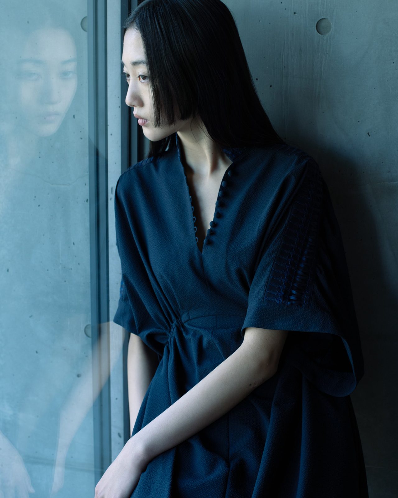 2021年に伊勢丹新宿との共同プロジェクトとして誕生した Mame Kurogouchi のホリデーコレクション。今回はアシンメトリーのデザインが印象的な Draped Dress、刺繍で繊細な柄をあしらった Lattice Pattern Dress、ペプラム調のデザインがスタイルアップをかなえる Double Jersey Peplum Dress、A ラインに広がるシルエットが愛らしい Double Jersey Cap Sleeve Dress がお目見え。4型すべてブラックとネイビーの2色が展開されており、一枚着るだけで様になるデザインなのでオケージョンシーンから普段使いまでマルチに活躍してくれる。フォトグラファーの細倉真弓が撮り下ろしたビジュアルでは、ドレスを身につけたモデルがガラスのリフレクションの中で佇む様子が、独特な静けさで捉えられている。
