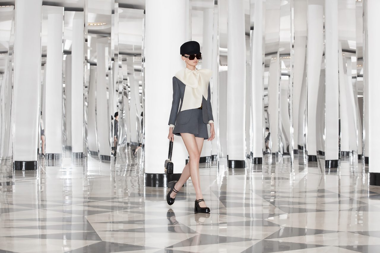 CELINE のクリエイティブ・ディレクター Hedi Slimane (エディ・スリマン) は2024年ウィンターコレクションで、ブランドの歴史にモダンなアプローチで息を吹き込んだ。メゾンの創業者である Celine Vipiana (セリーヌ・ヴィピアナ) が、パリの凱旋門を囲む鎖の輪から着想を得てデザインしたというモノグラムを、現代的に再解釈した新たなシグネチャーロゴ「トリオンフ」が今回のコレクションにも登場。エディ・スリマンの手によって生まれた「トリオンフ」がバッグや帽子に配され、ブランドのエンブレムとして強い存在感を放つ。また、1960年代を振り返り新たに制作されたのは、2ピースのセットアップ。そこにメゾンのベースボールキャップを’60年代風にアレンジしたキャップを合わせることで、クラシックなスタイルに磨きをかけた。