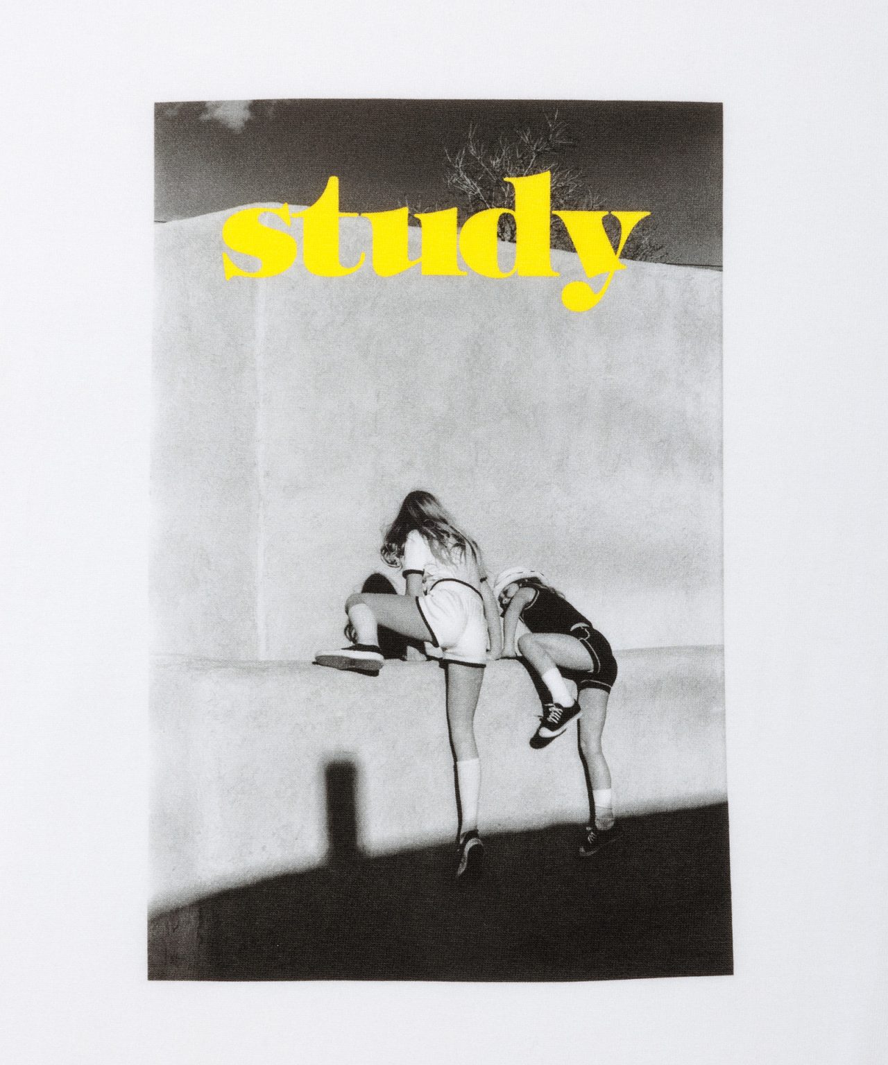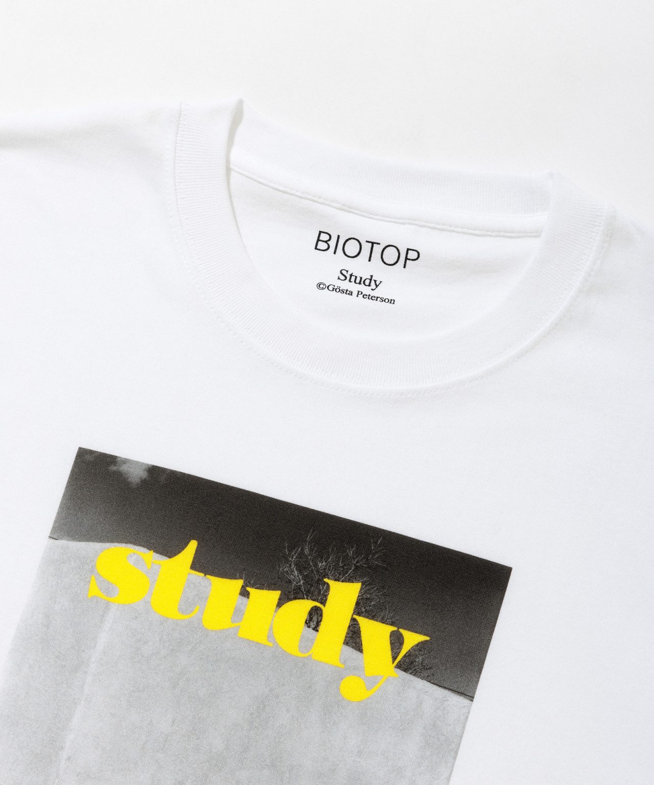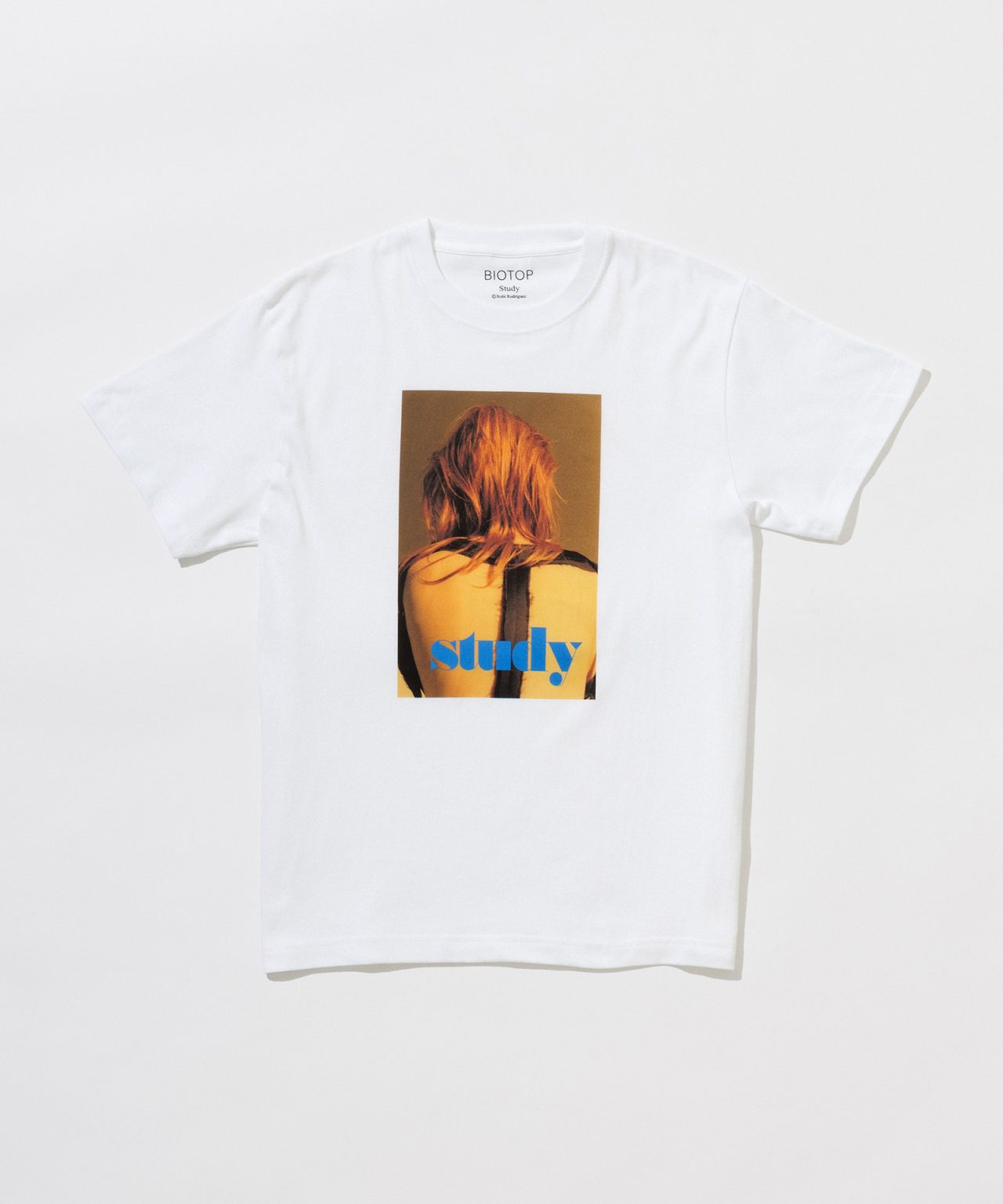 詩情豊かな写真と色鮮やかな「study」の文字の組み合わせが印象的なこの T シャツは、BIOTOP 3店舗とオンラインストア、ADAM ET ROPÉ (アダム エ ロペ) 全店にて手に入れることができる。