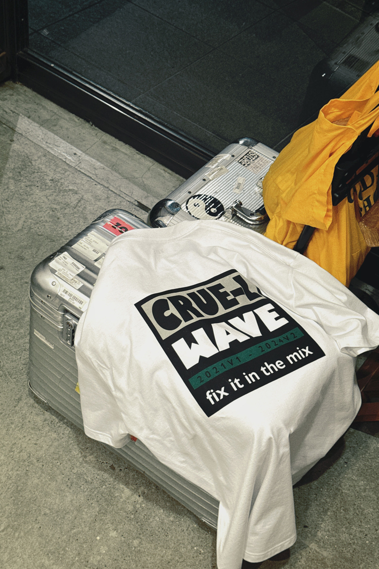 今回新たに登場するのは、レフトフィールドやオルタナティブ・ハウス、ディスコシーンにおけるパイオニアであり、国内外の音楽界に影響力を持ち続けている DJ の瀧見憲司が主宰するレーベル CRUE-L RECORDS とレコードショップ WAVE のコラボレーション第二弾「CRUE-LWAVE II」。CRUE-L のキーワードの一つである「FIX IT IN THE MIX」のグラフィックが施された S/S シャツや T シャツをはじめ、WAVE らしいミニマルなフォントでデザインされた「HOUSE」が胸に入ったロングスリーブ T シャツが揃う。