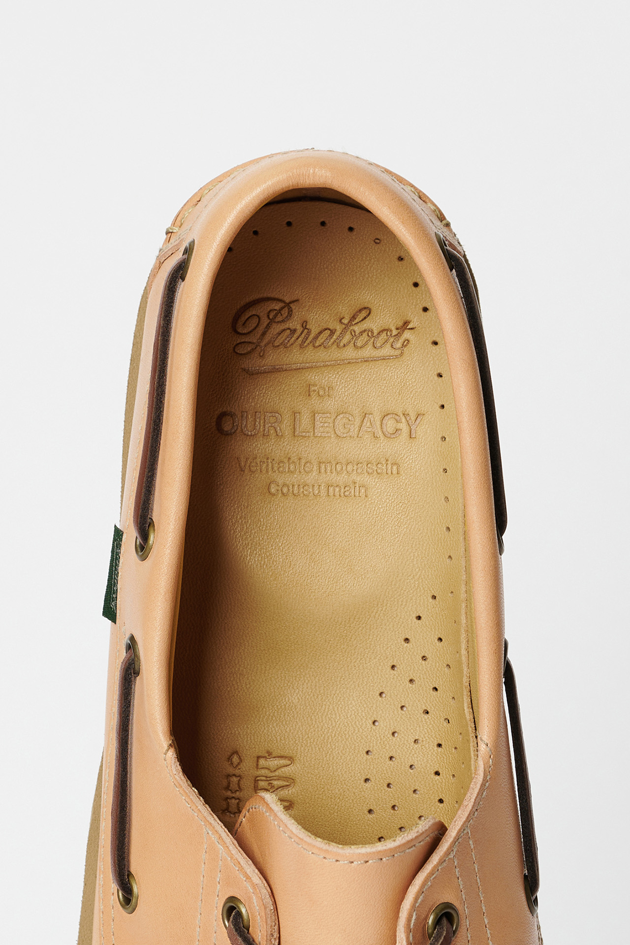 OUR LEGACY (アワー レガシー) が手がけるサステナビリティにフォーカスしたプロジェクト OUR LEGACY WORK SHOP (アワー レガシー ワークショップ) が、老舗シューズブランド Paraboot (パラブーツ) とコラボレーション。WORK SHOP のロゴをあしらったレザーのデッキシューズがお目見えする。