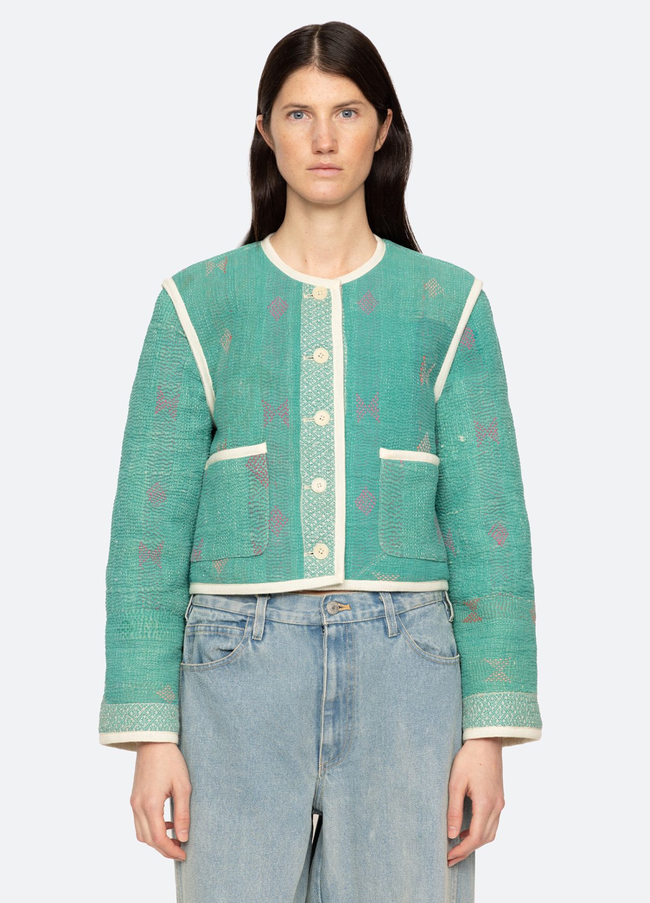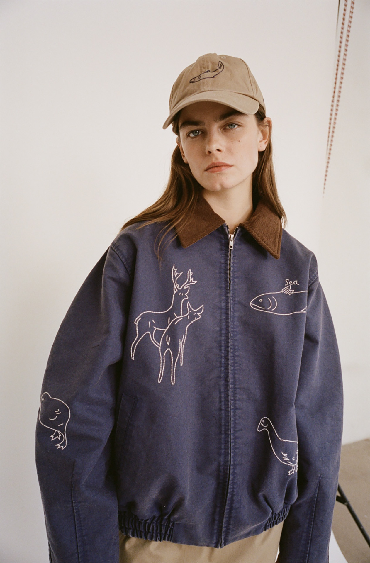さらに、本会場では日本限定アイテムとして、シューズブランド Clarks Originals にカスタムオーダーしたワラビーや、ブランドオリジナル T シャツもお目見え。スウェード素材で作られたワラビーには、ハンドクラフト感のある Sea の文字や動物のイラストを刻印。もう一つの限定アイテムである T シャツには文字が刺繍されており、Sea New York らしいメッセージが込められている。そして、ヴィンテージジャケットも会場限定で販売。インドの伝統的なカンタキルトを用いて製作され、一点物のアイテムと生まれ変わった。限定アイテムをゲットできるこの機会をお見逃しなく。