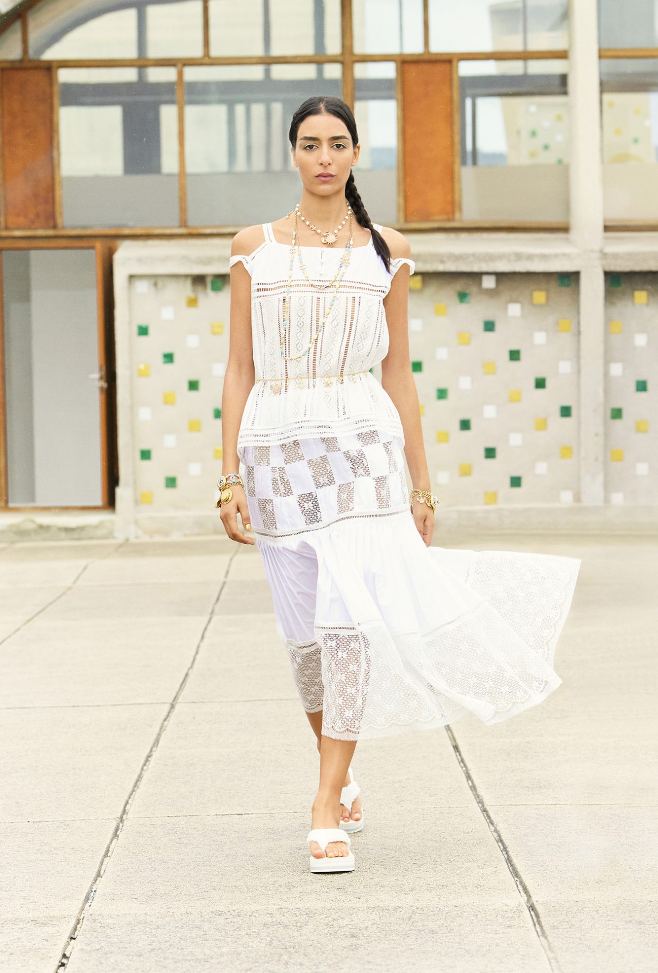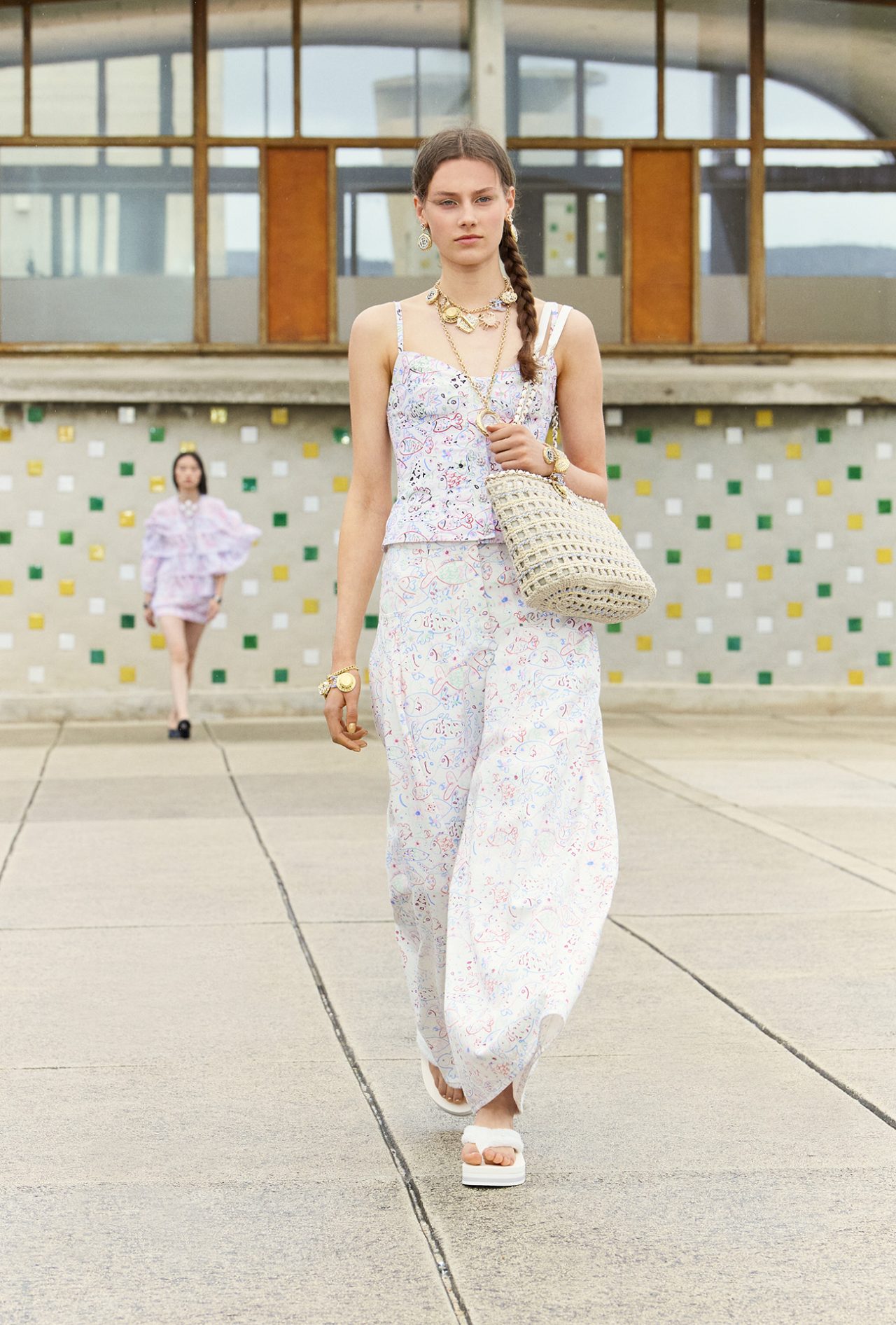 今回ショーの会場に選ばれたのは、「Cité radieuse (輝く都市)」とも呼ばれる集合住宅ユニテ ダビタシオン。南仏の風が吹く屋上庭園で、マルセイユの広い青空の下 CHANEL の最新コレクションが披露された。CHANEL のアーティスティック ディレクター Virginie Viard (ヴィルジニー ヴィアール) は、本コレクションについて「太陽、建築、音楽、ダンスーマルセイユは、大いなる自由に包まれていると感じます。現地の人々の日常にあるライフスタイル、そして動きを誘うあらゆるものからインスピレーションを受けました。また、海や風を感じながら、ウェットスーツを取り入れてみたいと思ったのです」と語っている。