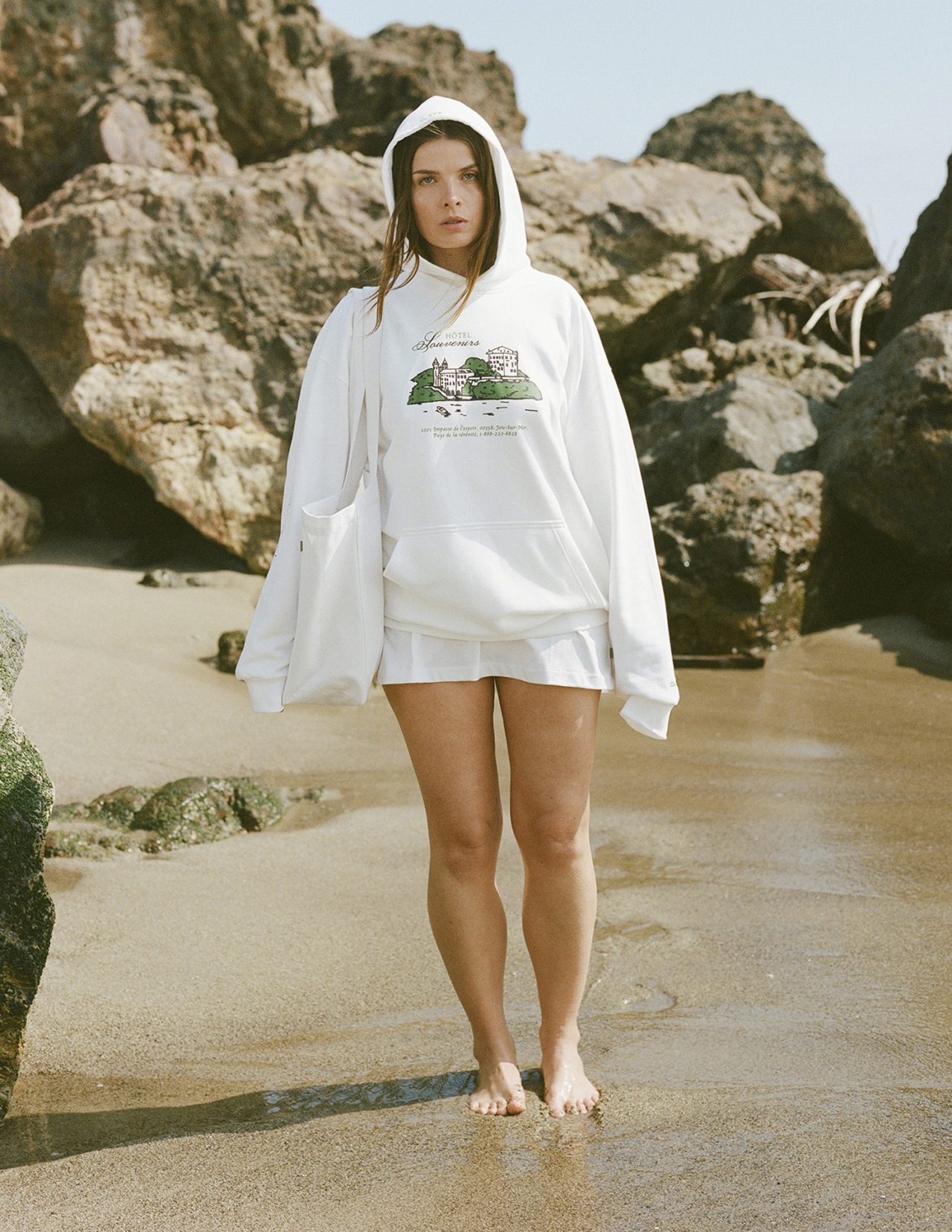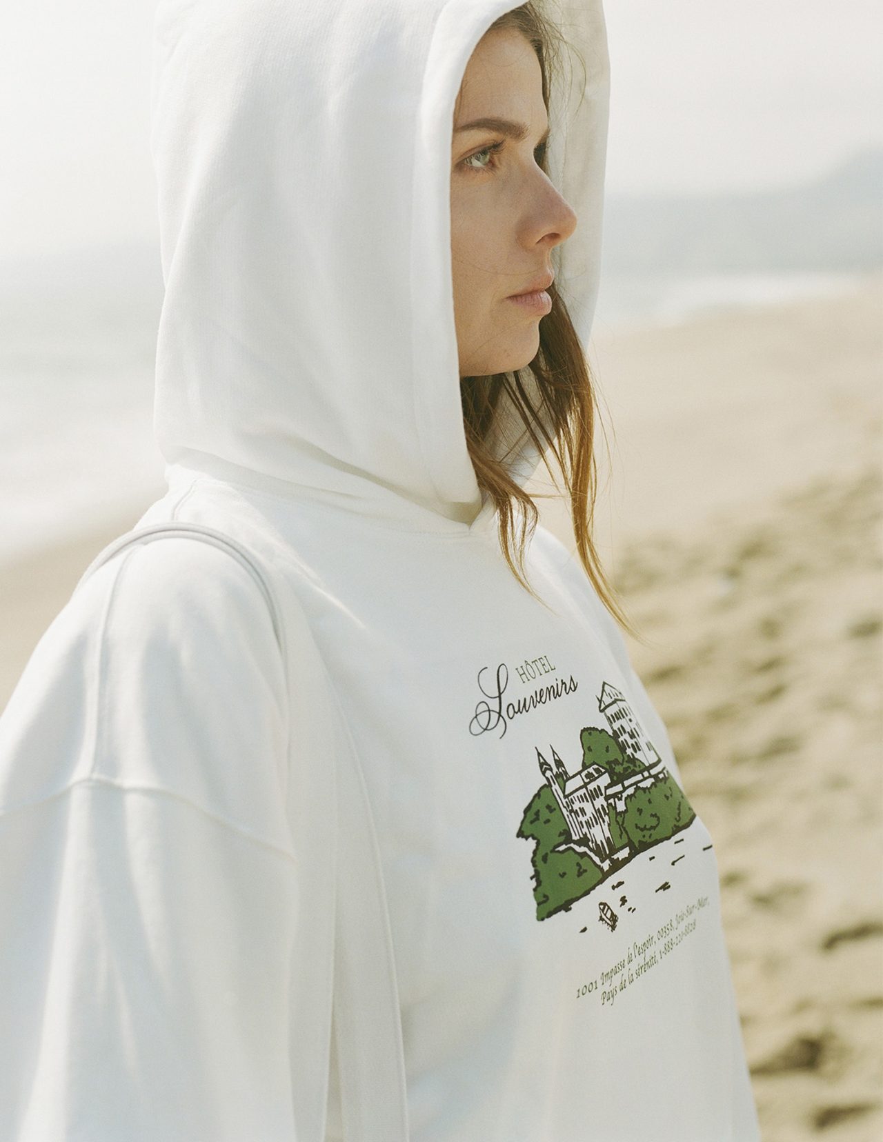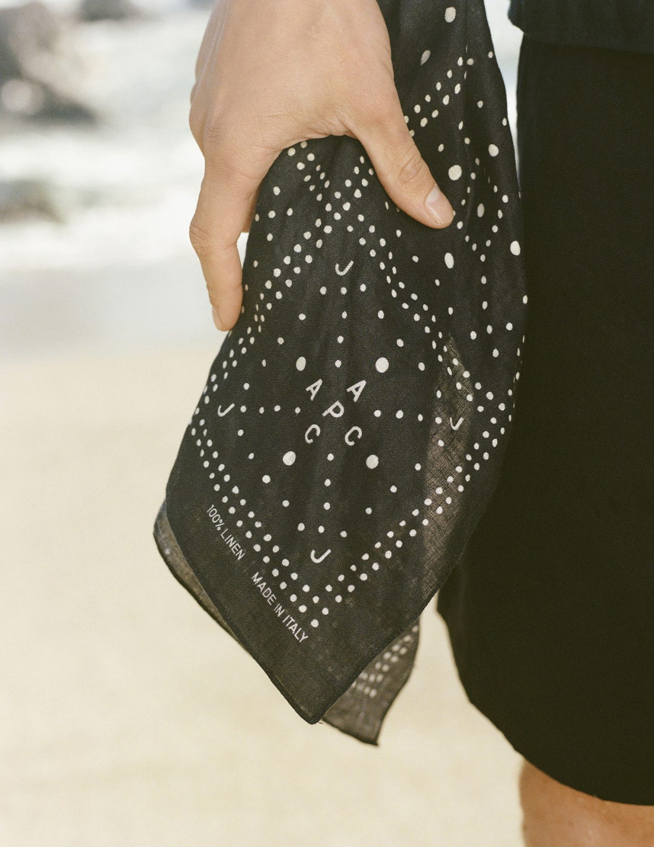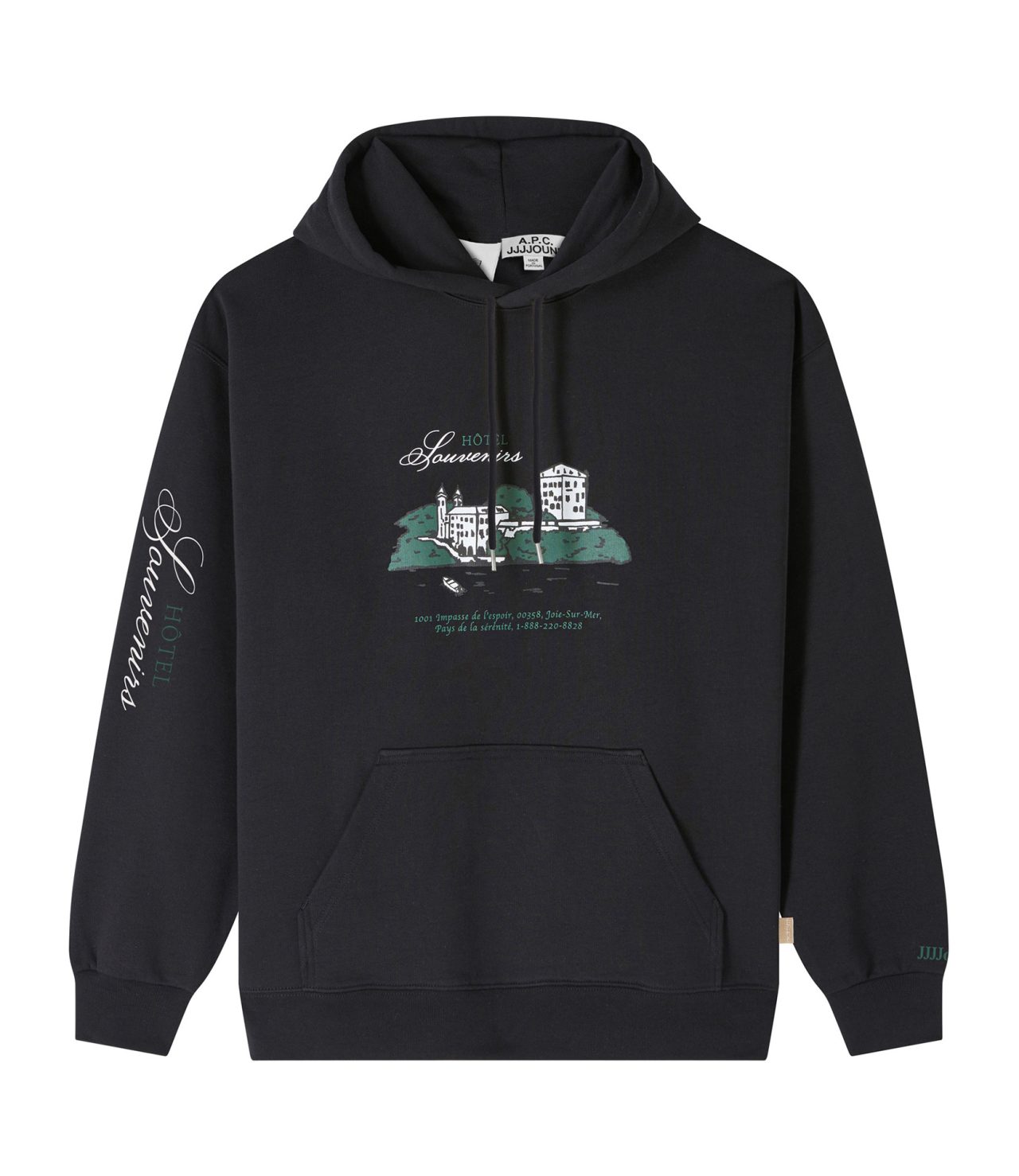 ラインナップは A.P.C. JJJJound の控えめなロゴが施されたダークネイビーのシャツ、スイムショーツ、スカーフと、「l’Hôtel Souvenirs」の文字がプリントされたスウェットシャツ、T シャツ、キャップ、トートバック。グローバルローンチに先駆け、伊勢丹新宿店にて先行販売も行われている。