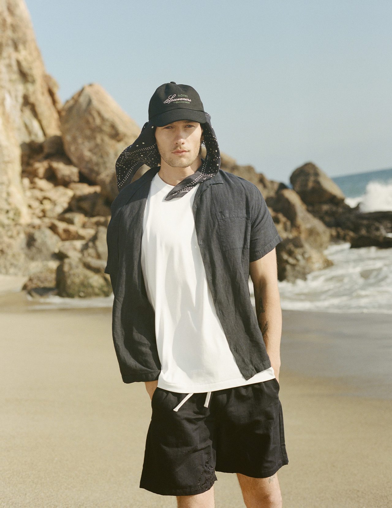 クリエーションの起点になったのは、「バカンスではあまりシックでないものを買ってしまう傾向がある」という分析だ。荷造り中にはエレガントで趣味の良い服を持っていこうと心がけたものの、ホテルのブティックや観光客向けのショップでつい衝動買いしてしまったという経験のある人も多いだろう。今回のコレクションでは「全ての出来事が予想通りに起こるユートピアの世界における『架空のホテル』」をコンセプトに、夏のメンズワードローブの必需品を再考した。