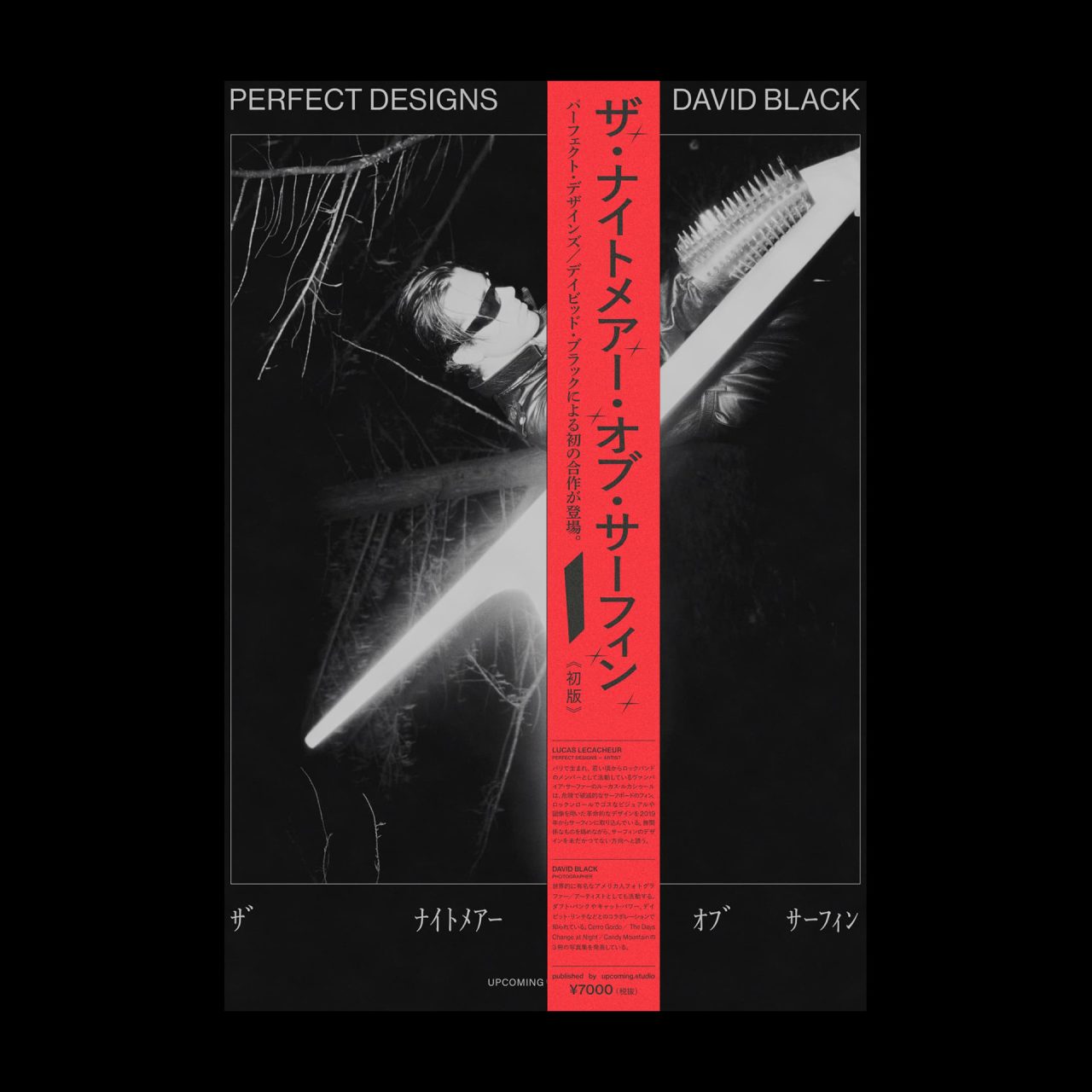 東京のデザインスタジオ upcoming.studio より、Perfect Designs とDavid Black による合作アートブック『Perfect Designs by David Black – The Nightmare of Surfing』 が発売される。本書には、Perfect Designs が手がける、ダークでゴシックなビジュアルのサーフボードや破滅的なフィンなどを、David Black が撮影した写真を収録。1年間かけてパリとロサンゼルスを旅した2人の軌跡が、David の独自のジャンル「ウェスタン・ノワール」にのせてアーティスティックに写し出した。2人の世界観を融合させ、サーフィンの伝統を打ち破るようなパフォーマティブな作品を制作。