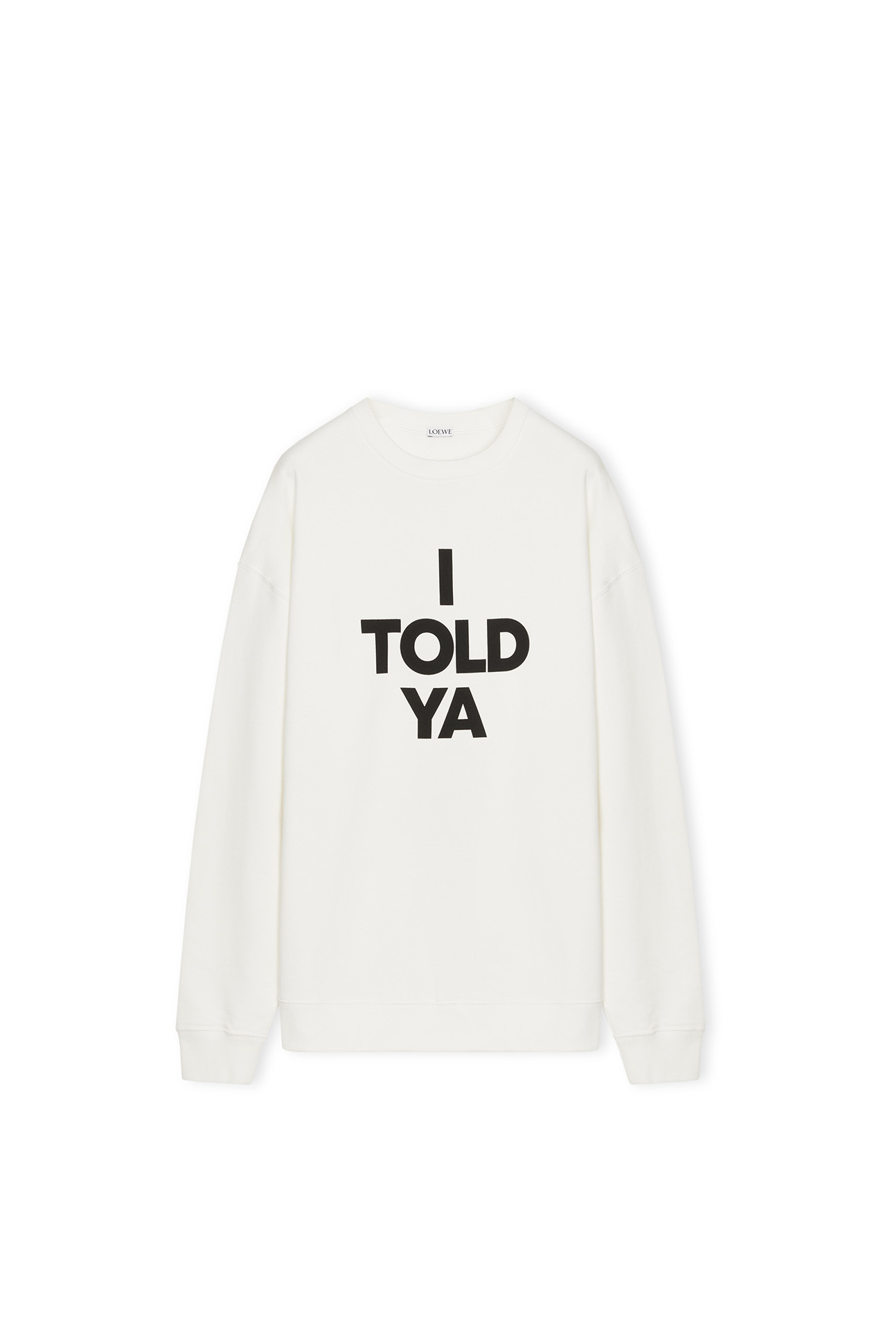 今回 LOEWE がローンチする「I TOLD YA」コレクションでは、Luca Guadagnino の新作映画『チャレンジャーズ』で実際に登場人物が纏うTシャツとスウェットシャツをラインナップ。フロントに大きくプリントされた「I TOLD YA」がアイコニックだ。Tシャツ、スウェットシャツのどちらもグレーとホワイトの2カラーで展開され、国内では公式オンラインにて限定販売される。