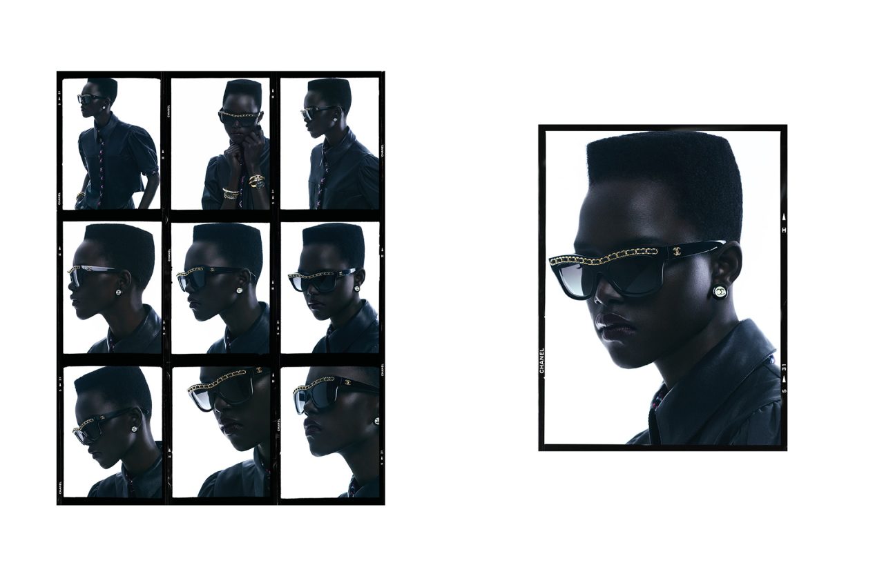 南スーダン出身のモデル Alaato Jazyper Michael (アラート・ジャズィーパー・マイケル) は、ホワイトのラインが印象的なアセテート素材のサングラスを着用。2022年から CHANEL のショーに出演する América González (アメリカ・ゴンザレス) もブラック x ホワイトのアイウェアを着用しており、メゾンの象徴であるバイカラーへのリスペクトが感じられる。