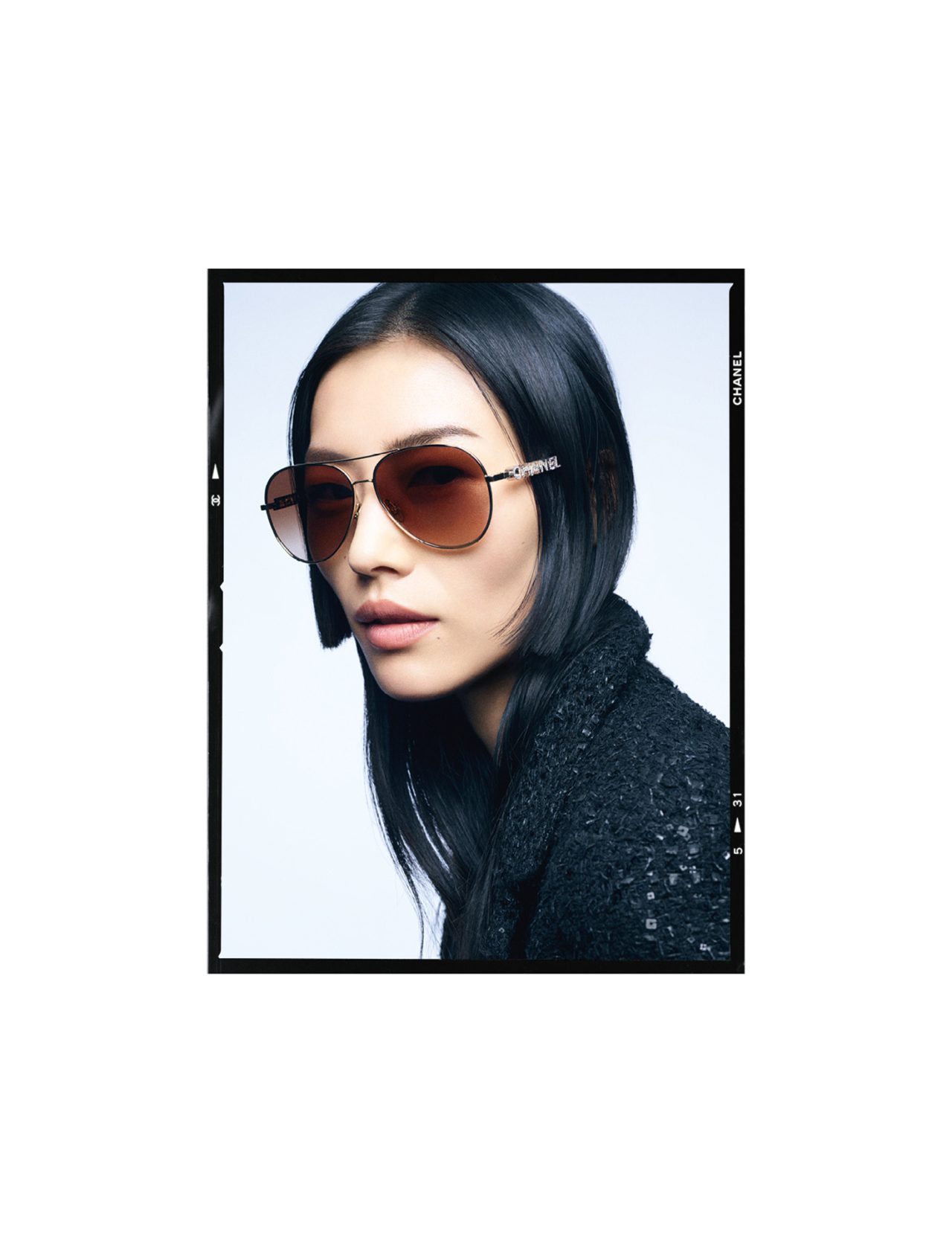 アンバサダーの Liu Wen (リウ・ウェン) は「CHANEL」の文字があしらわれたメタルフレームをかけて登場。「サングラスは私たちを守ってくれる、鎧のような存在。私にとって、それ自体が不可欠なファッションアクセサリーなのよ」と打ち明けた。