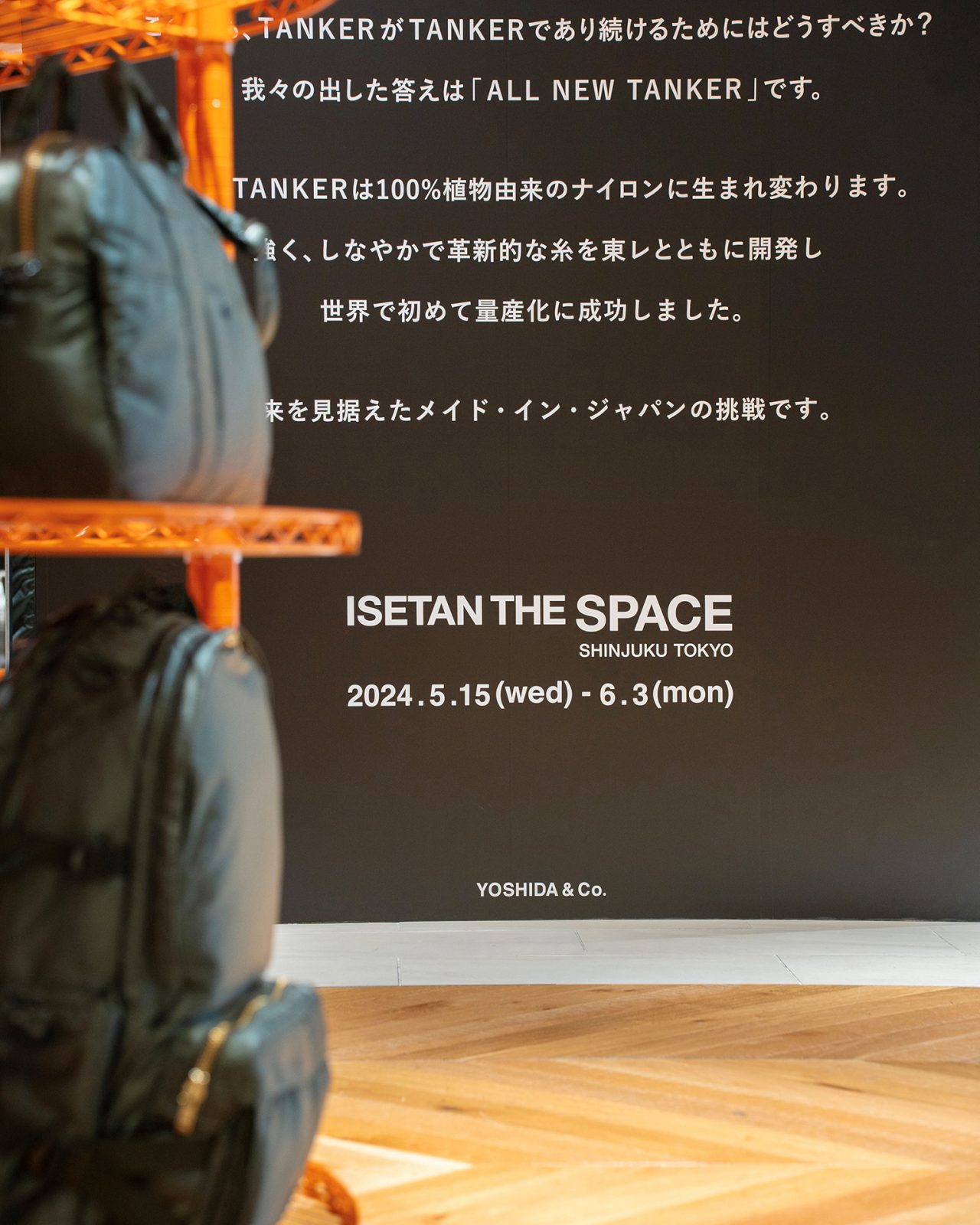 さらに、新「TANKER」の発売を記念したスペシャルプロモーションが5月15日(水)から6月3日(月)まで伊勢丹新宿店 本館 2 階 イセタン ザ・スペースと、DOVER STREET MARKET GINZA 2F にて開催。当会場では、素材の開発ストーリーに触れることができるインスタレーションに加え、植物から作られている新たなナイロン「エコディア®N510」の糸、アップデートされた「TANKER」の生地で製作されたテントやキャビネットが設置されている。