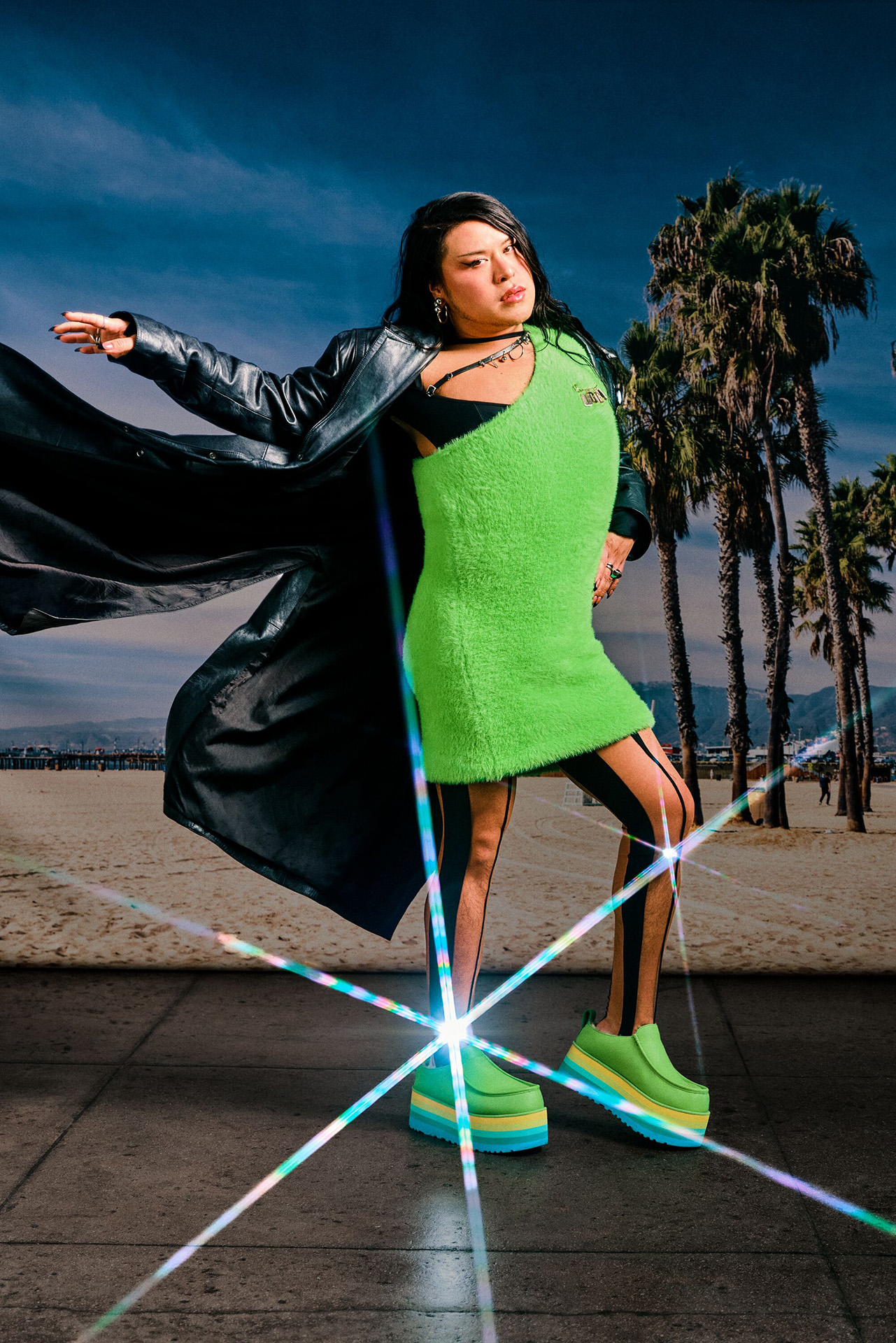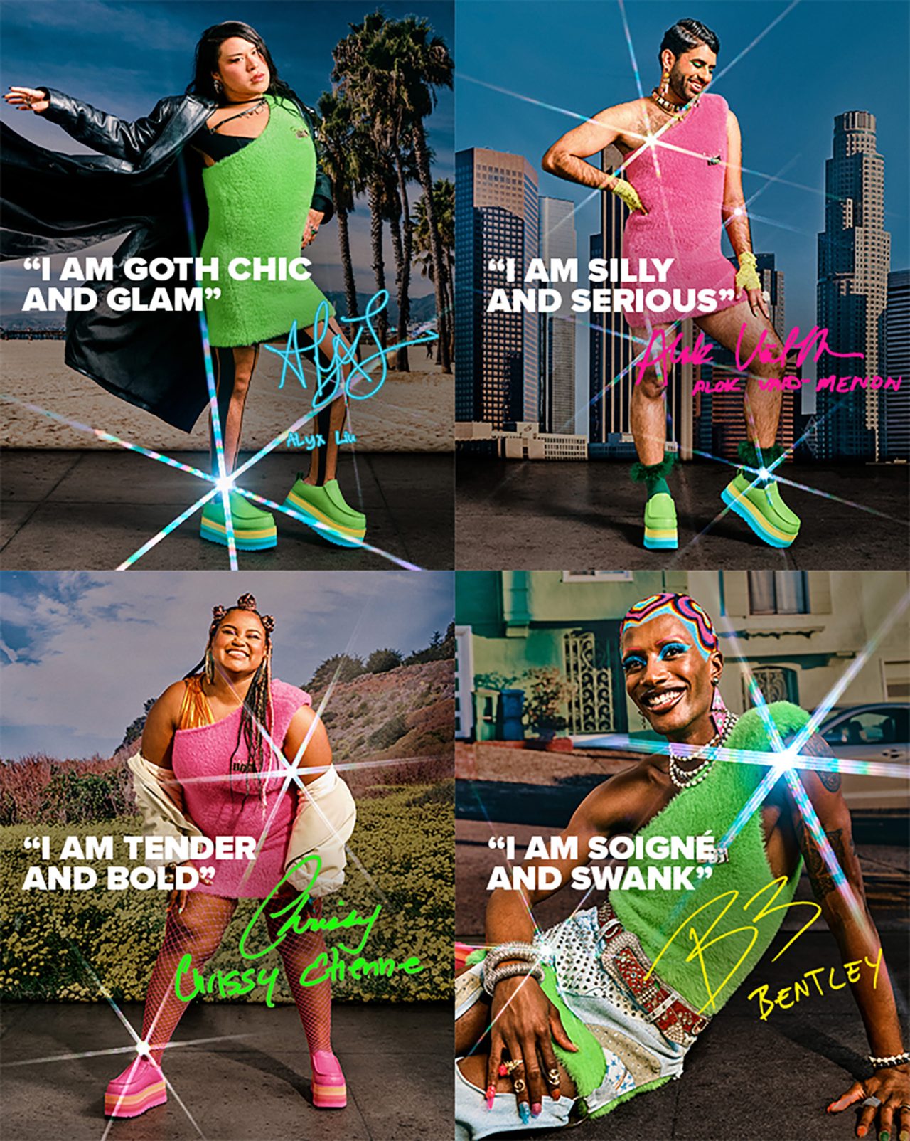 オールジェンダーを対象にした新たなコレクション「URSeen」は、LGBTQ+ コミュニティの創造性、順応性、自信を大切にデザインされたアイテムが特徴的。ピンクとグリーンのポップなカラーリングをあしらった URSeen Dress (ユーアーシーン ドレス)、URSeen Platform (ユーアーシーン プラットフォーム) は、着る人をポジティブな気分へと後押ししてくれる。また本コレクションでは、話を聞いてもらえる、受け入れてもらえると感じることを重視しており、ALOK の友人でありマルチな肩書きを持つクリエイターたちをモデルとして起用。コレクションアイテムの多用途性をパワフルに表現したスタイリングでキャンペーンに登場した。そして UGG®︎ の公式 Youtube にて、ALOK が今回のコレクションに込めた想いを語ったムービーを公開。さまざまなアプローチですべての人のアイデンティティを讃える本コレクションは、プライド月間以降も自己表現を奨励し続ける。
