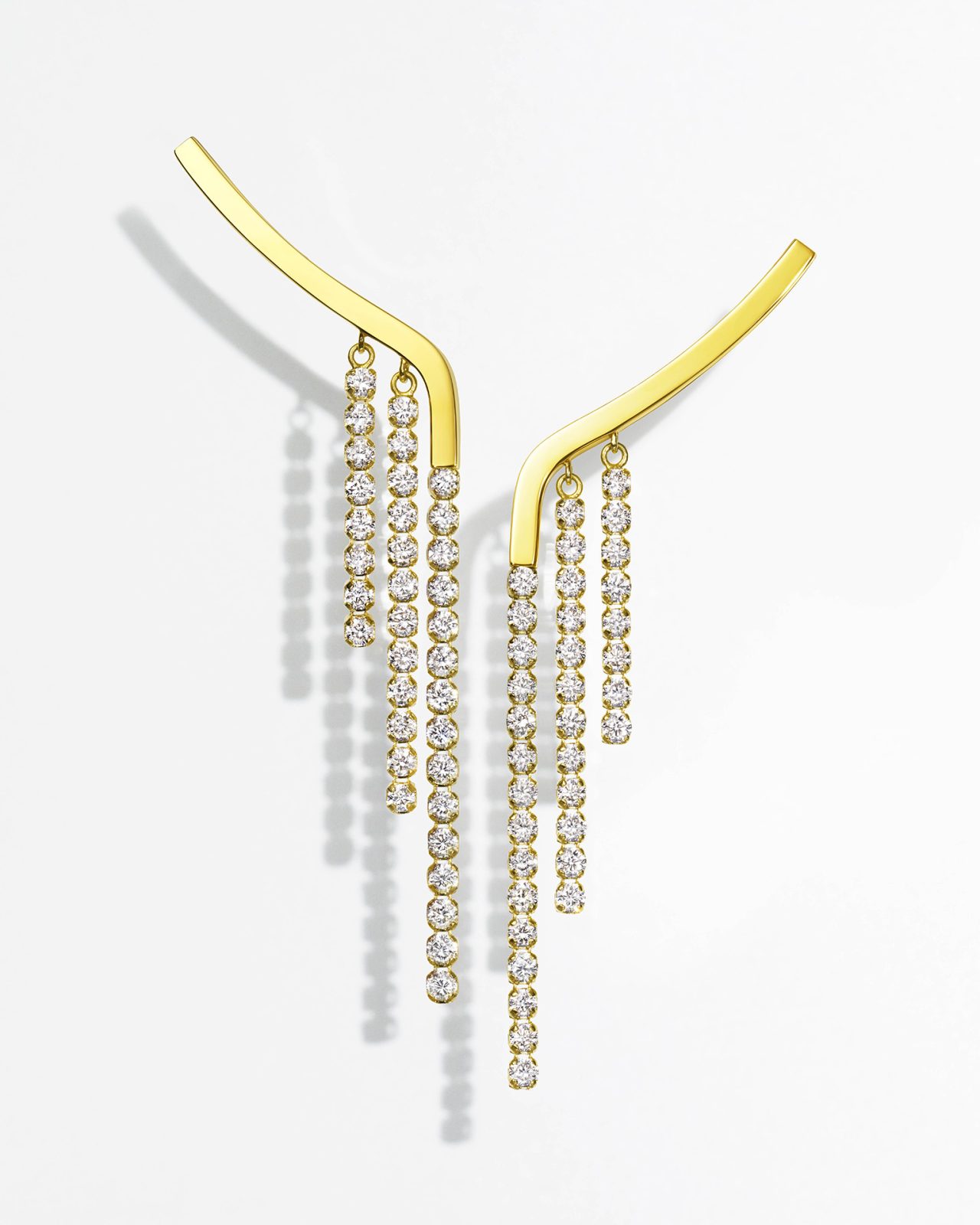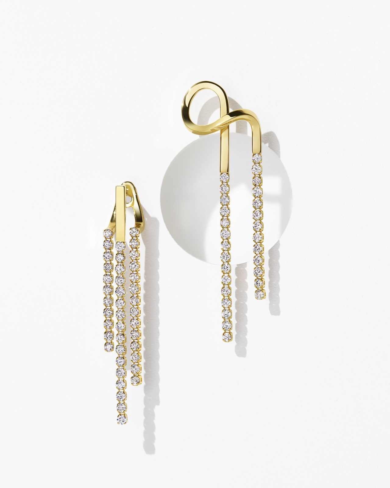 販売するアイテムは、 AHKAH signature の新アイコンジュエリー「chandelier」。空間に艶やかな美しい光と影を与えるシャンデリアからインスパイアされ、ダイヤモンドの揺らめきと煌めきが上品でモダンな印象を与える。