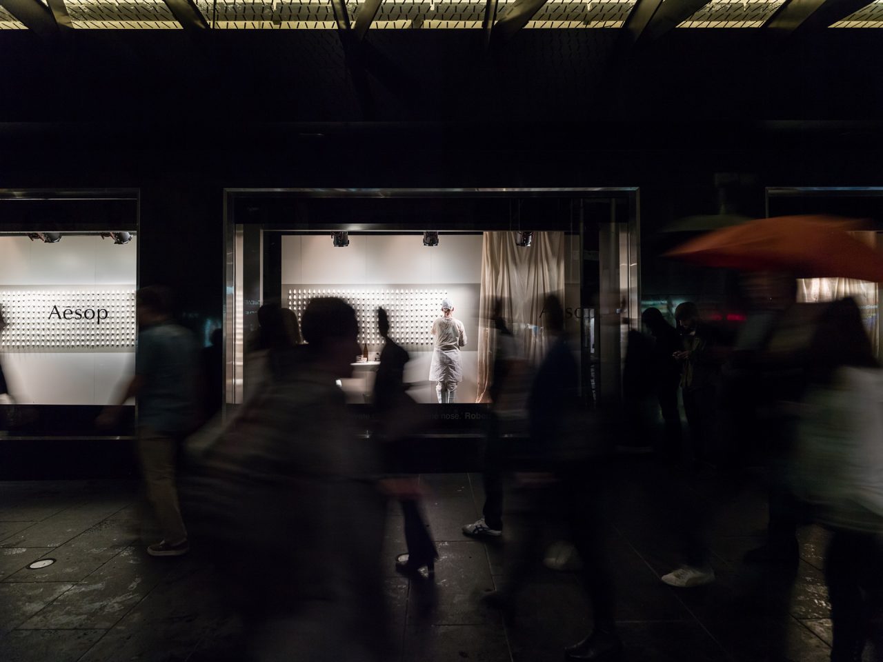 本イベントのテーマである「嗅覚体験」に基づき、ウィンドウには手づくりの石膏鼻模型が並べられる。さらにパフォーマーによる鼻の型取りのライブパフォーマンスも実施予定。Aēsop のフレグランスが存分に堪能できるこの機会に、自分に合ったお気に入りの香りを探してみては。