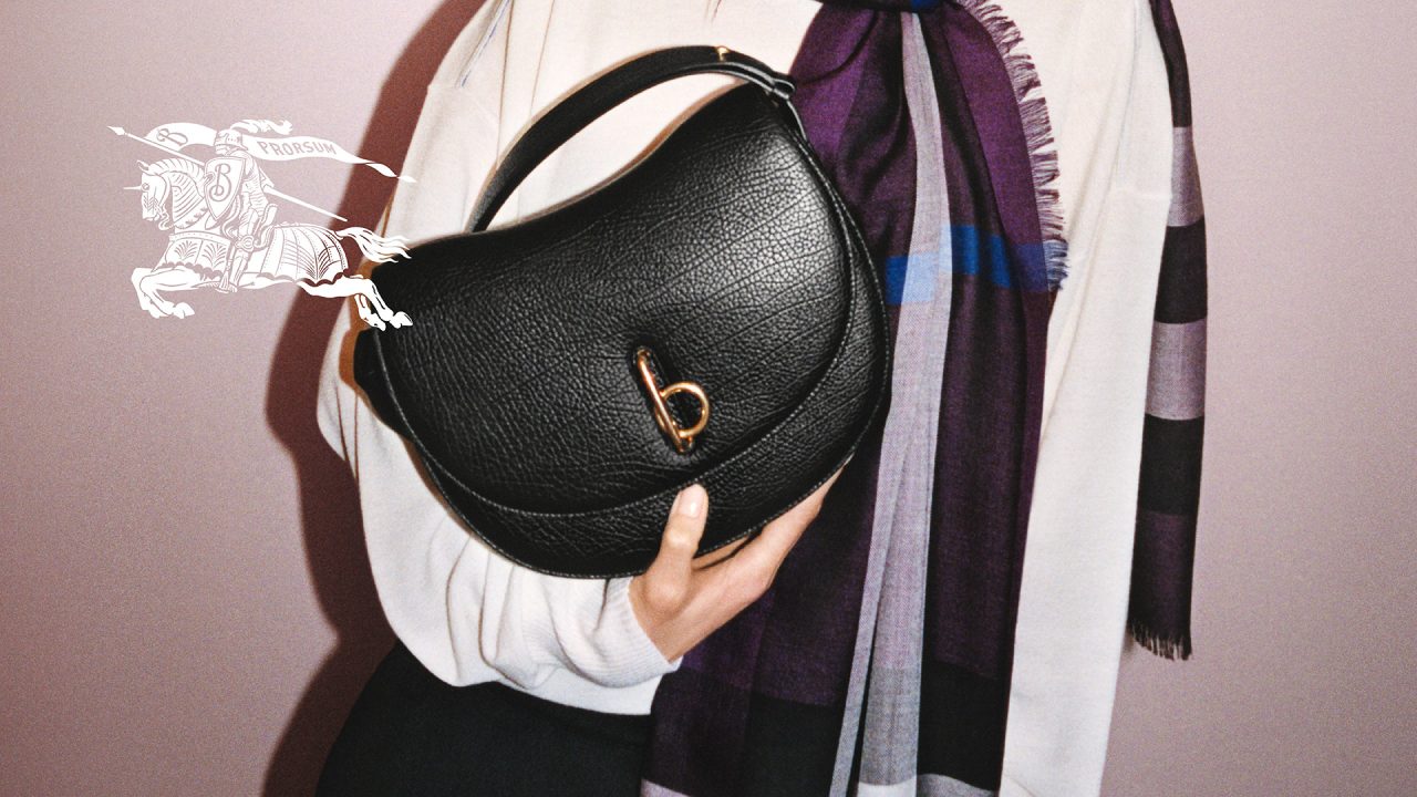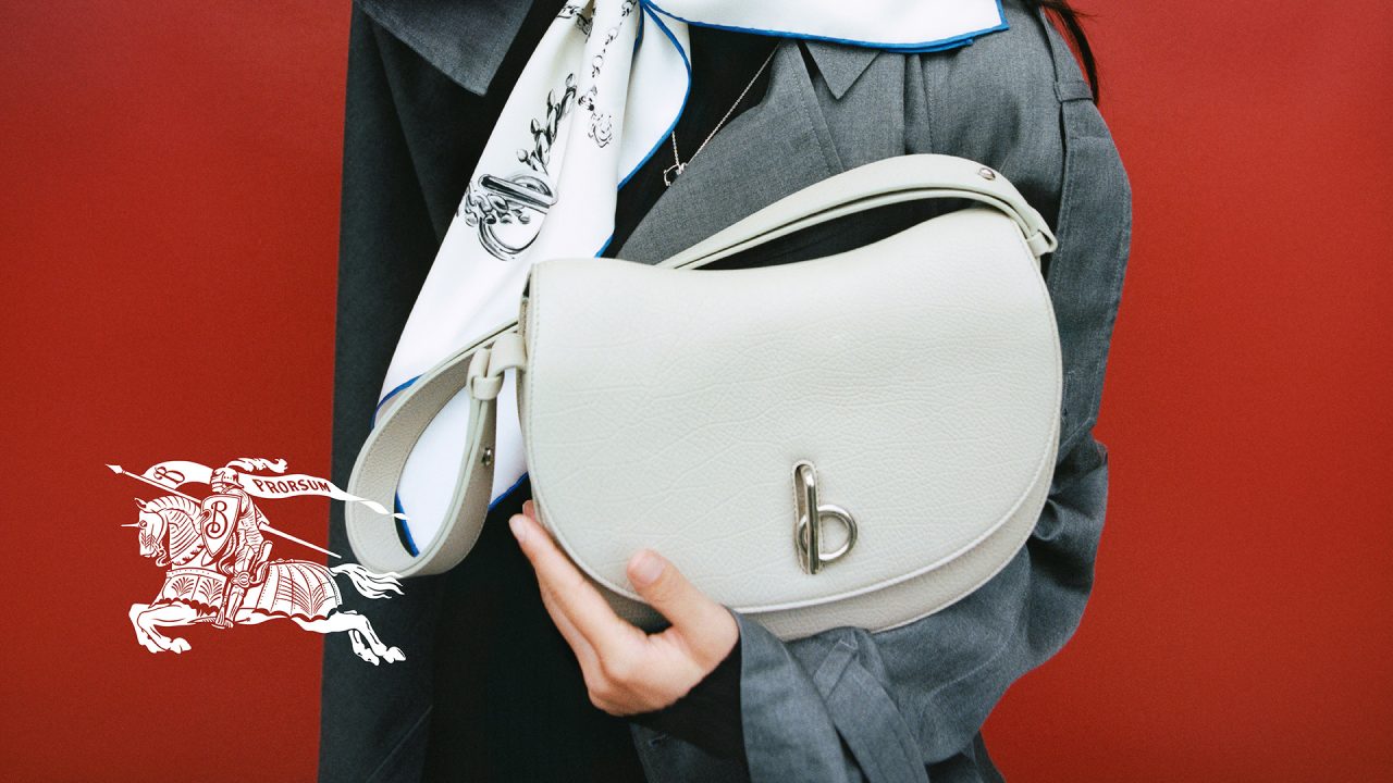 BURBERRY と乗馬界との長年のつながりを反映した「ロッキングホース」は、手綱をイメージしたストラップと伝統的な木馬のおもちゃを彷彿させるカーブシェイプが特徴。今回登場した新作は小文字の「b」の形に回転する円形のクロージャーを採用し、この新たなハウスモチーフを通して2022年に CCO に就任した Daniel Lee (ダニエル・リー) の伝統と革新を兼ね備えたビジョンが表現された。また「馬上の騎士 (EKD)」デザインがバッグの背面にエンボス加工されているほか、一部のモデルでは内側にアイコニックな BURBERRY チェックがあしらわれており、細部へのこだわりが感じられるバッグとなっている。